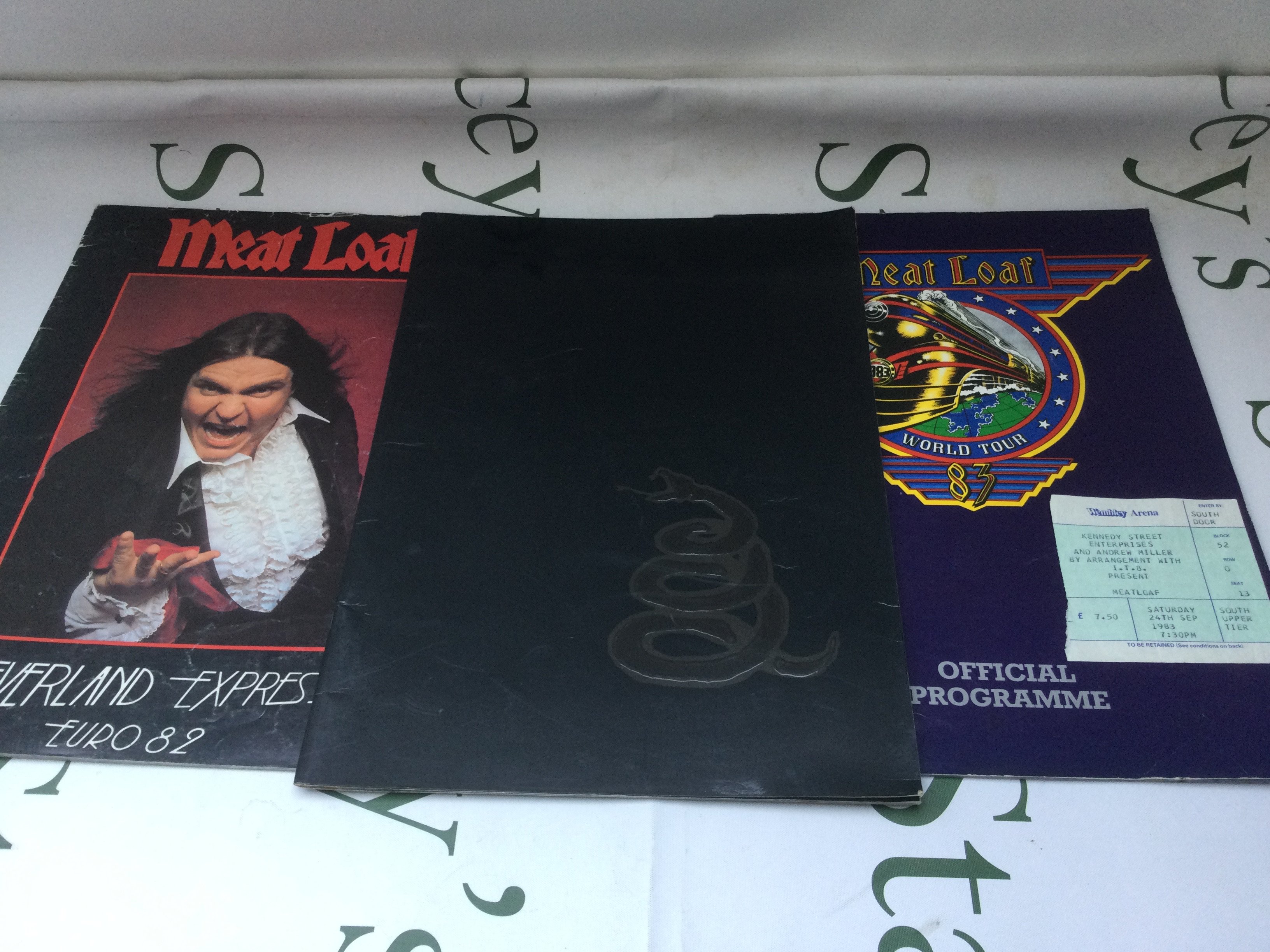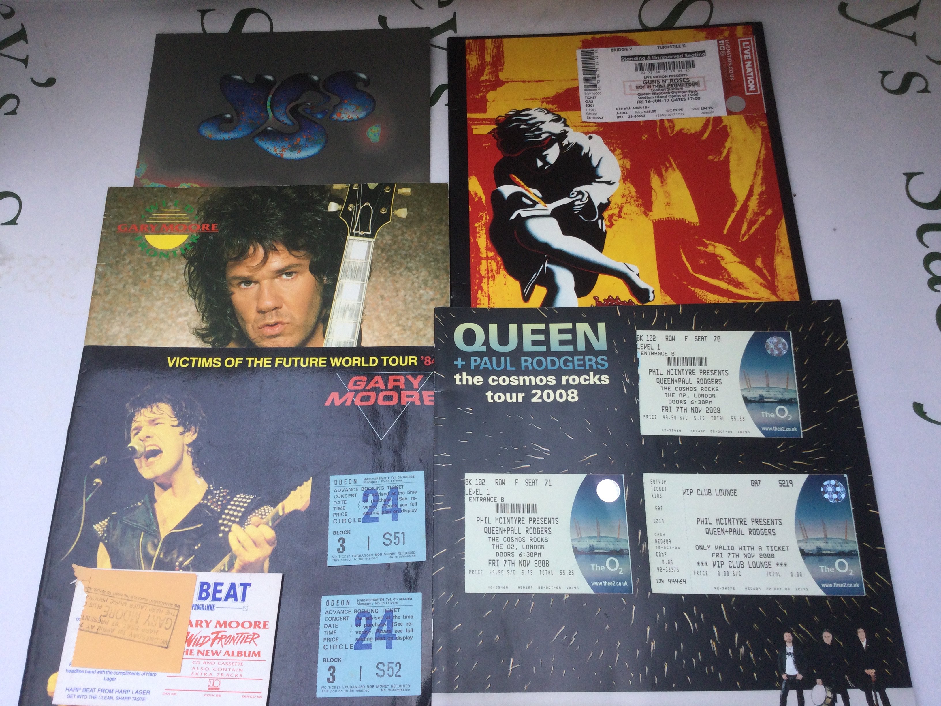 A collection of rock and pop tour programs, some with tickets. Various artists including U2, Guns n Roses, Metallica and others.