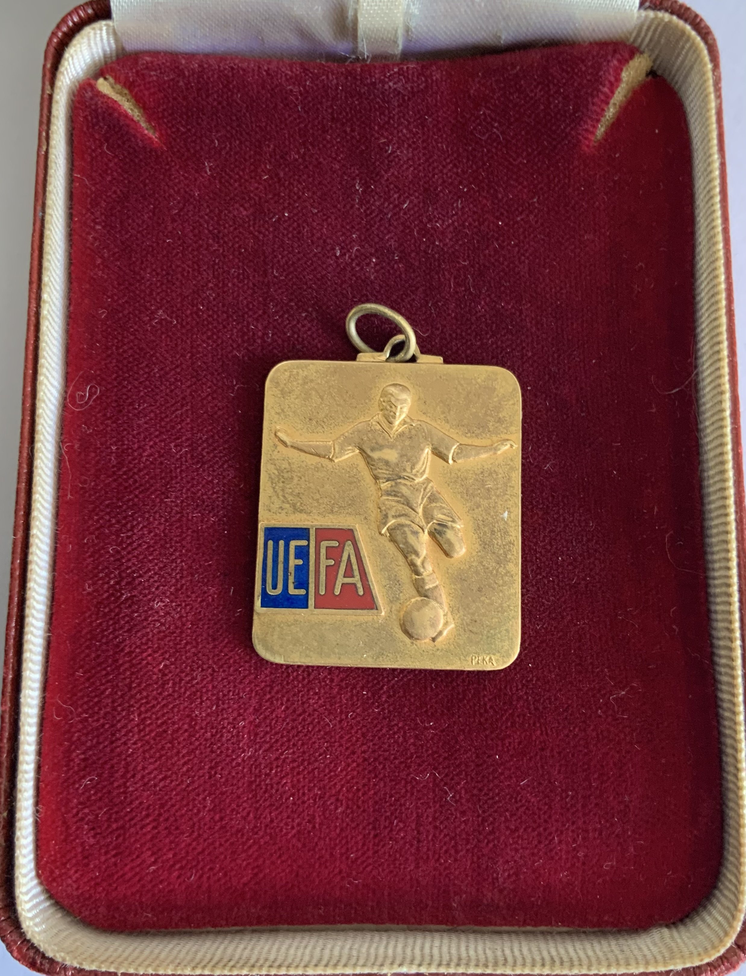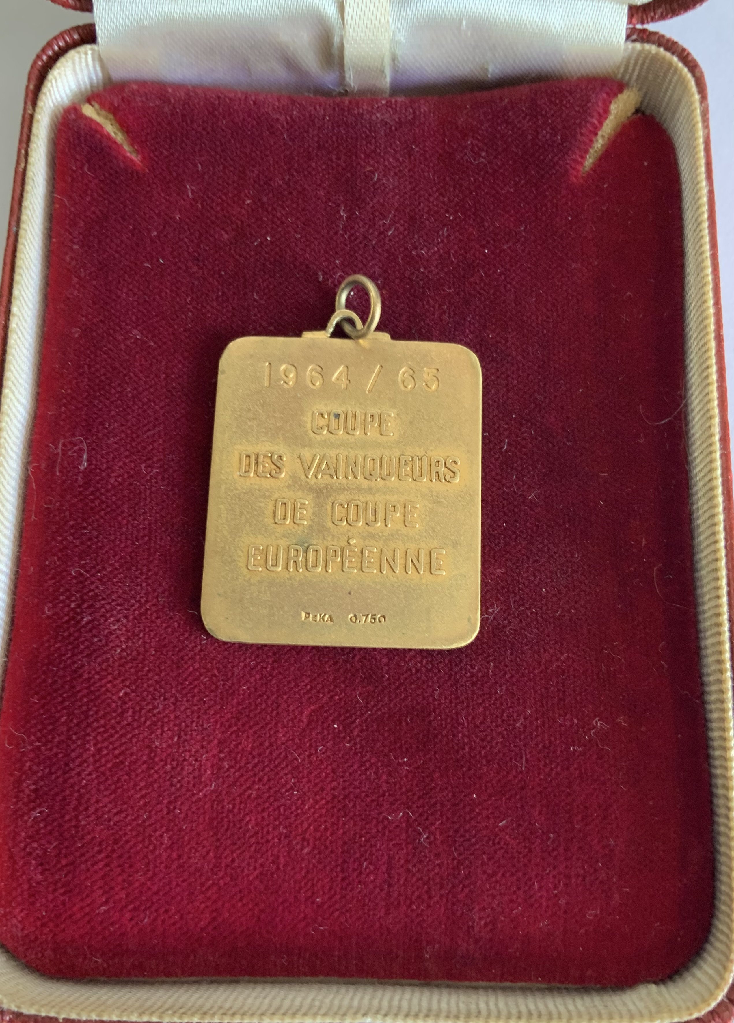 Ron Boyce West Ham 1965 European Cup Winners Cup Winners Medal: Gold coloured medal which is engraved to rear and also has 1964 -65 engraving added to rear. Comes in claret box that is not original. Excellent condition. COA from family of Boyce supplied.