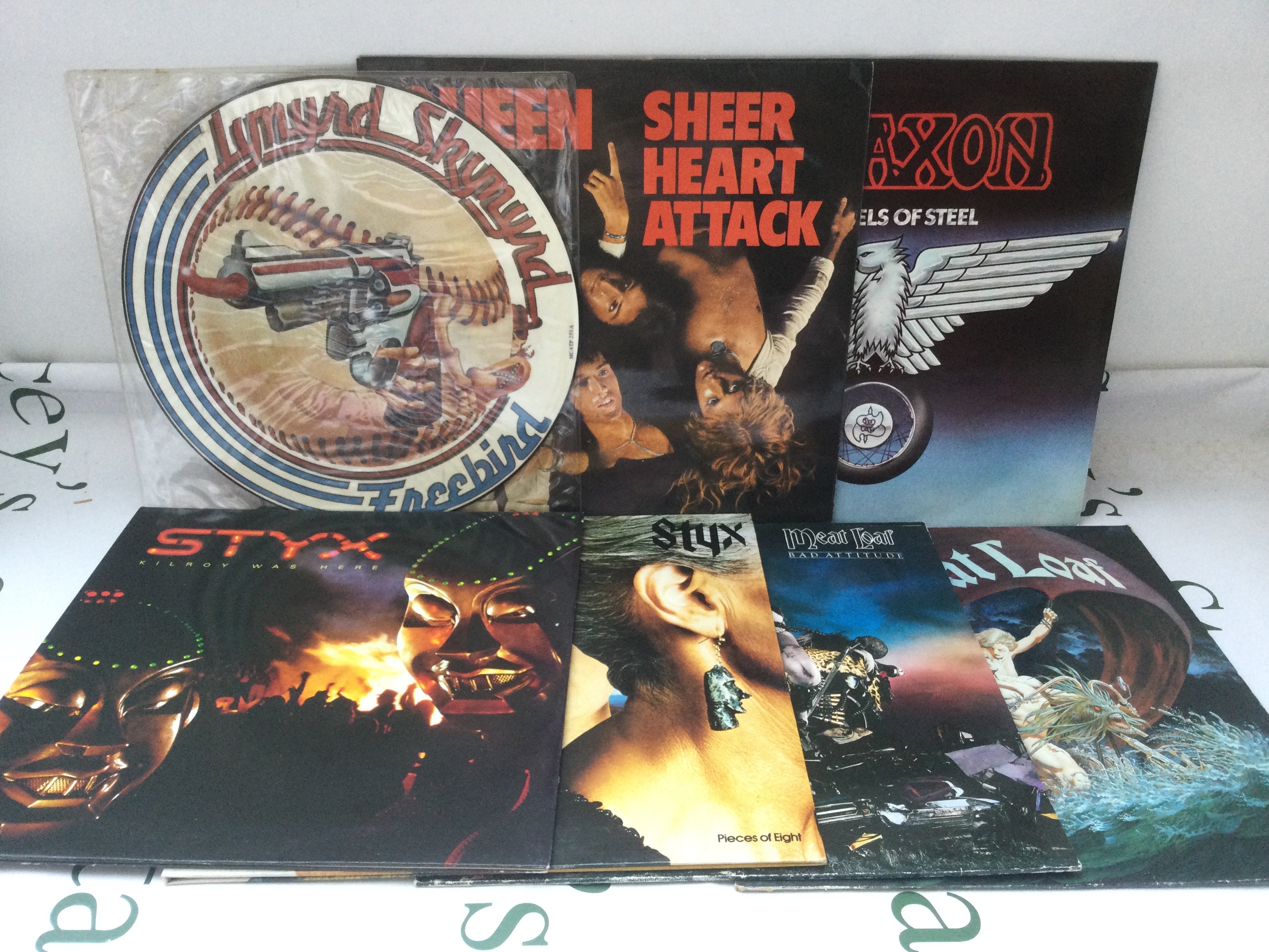 Thirteen rock LPs and a 12" picture disc single by various artists including Queen, Styx and others.