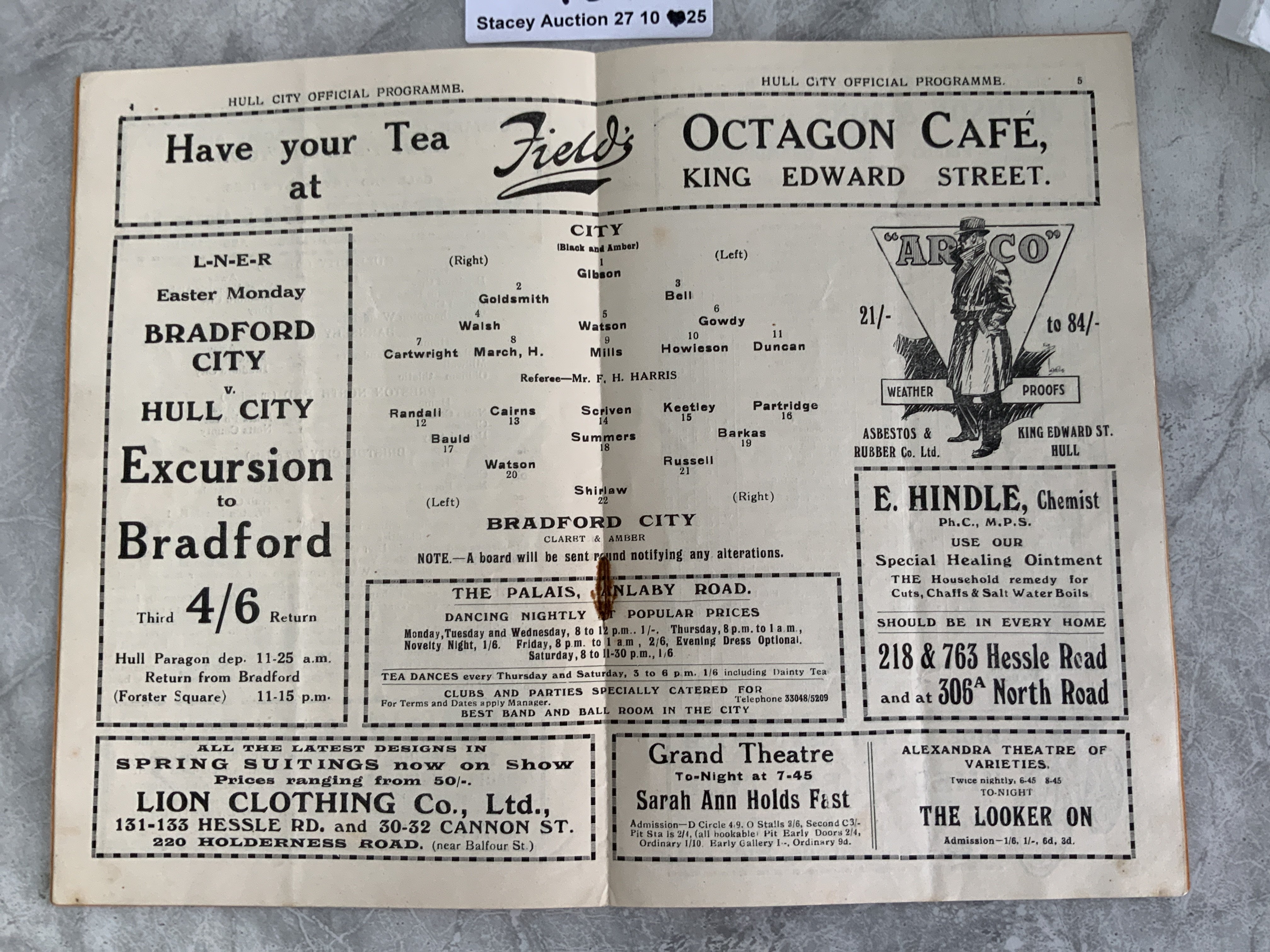 1929 - 1930 Hull City v Bradford City Football Programme: Good condition first team programme with no team changes. Tear on spine and rusty staple holding firm.