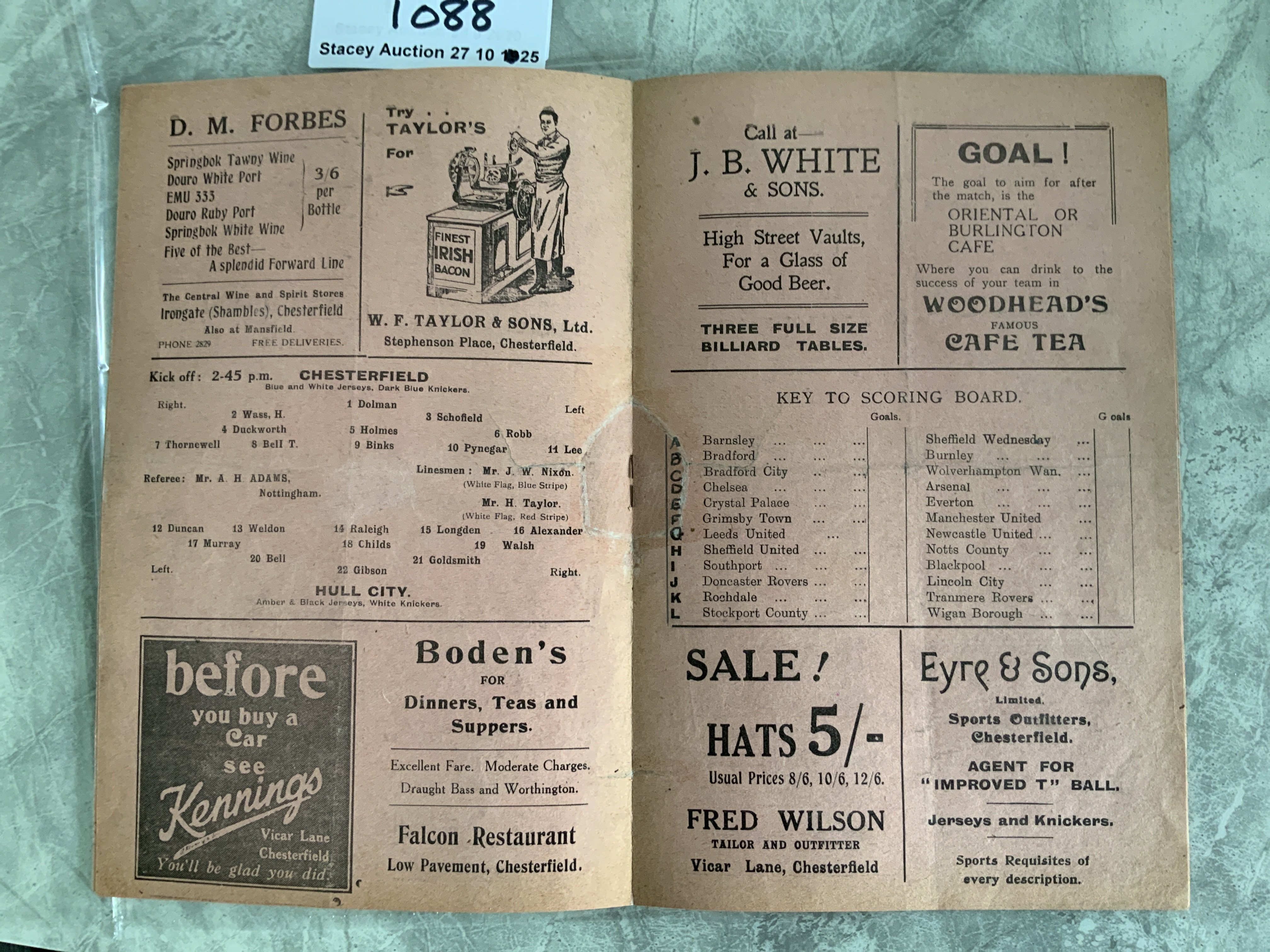 1930 - 1931 Chesterfield v Hull City Football Programme: Good condition first team programme with no team changes. Professional repair near staple area.