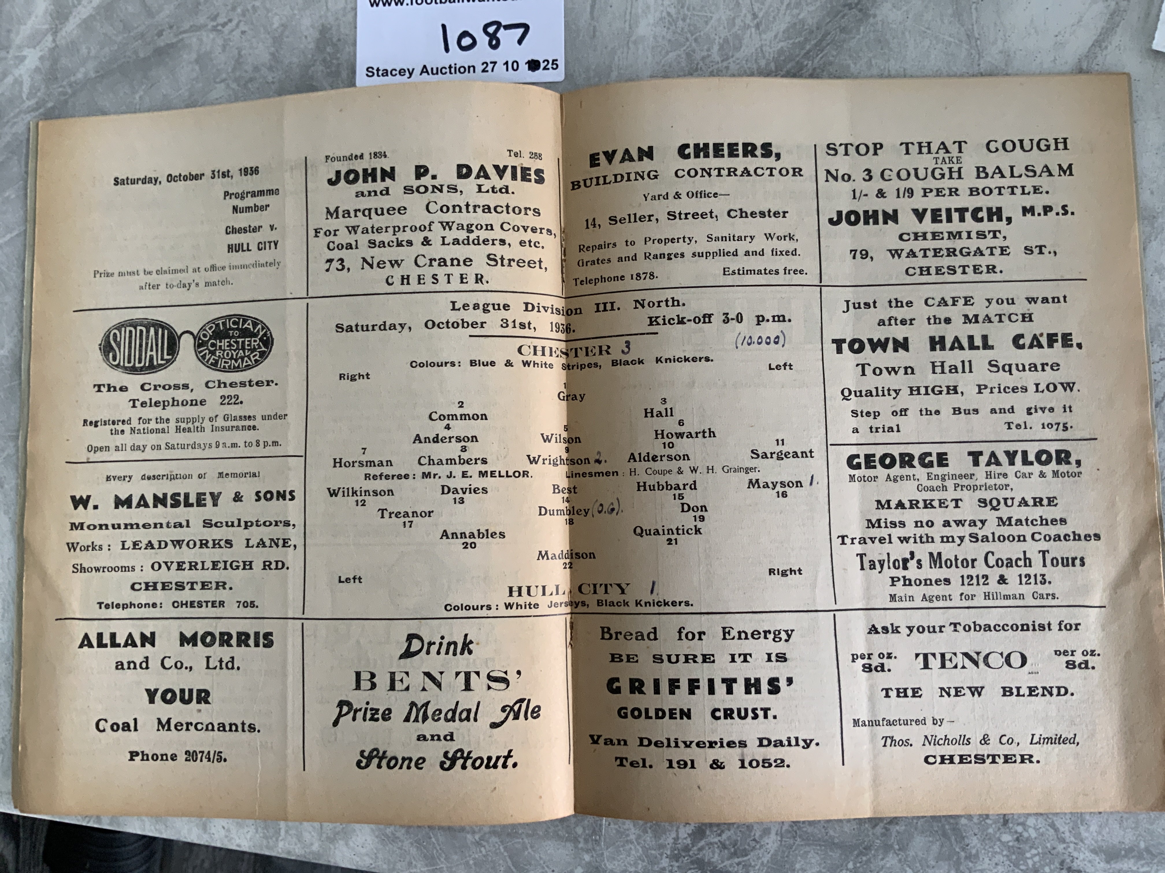1936 - 1937 Chester v Hull City Football Programme: Good condition first team programme with no team changes. Score and scorers noted to team page. Lightest fold.