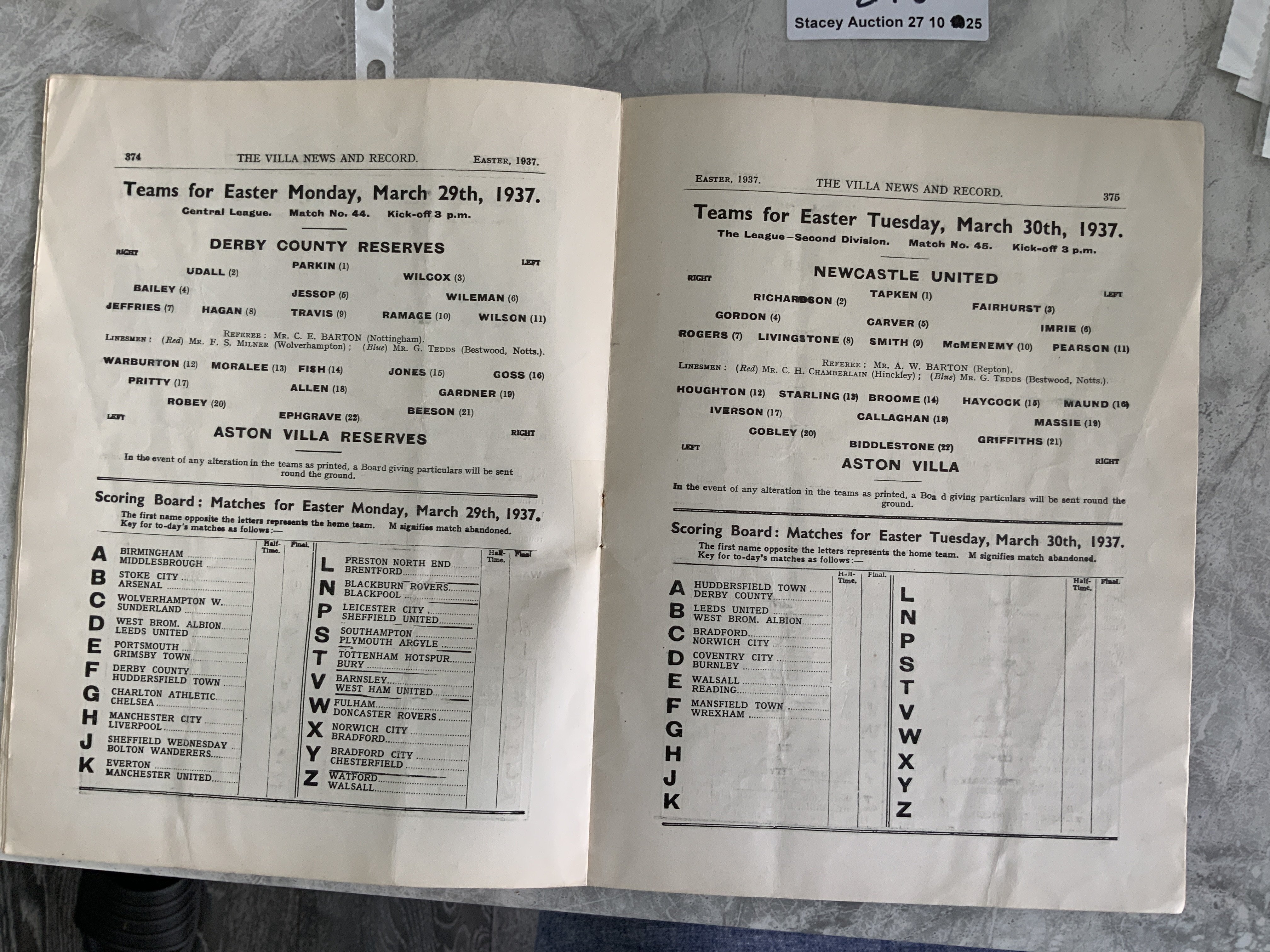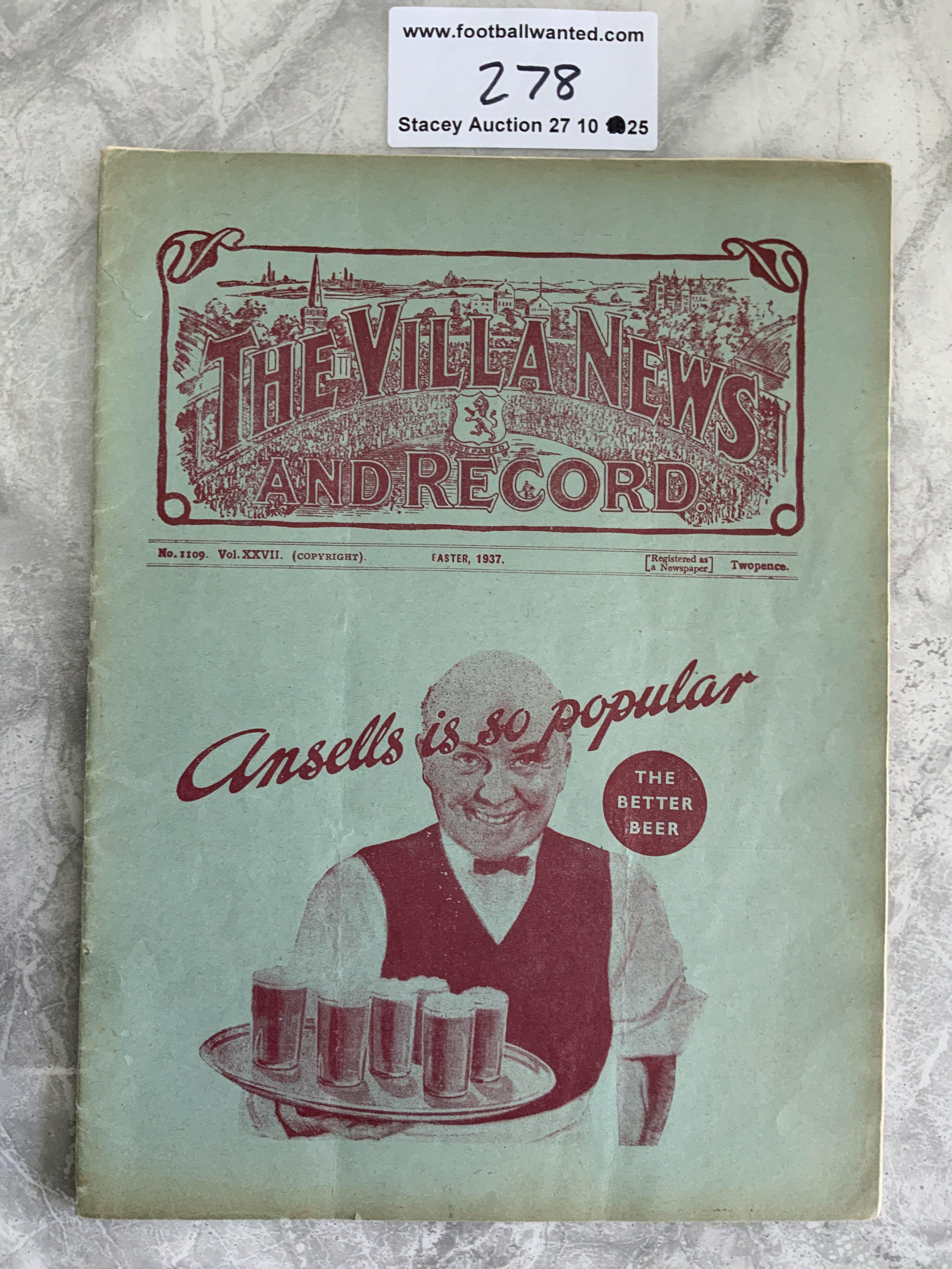 36/37 Aston Villa v Newcastle United Football Programme: Second division match in very good condition with no team changes.