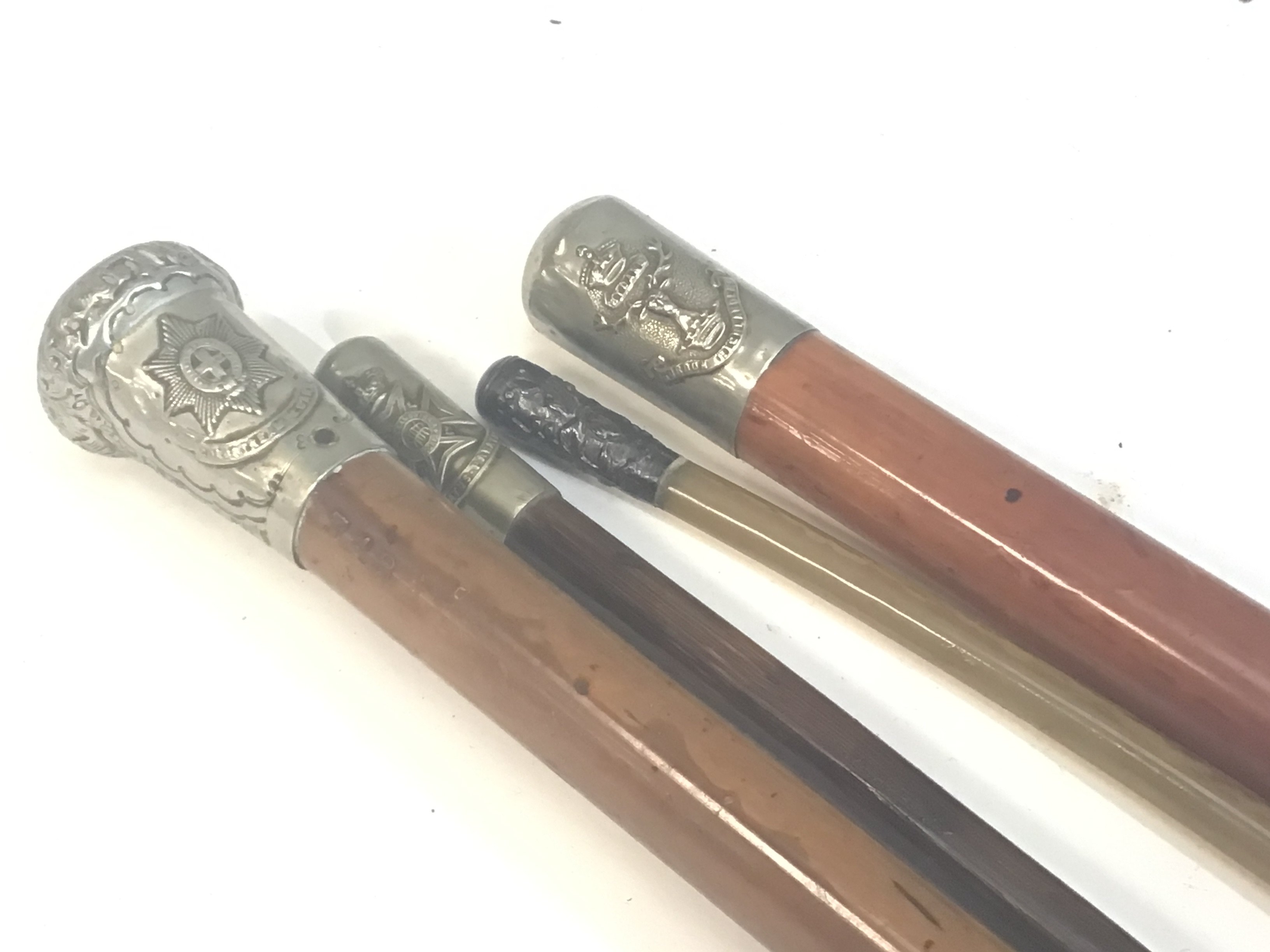 Four Military Swagger and walking sticks including a horn swagger stick Gordon Hylanders and others (4)