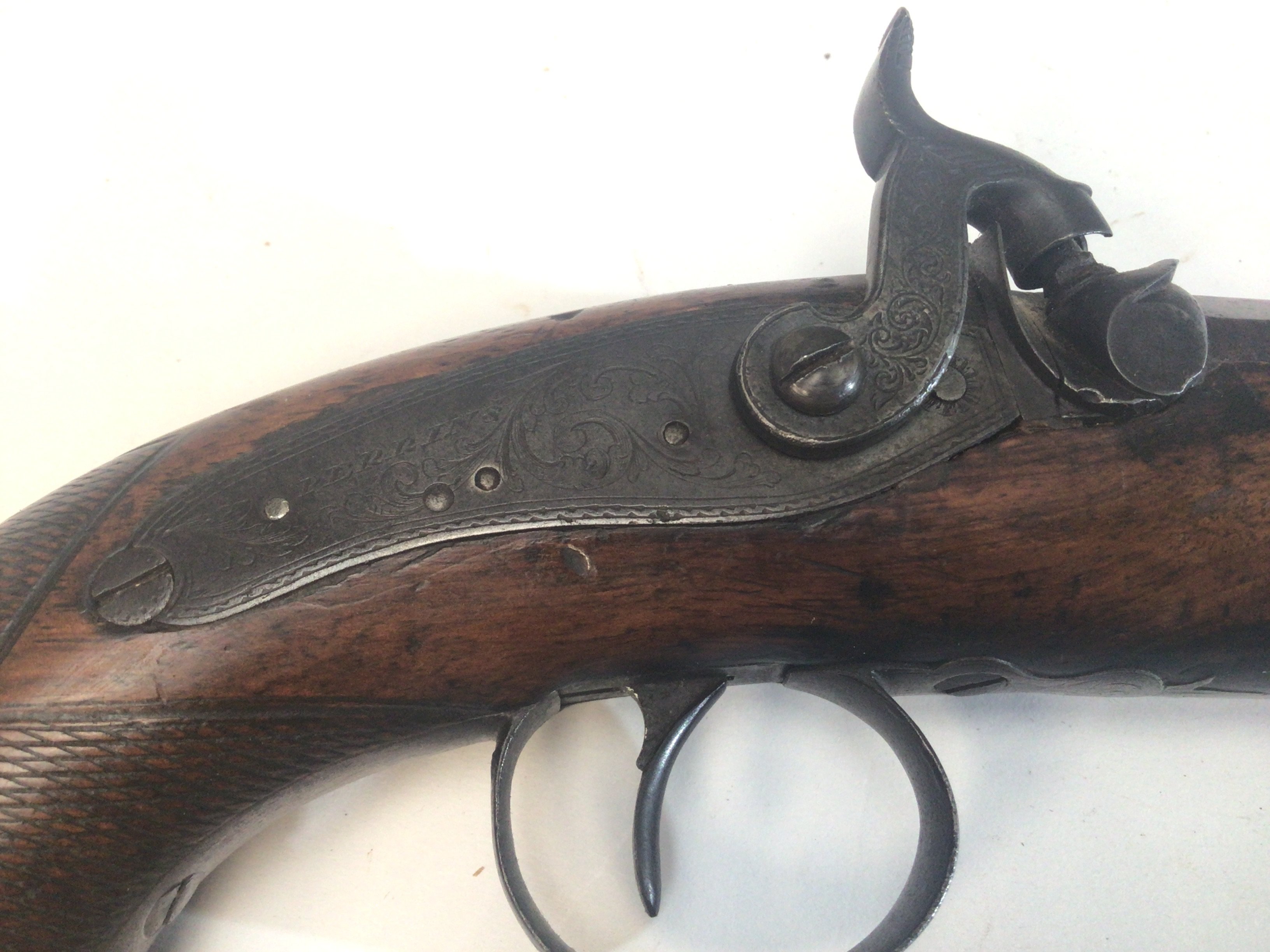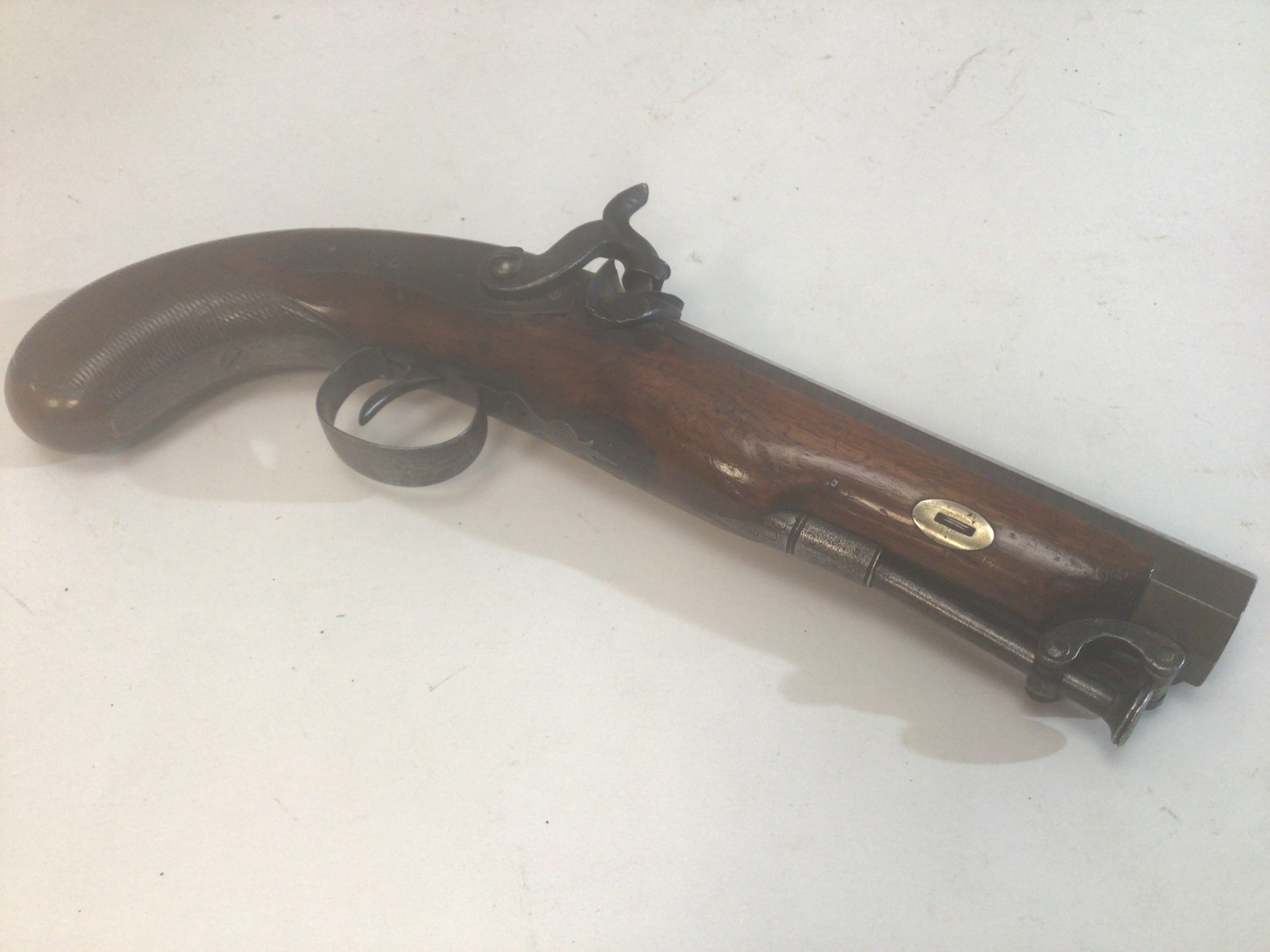 A British 19th century Percussion Pistol maker Perrins of Worcester with an Octagonal barrel. Fixed steel ram rod.
