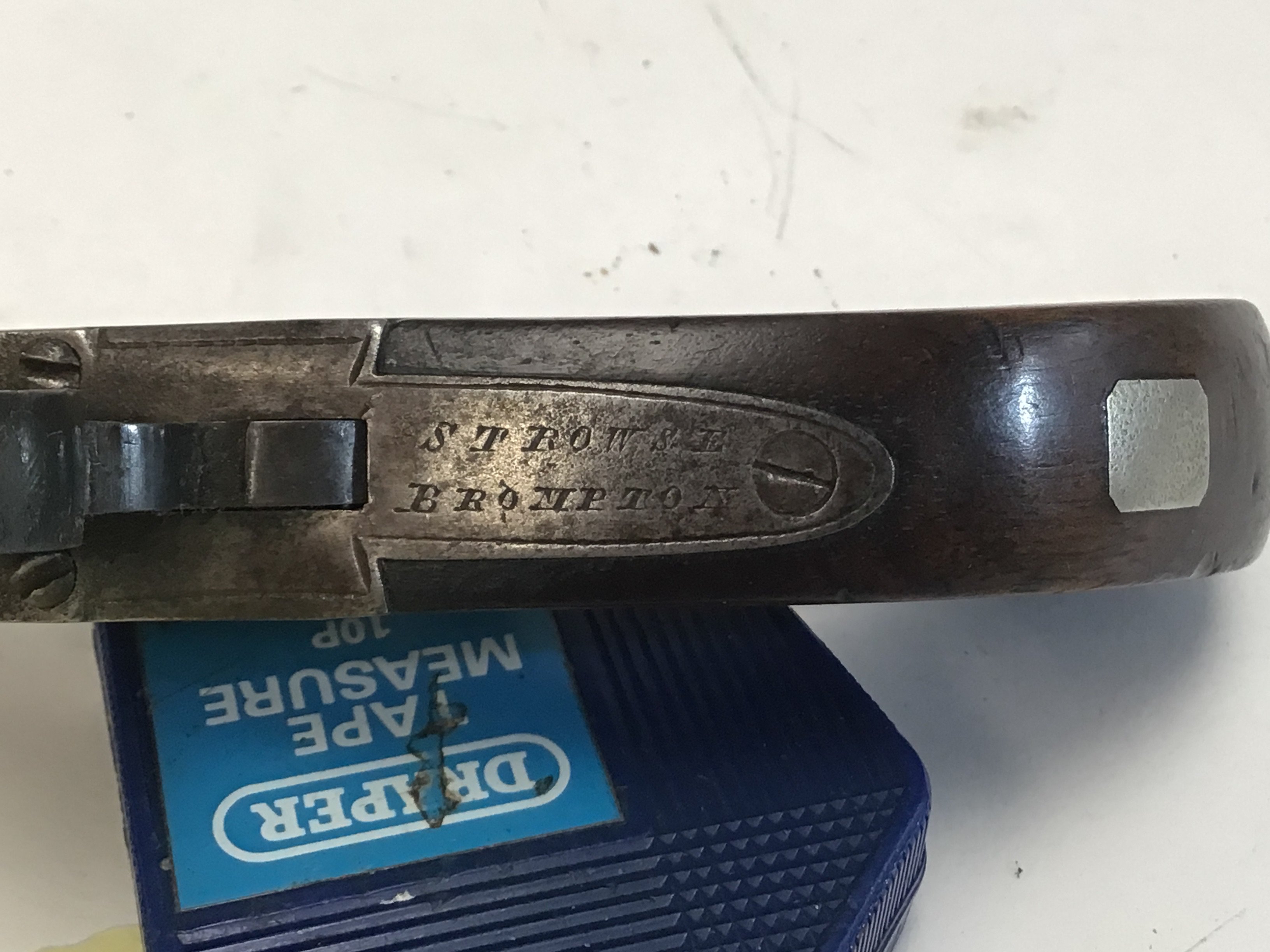 A 19th century slab sided Percussion pistol engraved action maker Strowse Brompton
