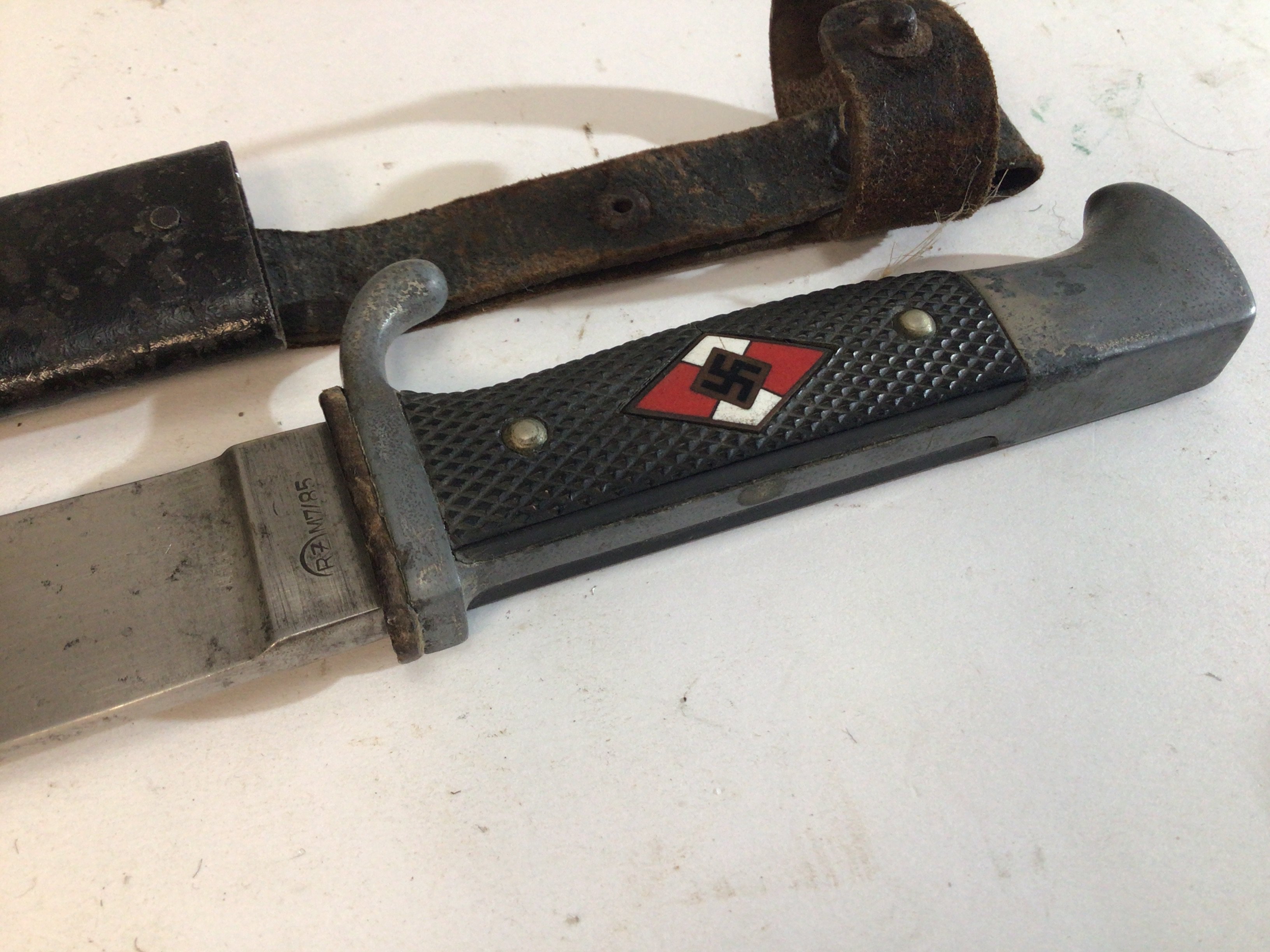 A German Third Reich II world war Hitler youth knife. Stamped RZ M7/85