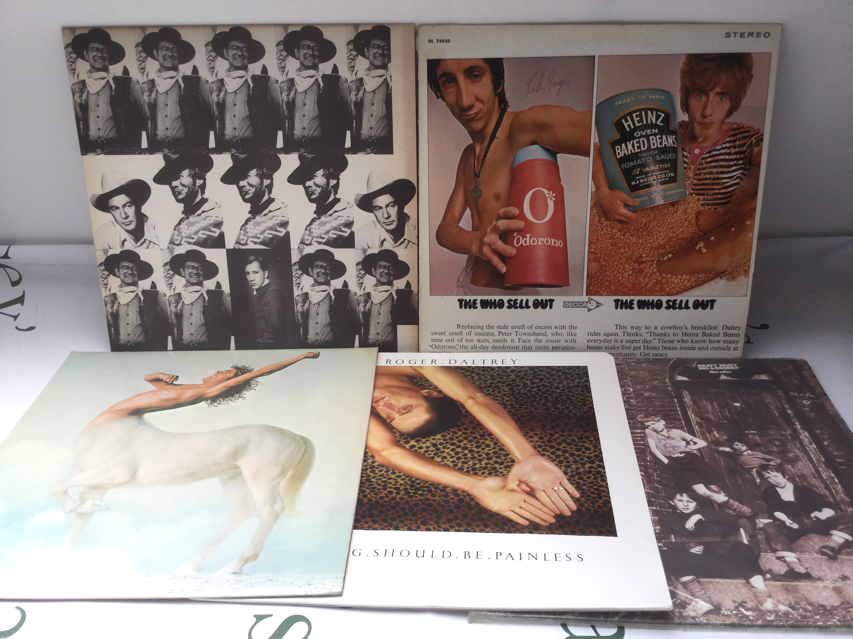 Five LPs by The Who and related including a signed Pete Townshend promo disc, an early US pressing of The Who Sell Out and others.