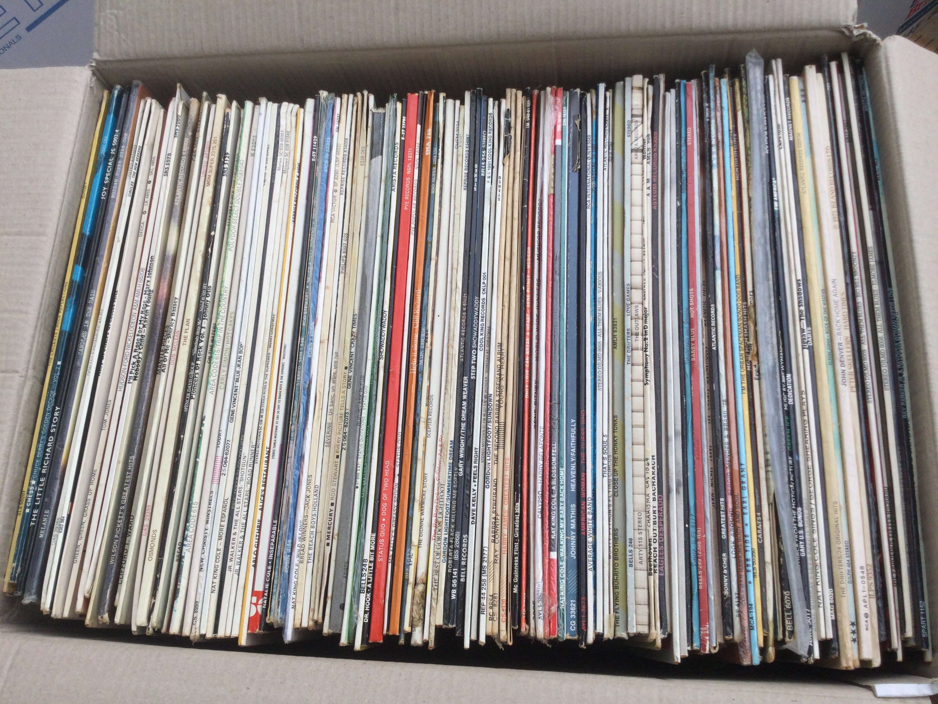 Two boxes of LPs by various artists including Gene Vincent, Big Bill Broonzy, Roberta Flack and many more.