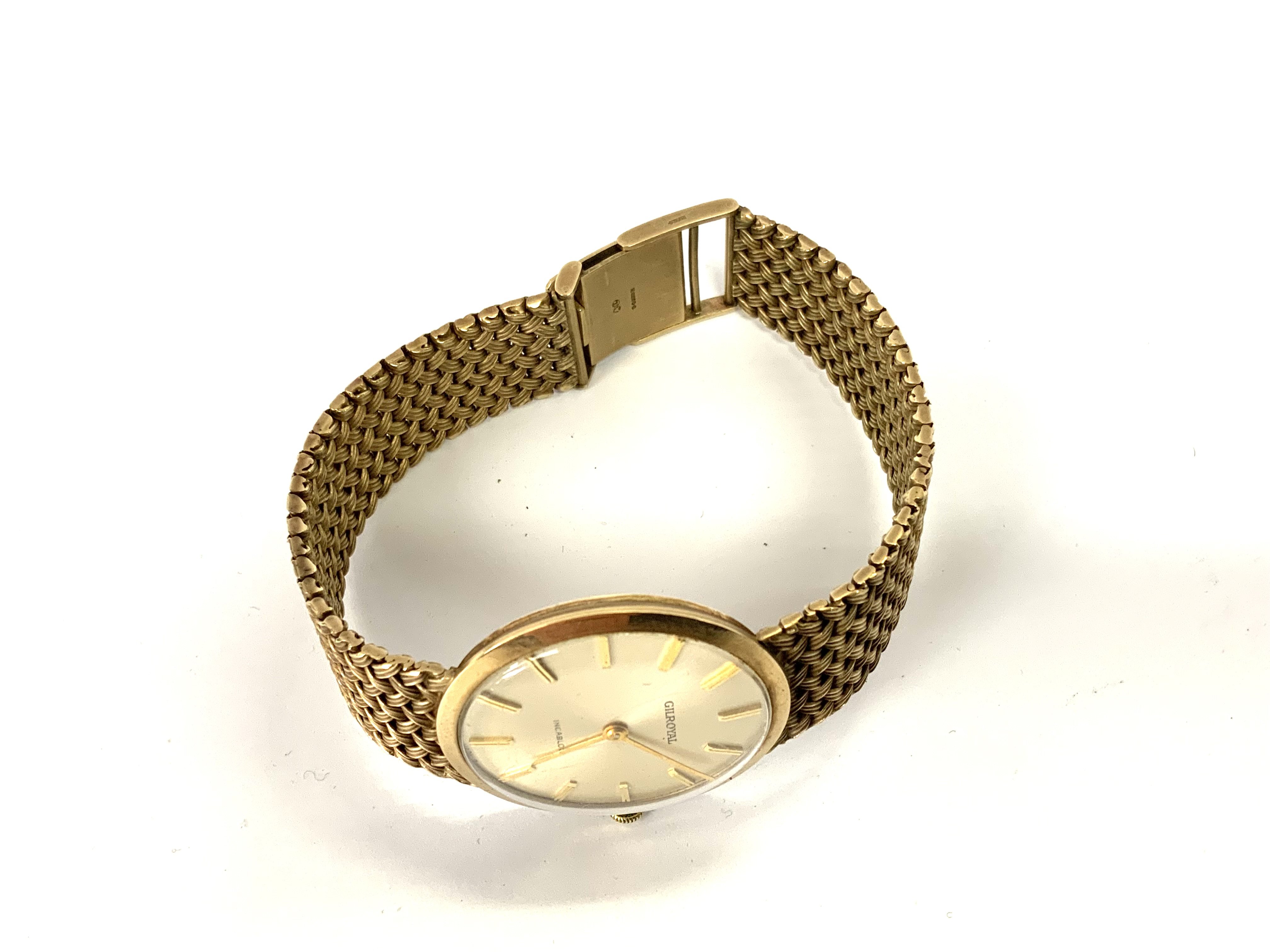 A Gents Gilroyal 9ct gold wristwatch, the woven strap in good order, Full working order. Total weight. 59.9g