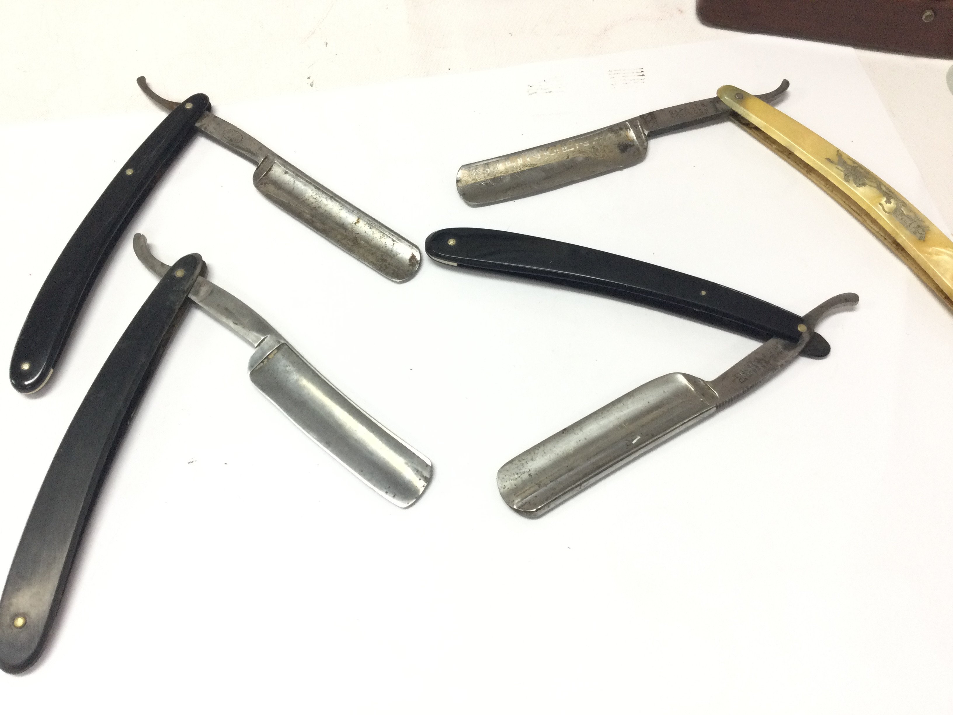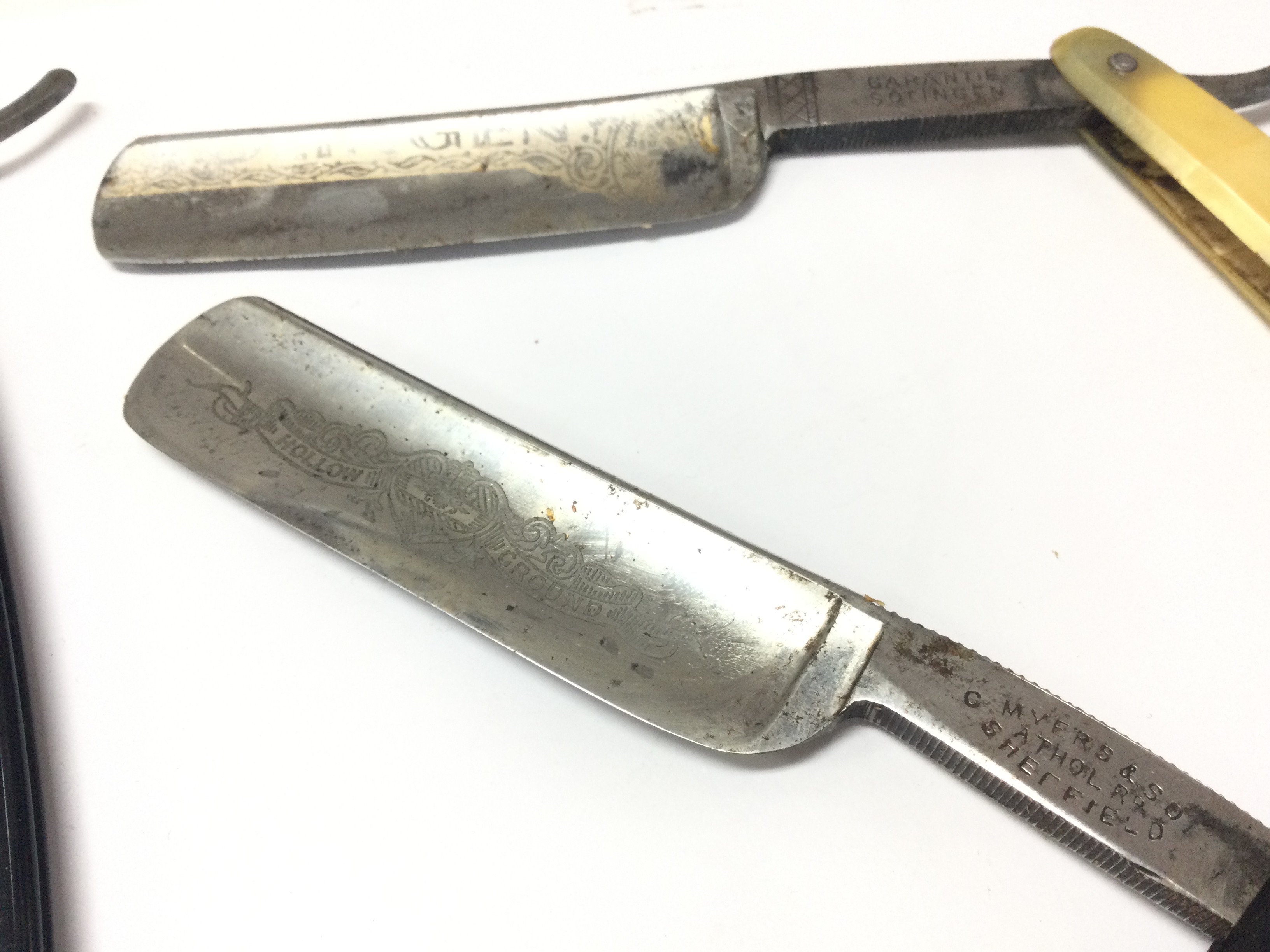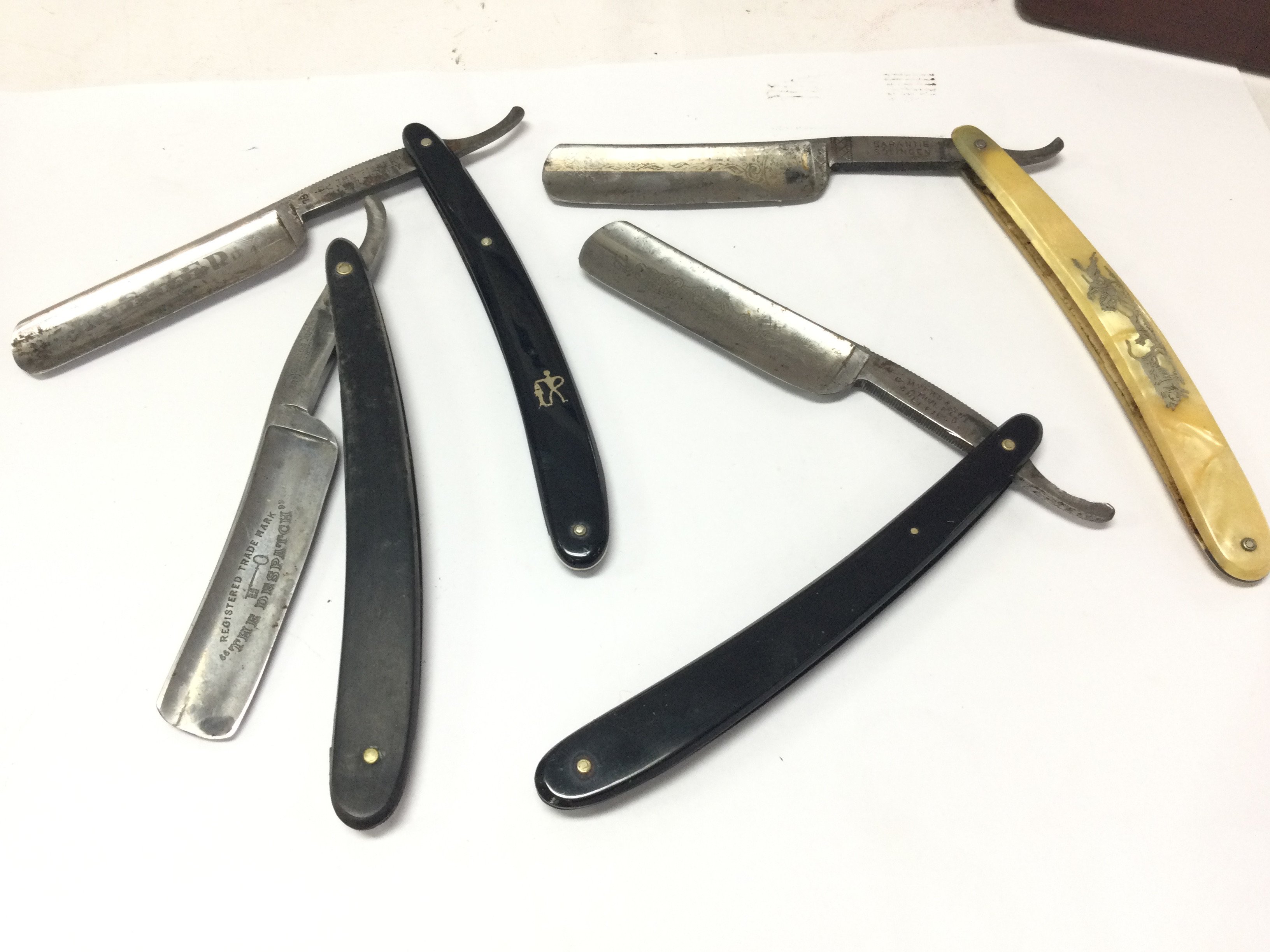 Box of vintage razors including hollow ground Myers & son, the despatch George butler, Fisher German, Garantie solingen.