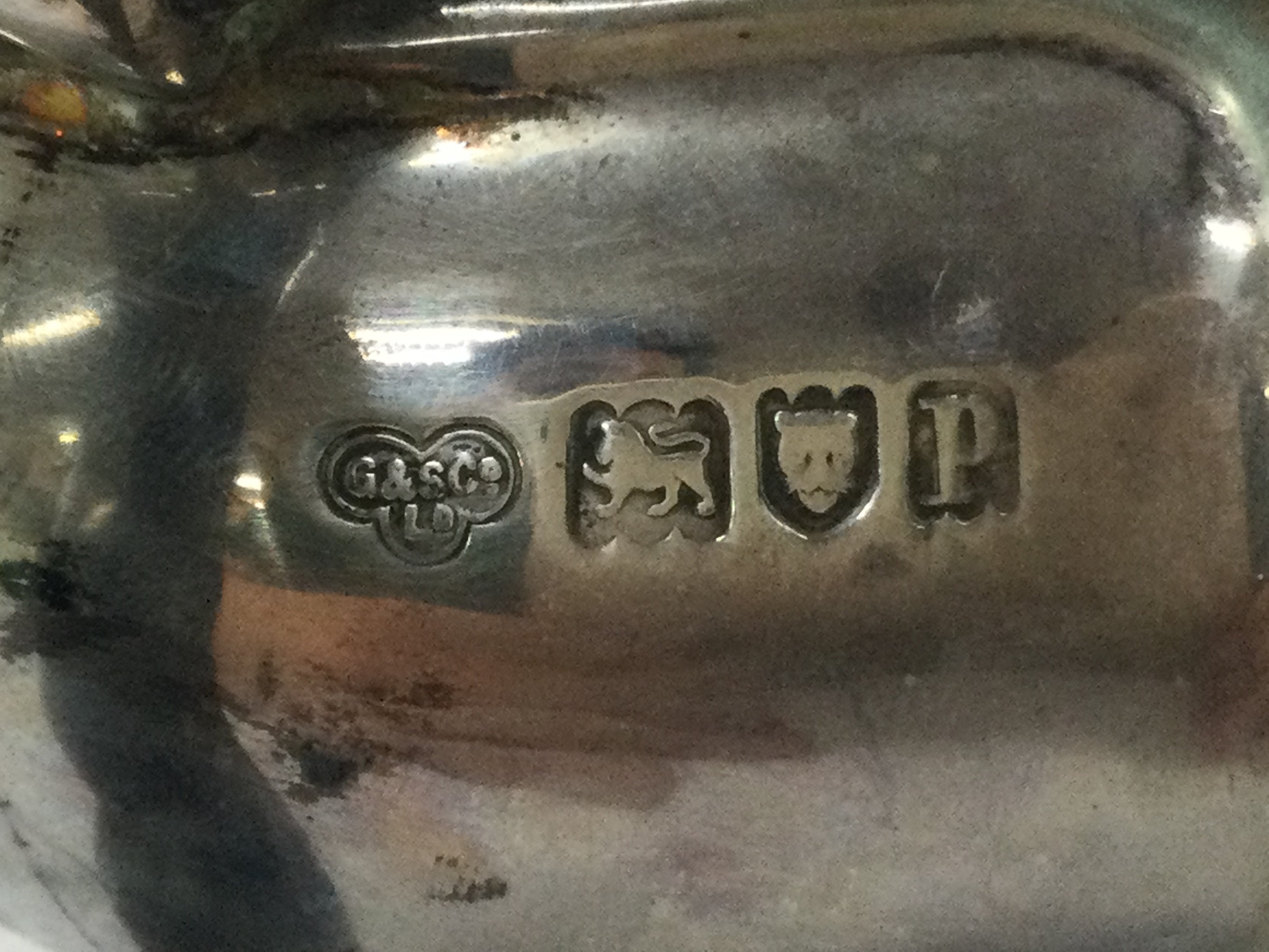 A silver hallmarked teapot with paw feet marked London 1910. Postage cat B