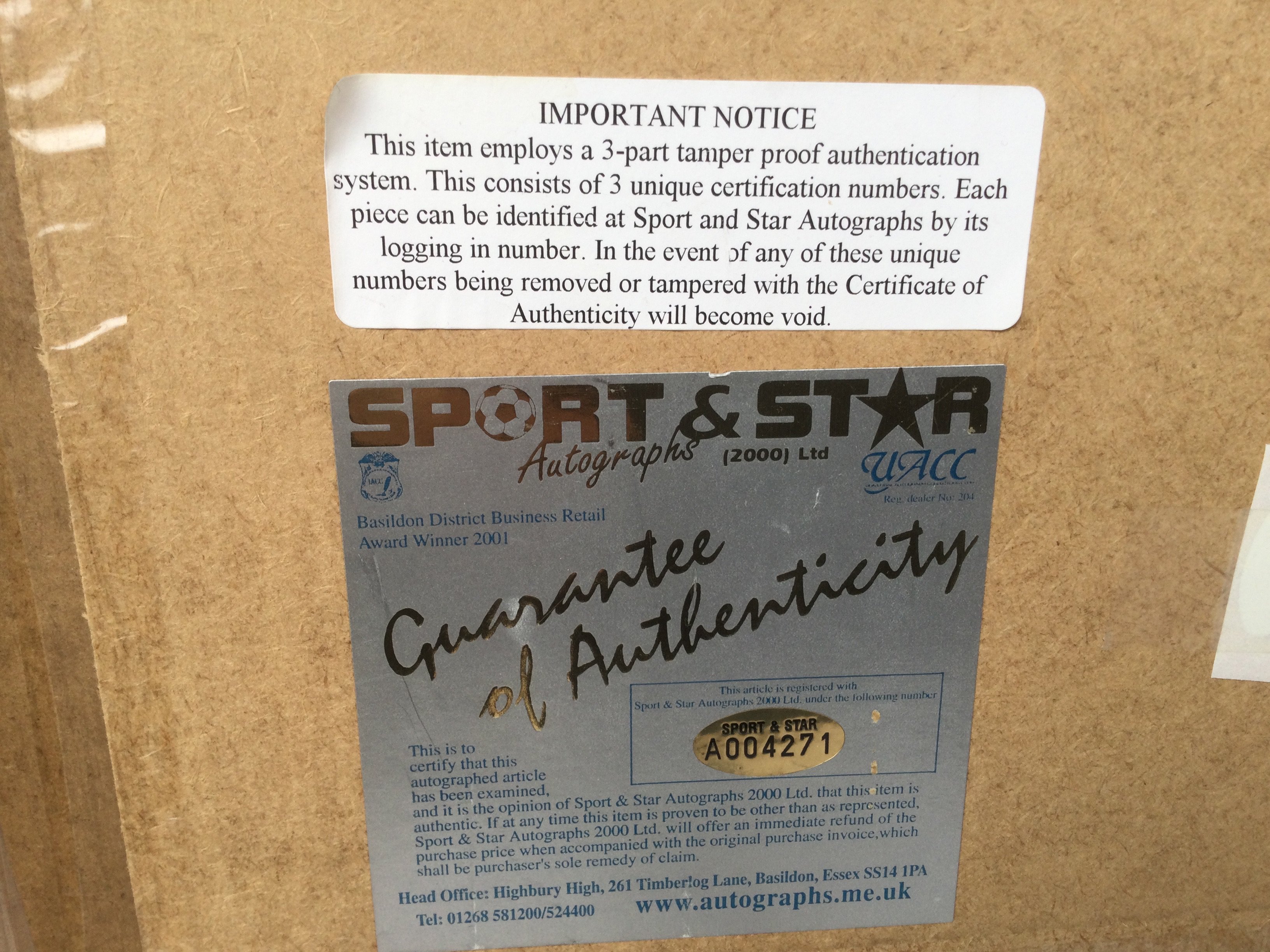 A framed and glazed Sex Pistols display signed by John Lydon with COA, approx 78cm x 48cm.