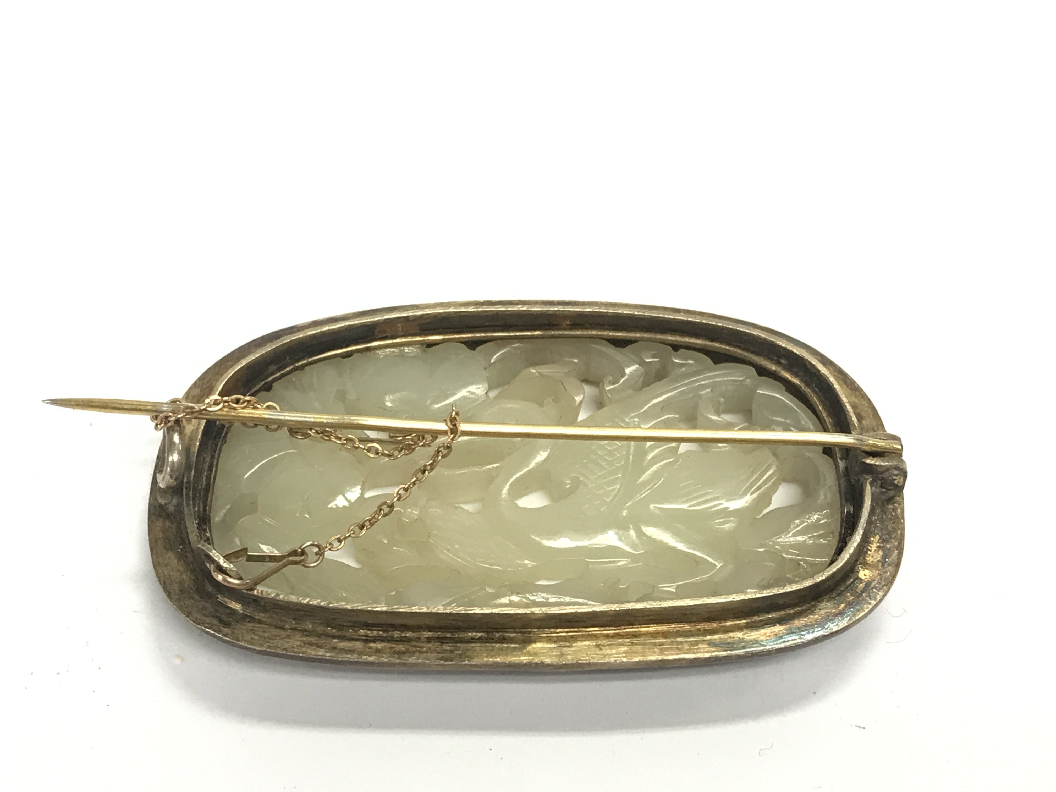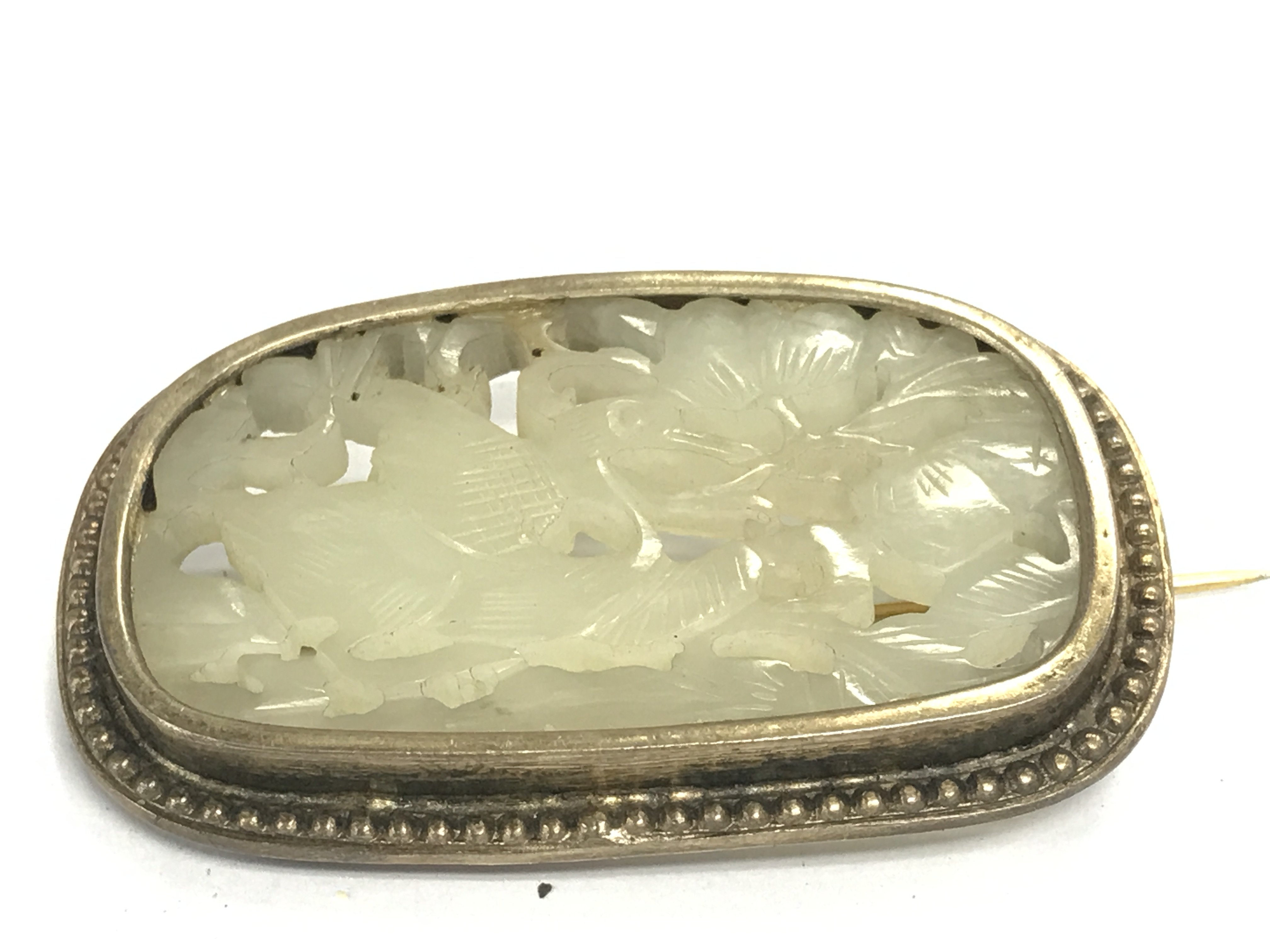 A jade brooch possible from 1920s 30s 6cm wide 4cm high.