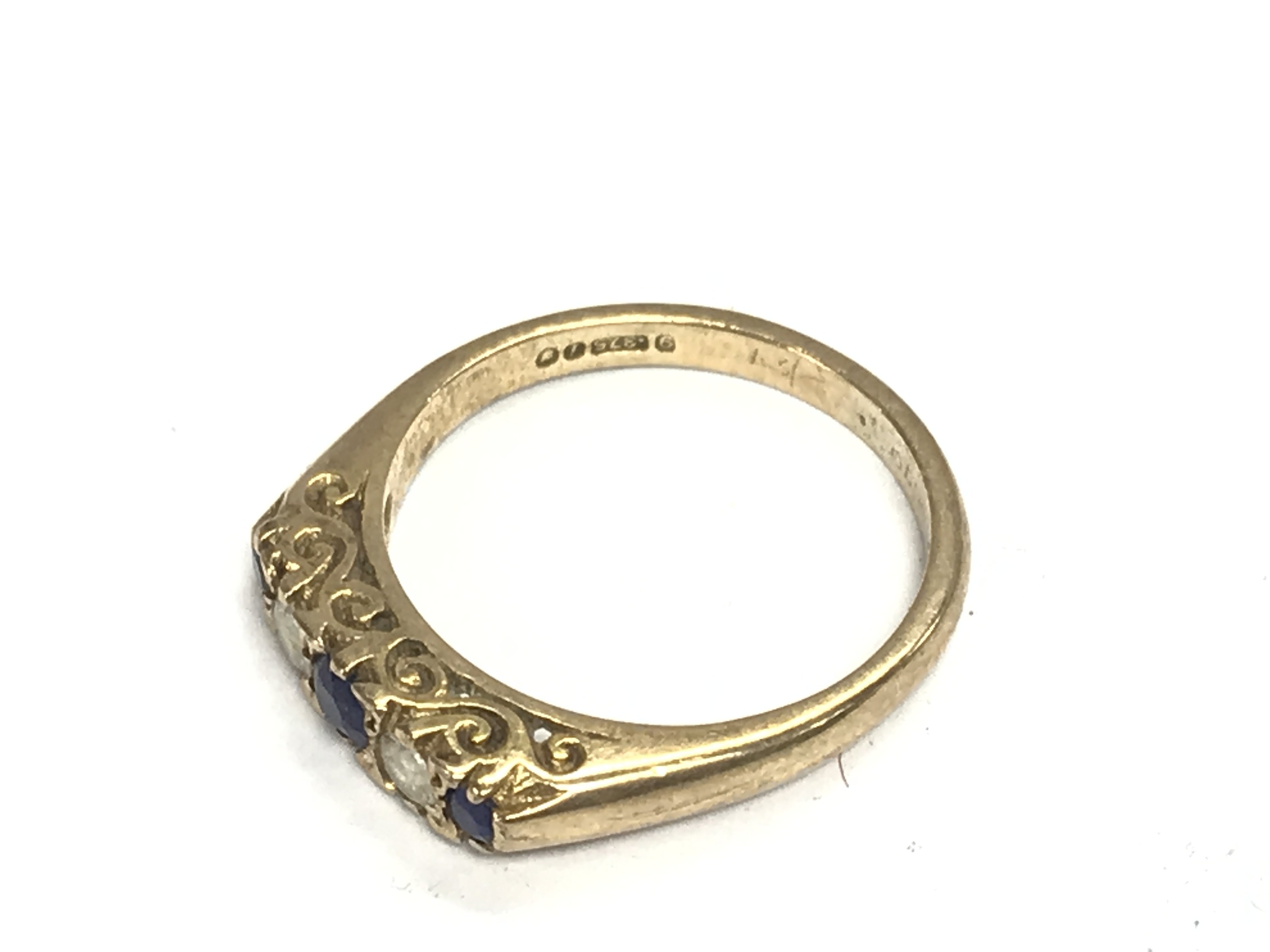 A 9ct gold ring set with simulated sapphires and white stones. Size L 1/2 and 2.64g