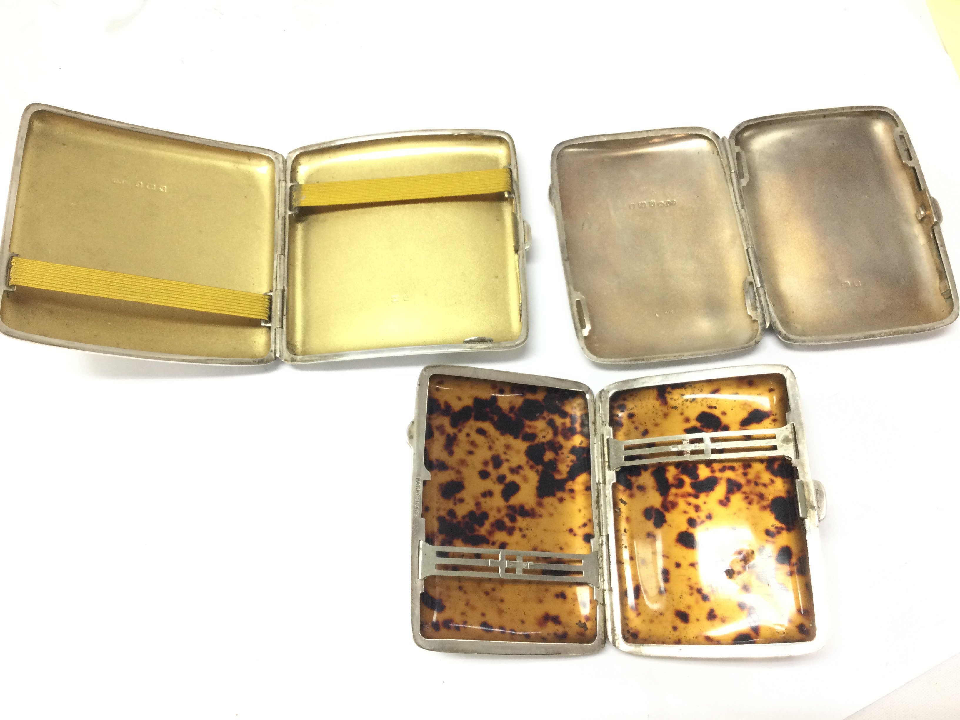 Silver hallmarked cigarette cases , one silver cigarette case tortoiseshell lined. Postage category B
