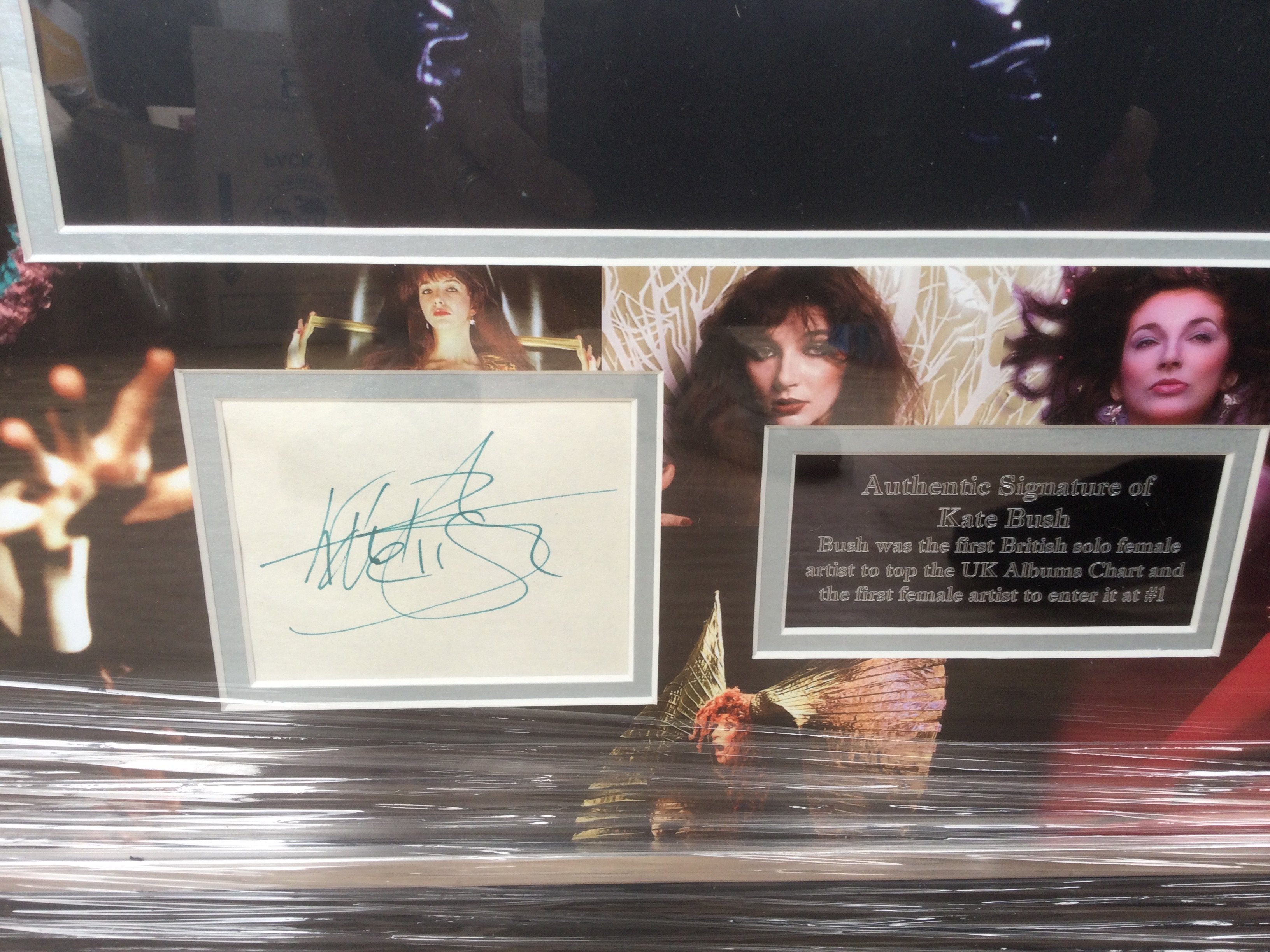 A framed and glazed signed Kate Bush display, approx 74.5cm x 55.5cm.