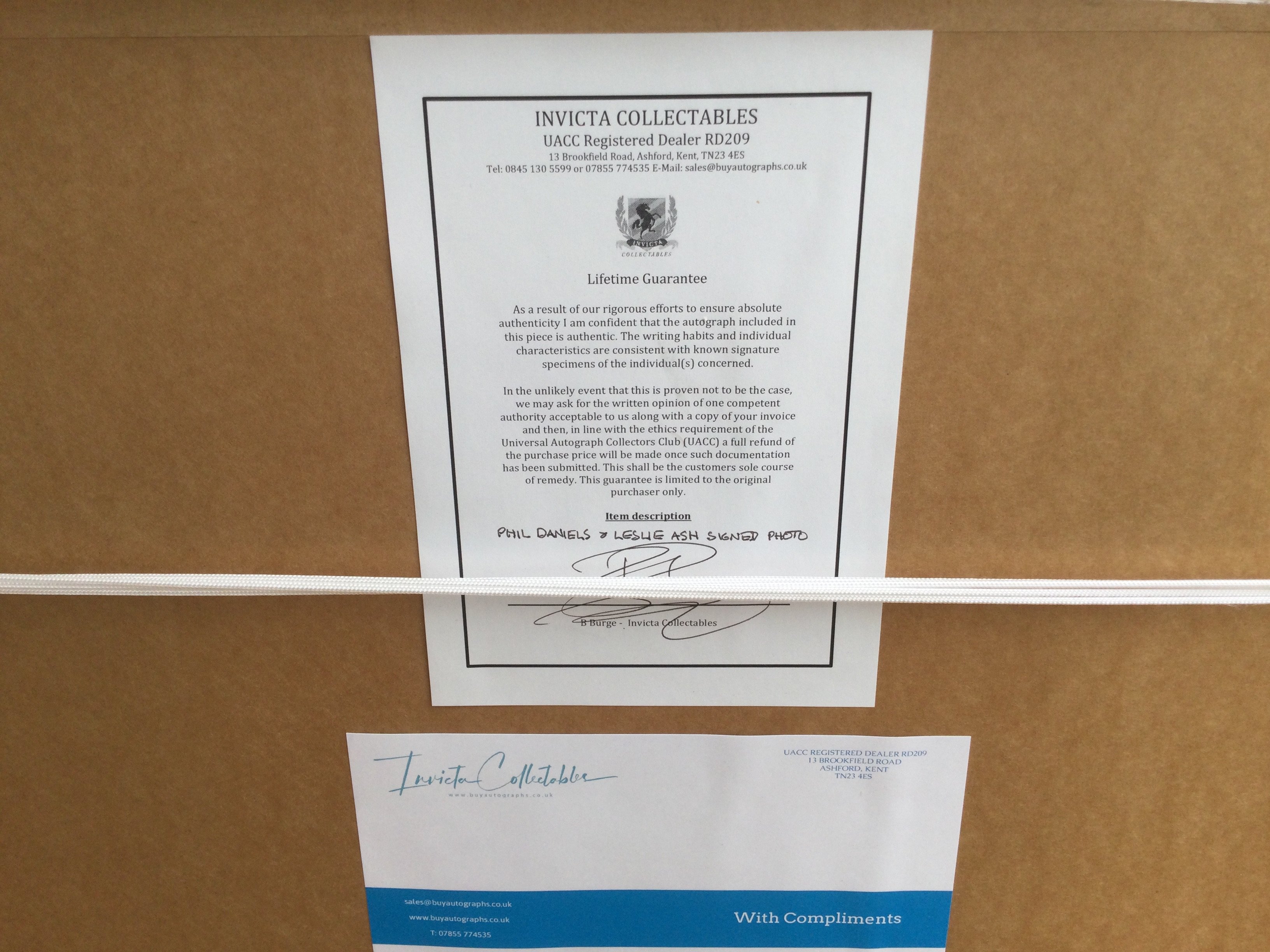 A framed and glazed display of Quadrophenia signed by Phil Daniels and Leslie Ash with COA, approx 66cm x 79cm.