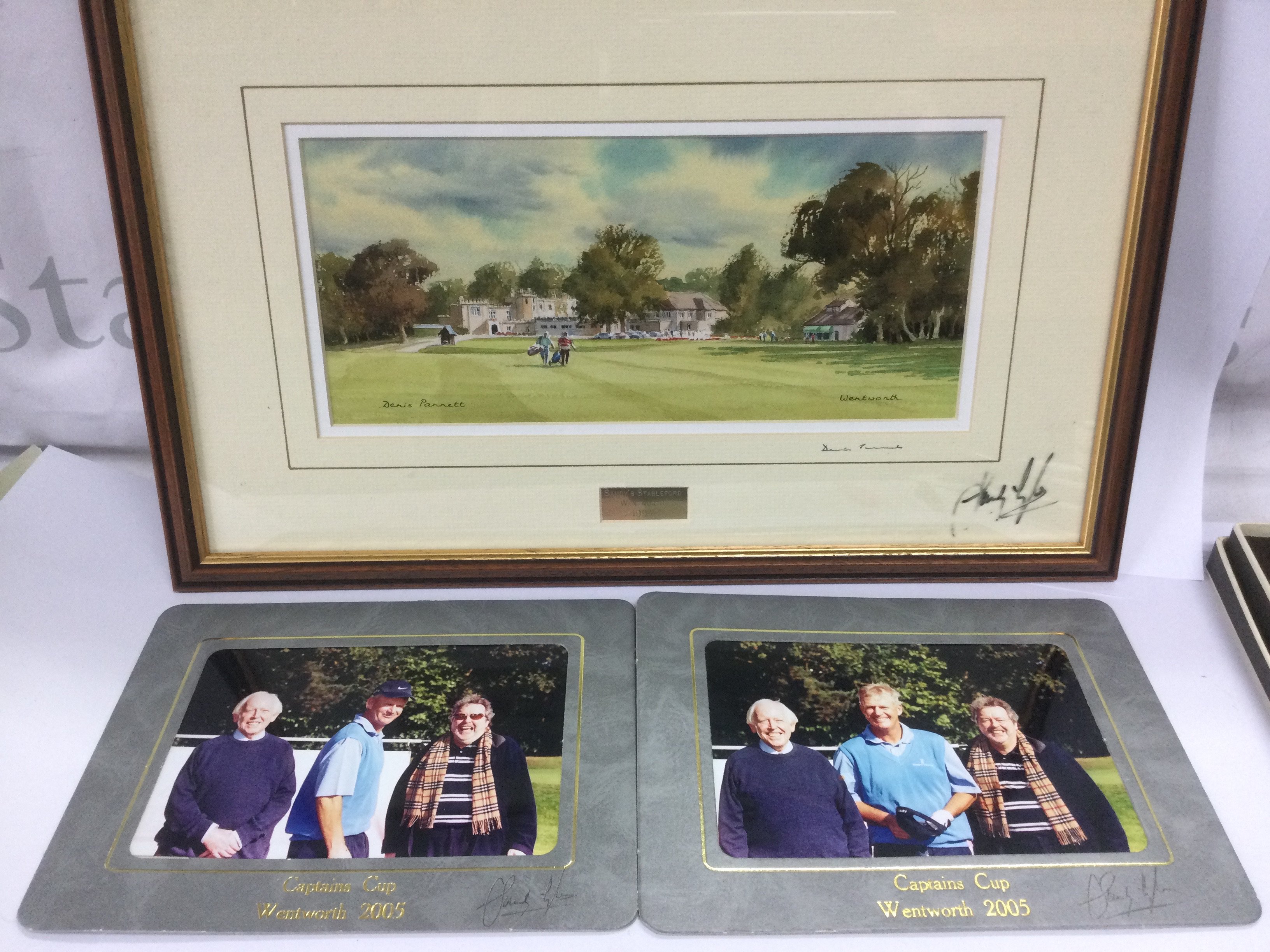 A golf bag signed by Sandy Lyle and containing various clubs plus three more golf related items signed by Sandy (4).