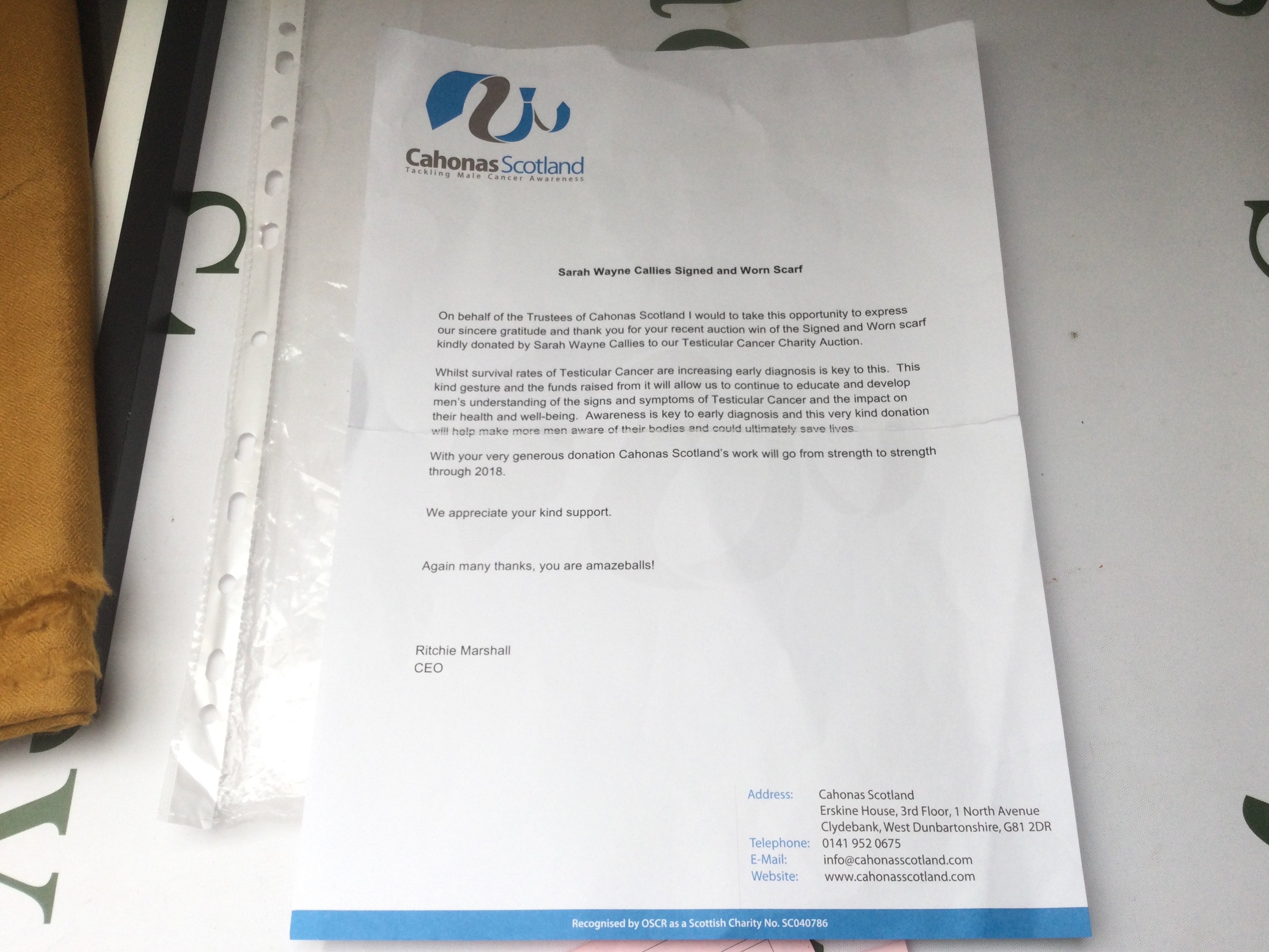 A signed Tom Cruise in Rain Man publicity photo plus a Sarah Wayne Callies (Prison Break) screen worn signed cashmere scarf with COA (2).