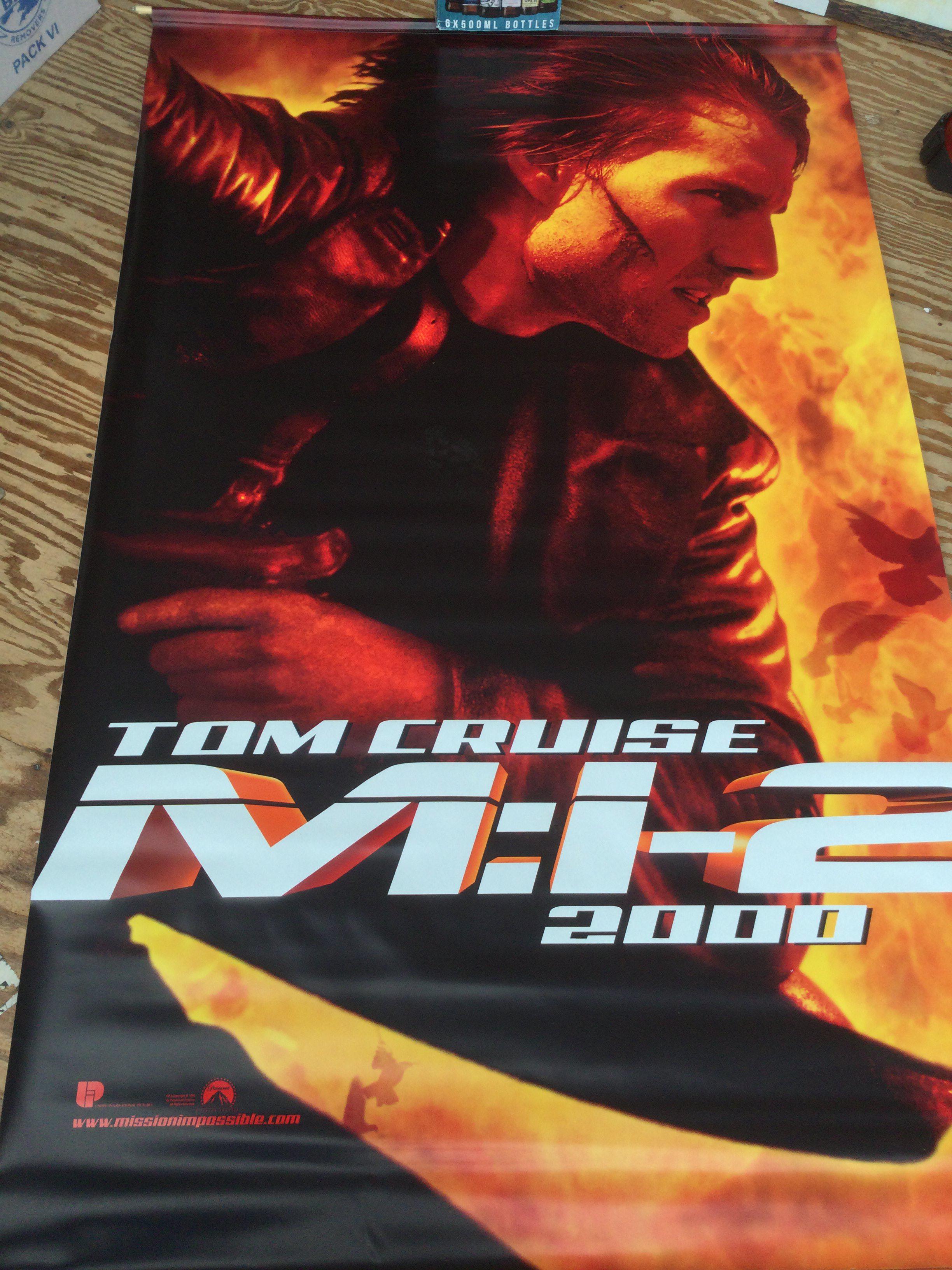 Three large vinyl film poster banners for Enemy Of The State approx 175cm x 119cm, Mission Impossible 2 approx 198cm x 120cm and Indiana Jones and The Kingdom Of The Crystal Skull approx 243cm x 152cm.
