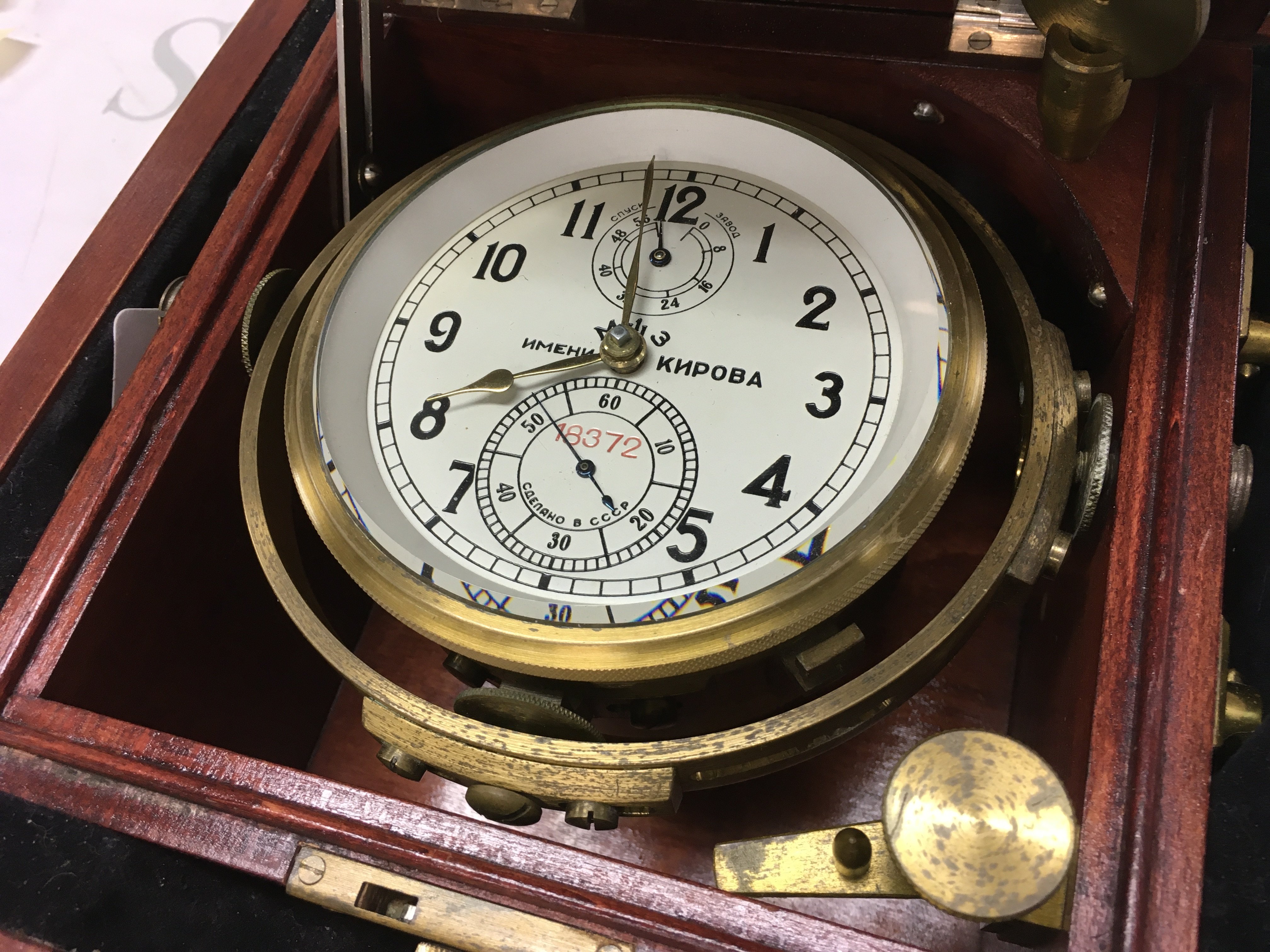 Russian chronograph , 56 hr in full working order and in good condition. In a fitted wooden case. Case dimensions 27x34x24.5cm This lot cannot be posted