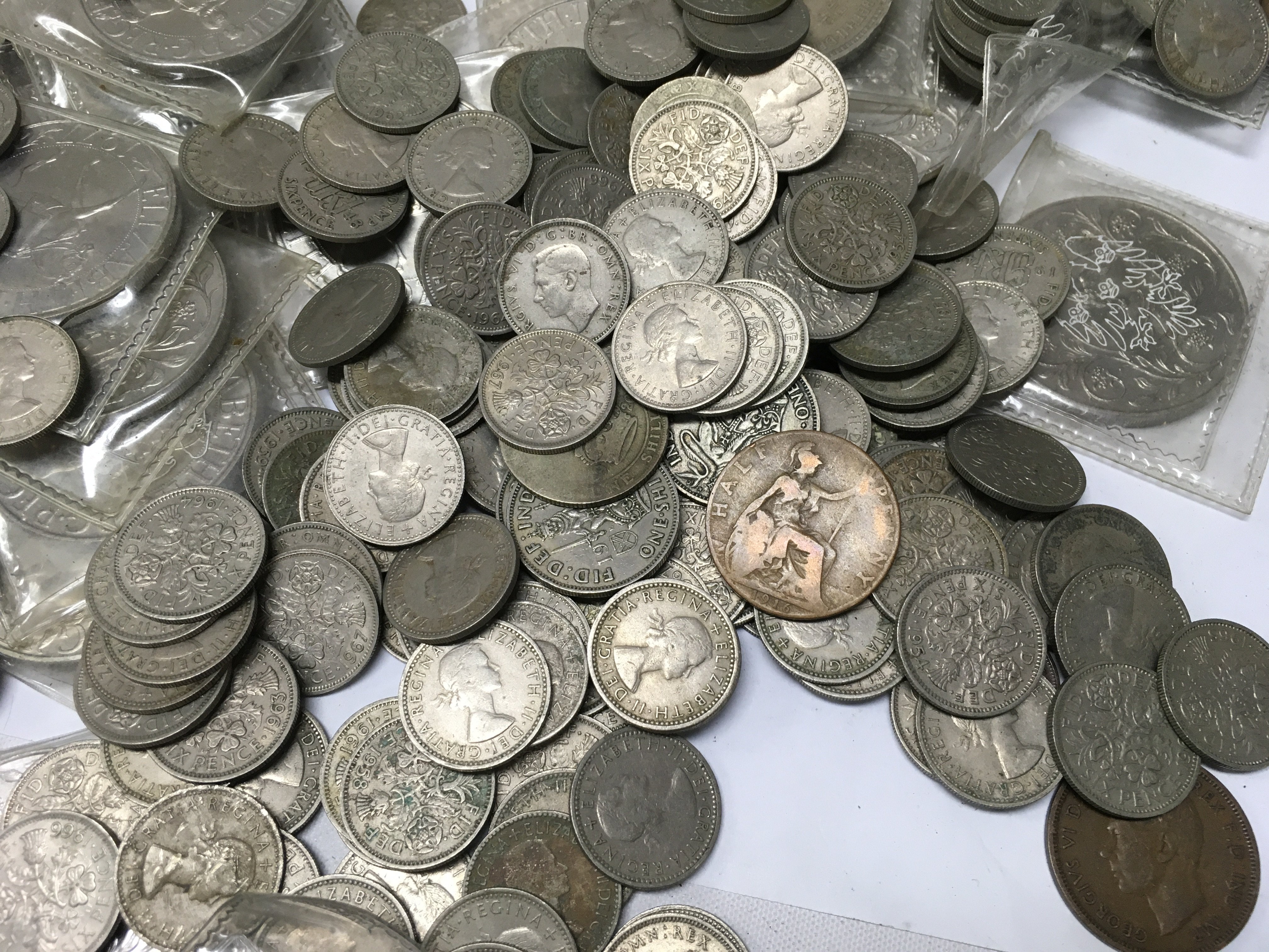 A collection of British coins including pennies, half crowns, shillings, six pence Etc . Postage category B