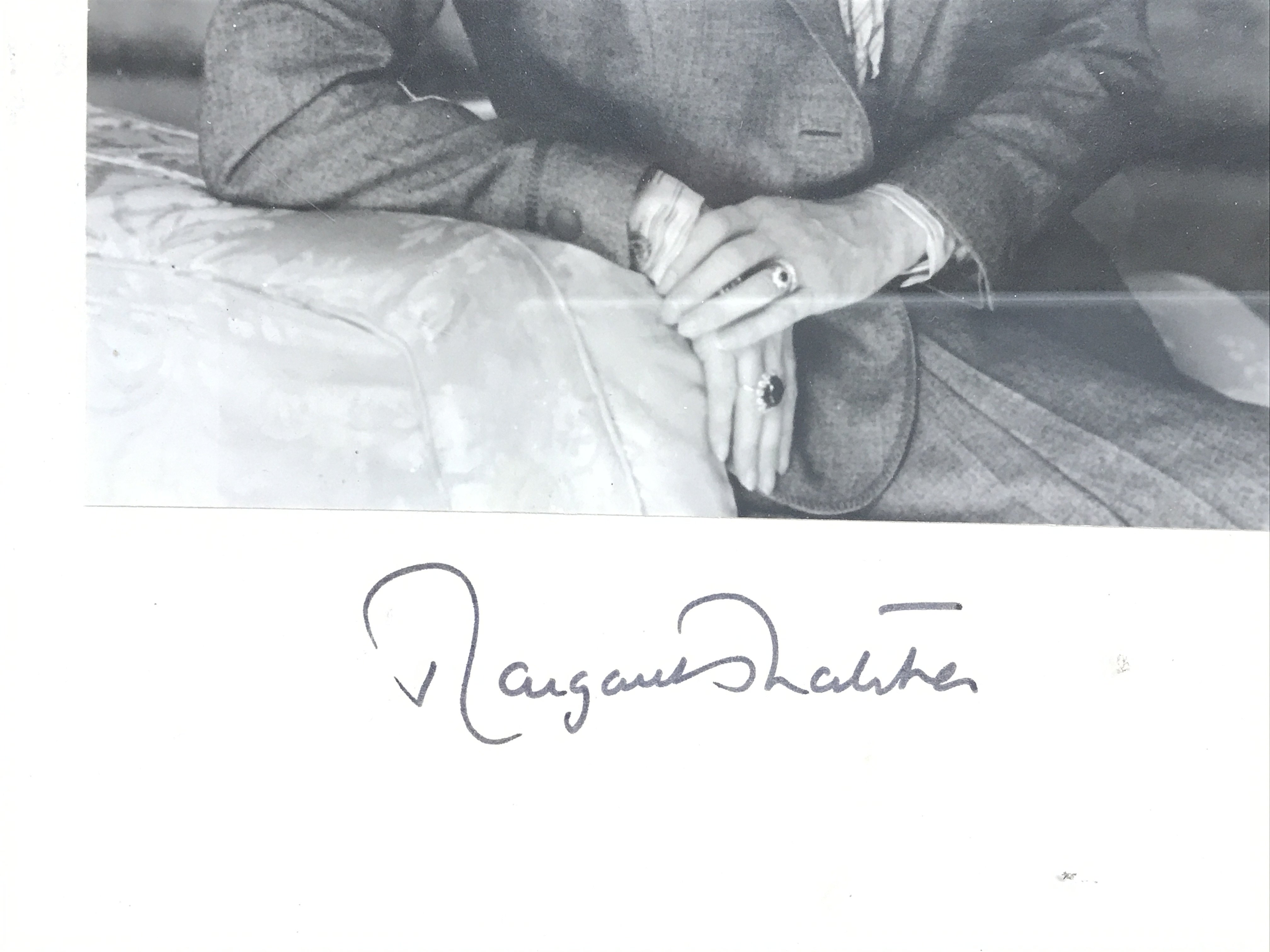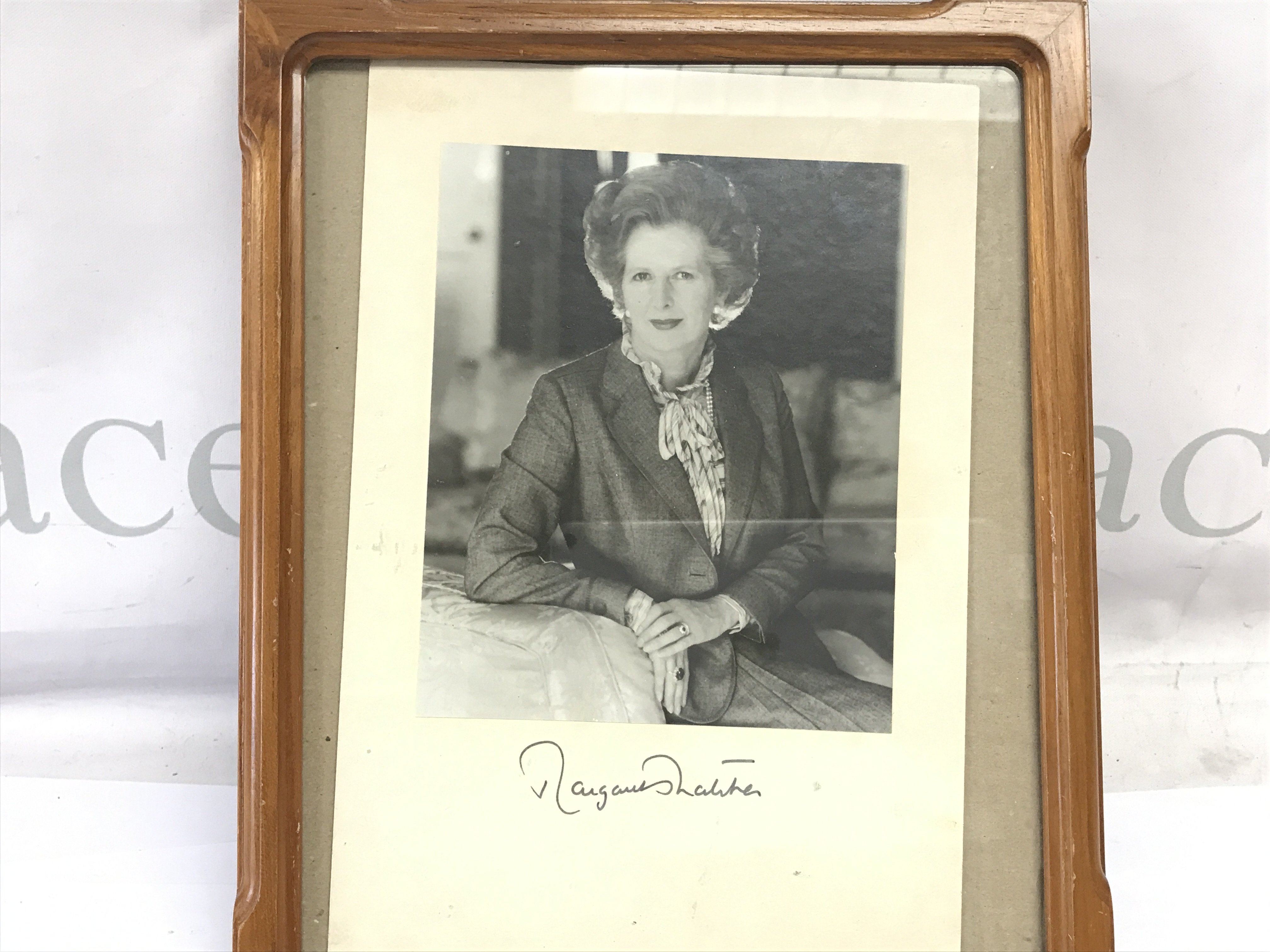 A framed signed picture of Margaret Thatcher the first female prime minister of the United Kingdom.
