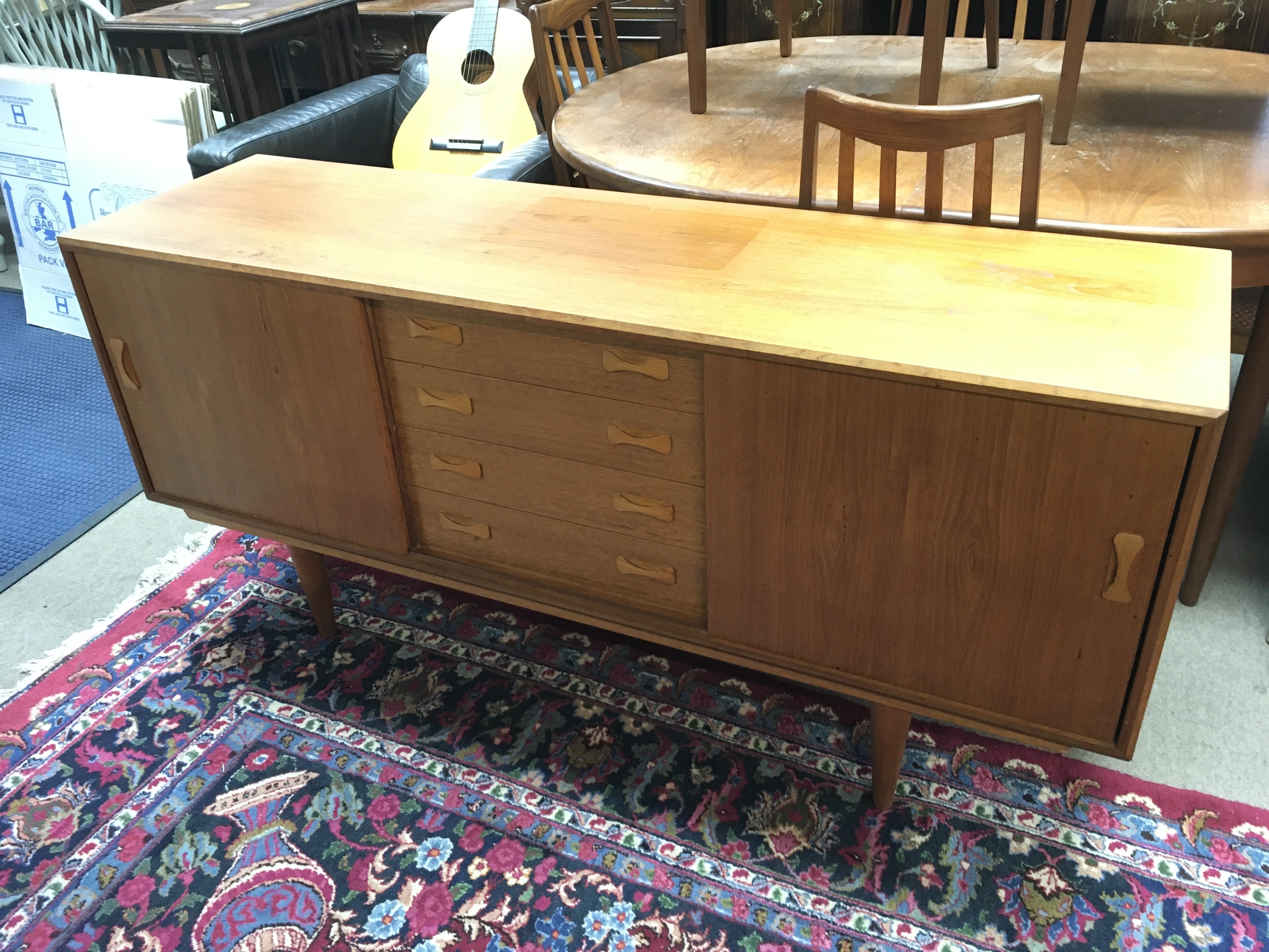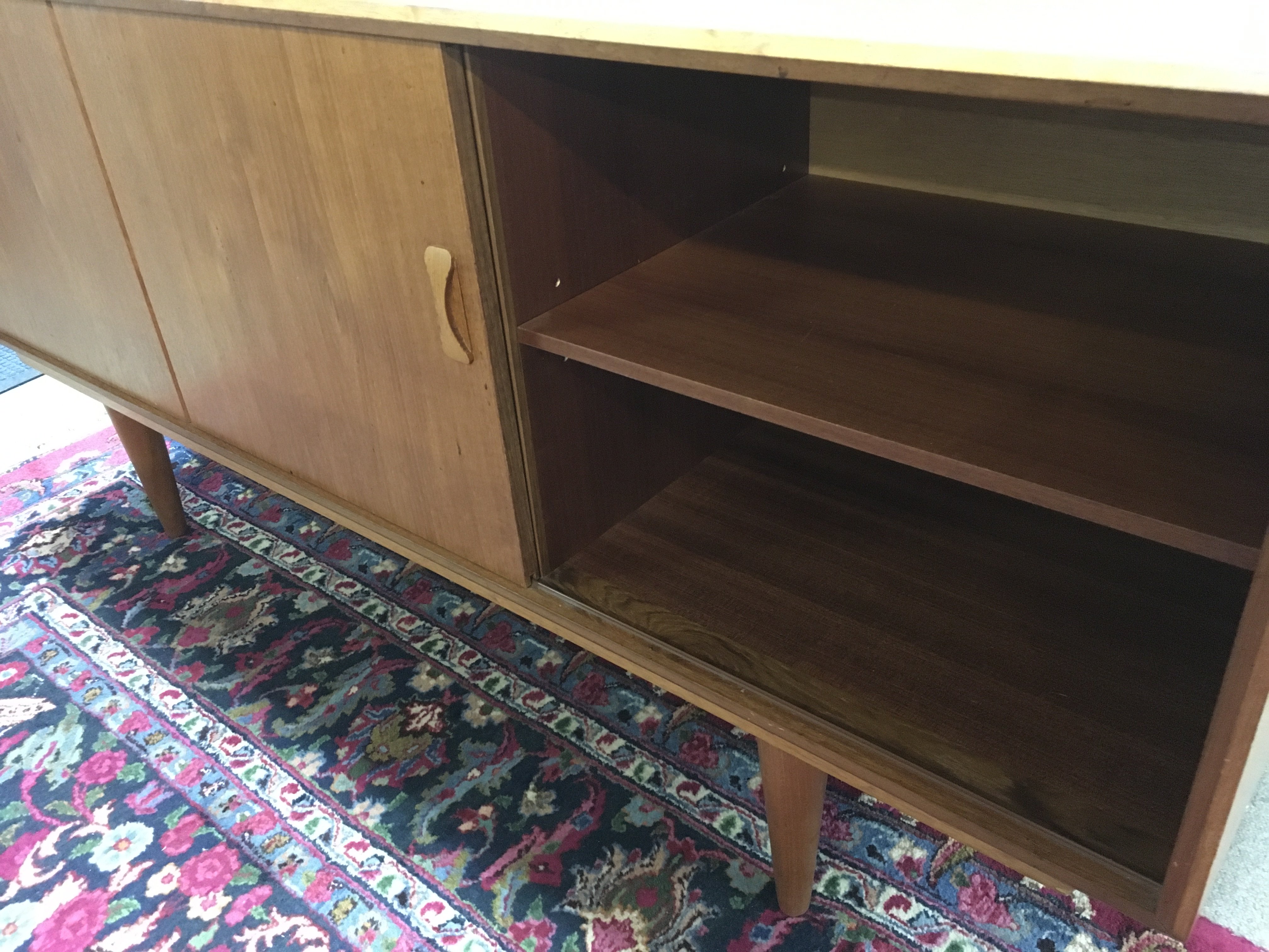 A teak sideboard with sliding doors, dimensions length 45.5x width 160x height 74cm