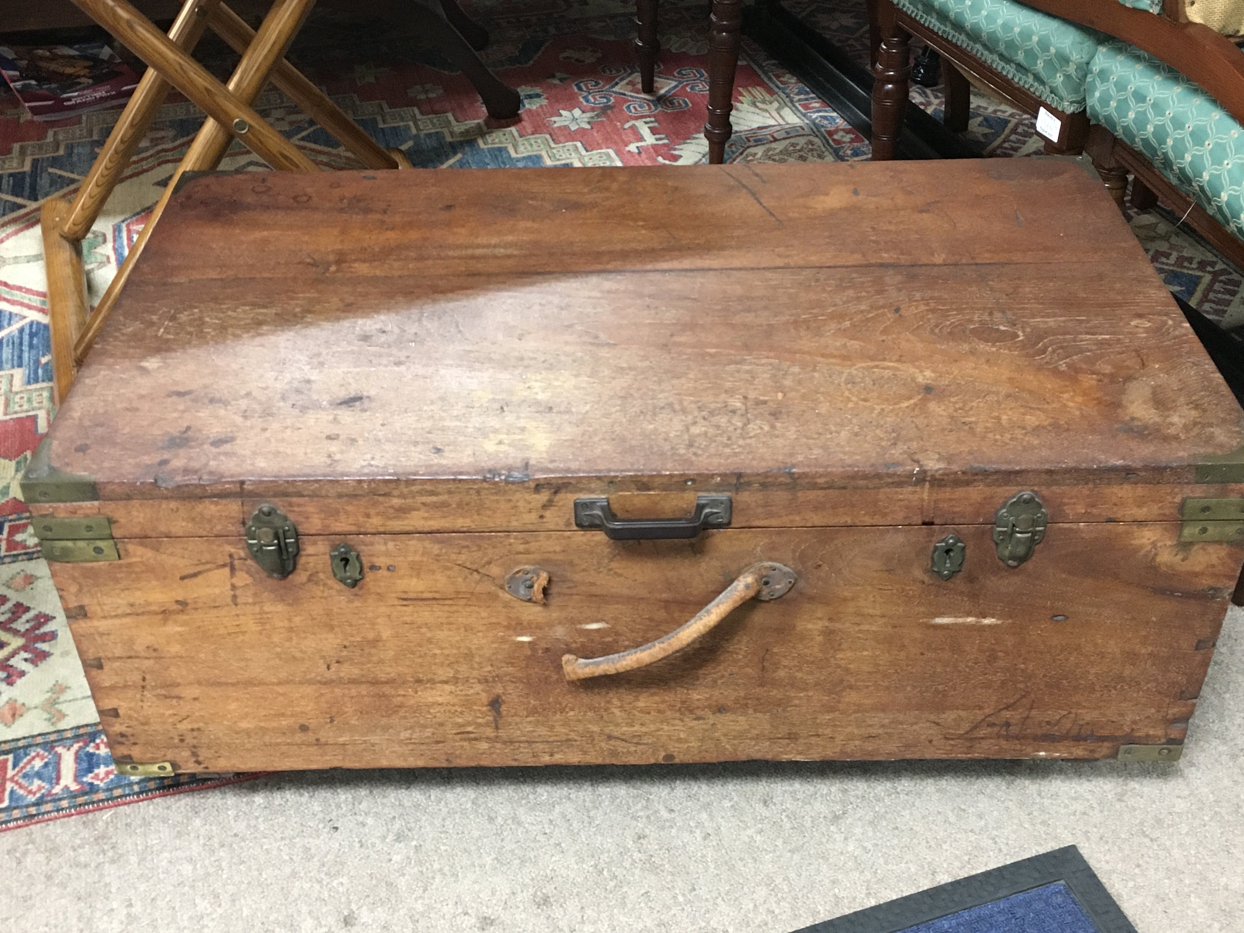 A vintage mahogany trunk, 92cm wide , 40cm tall , 52cm long.