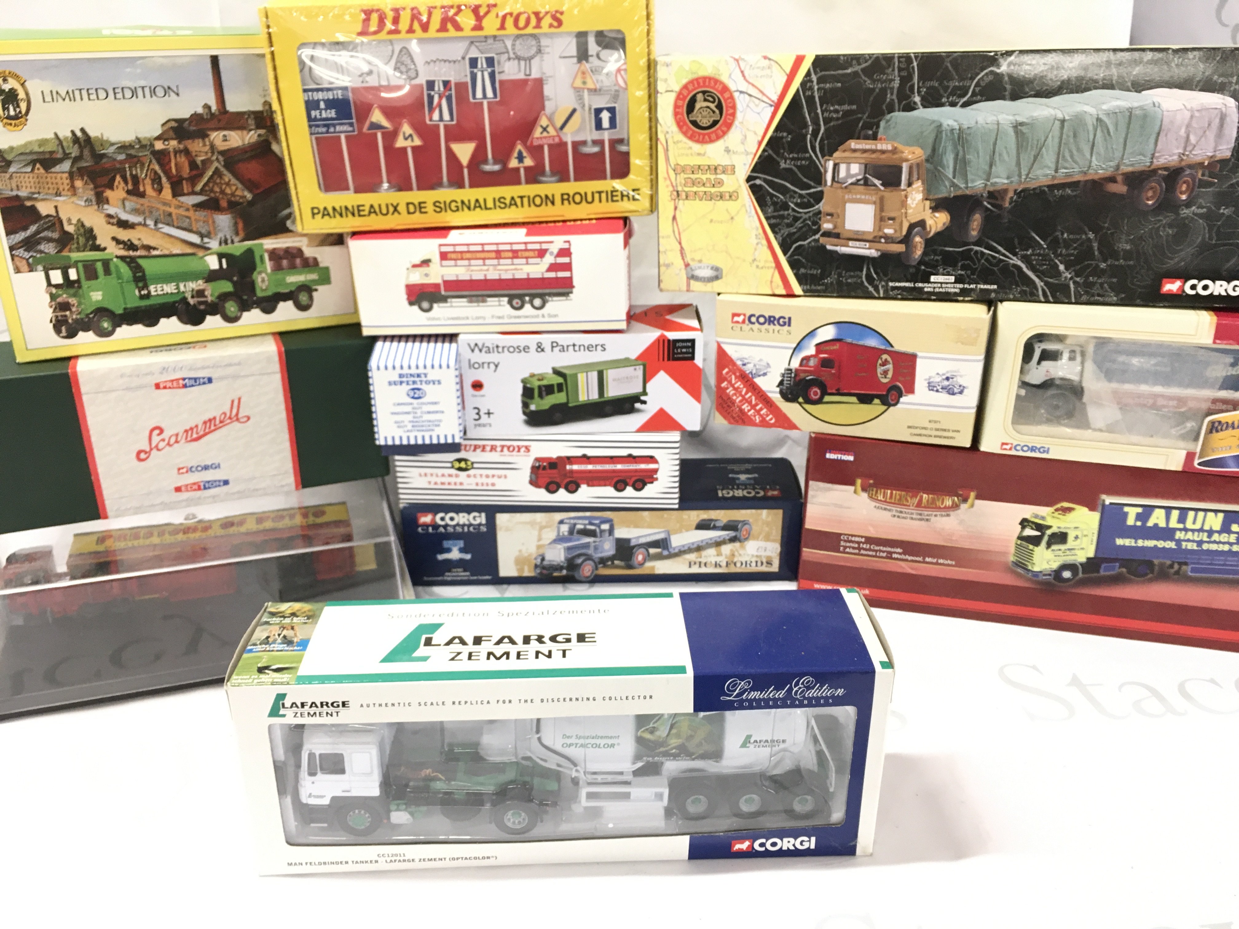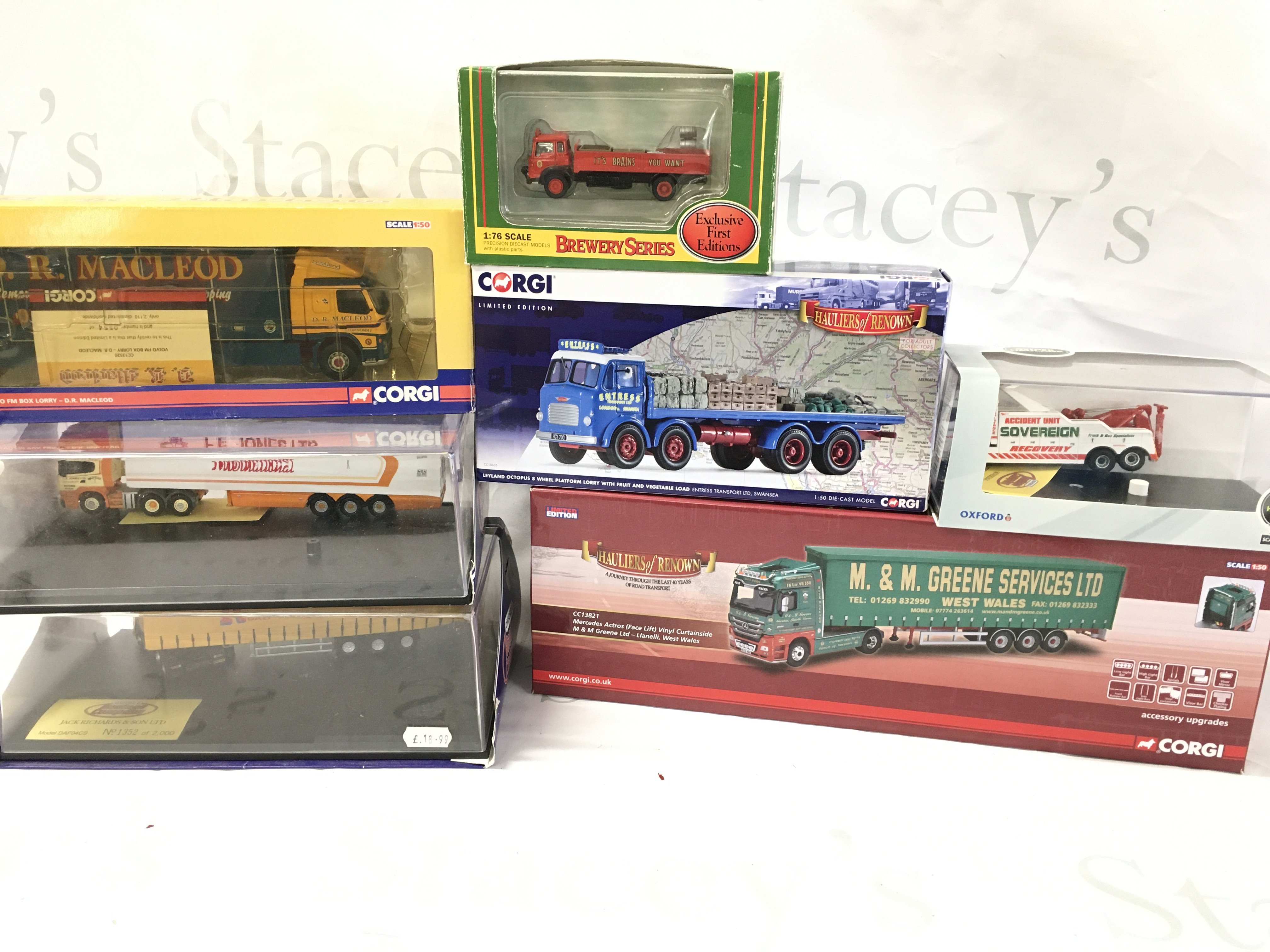 2 Boxes Containing Diecast Lorrys. Including Oxford and Corgi. Atlas.