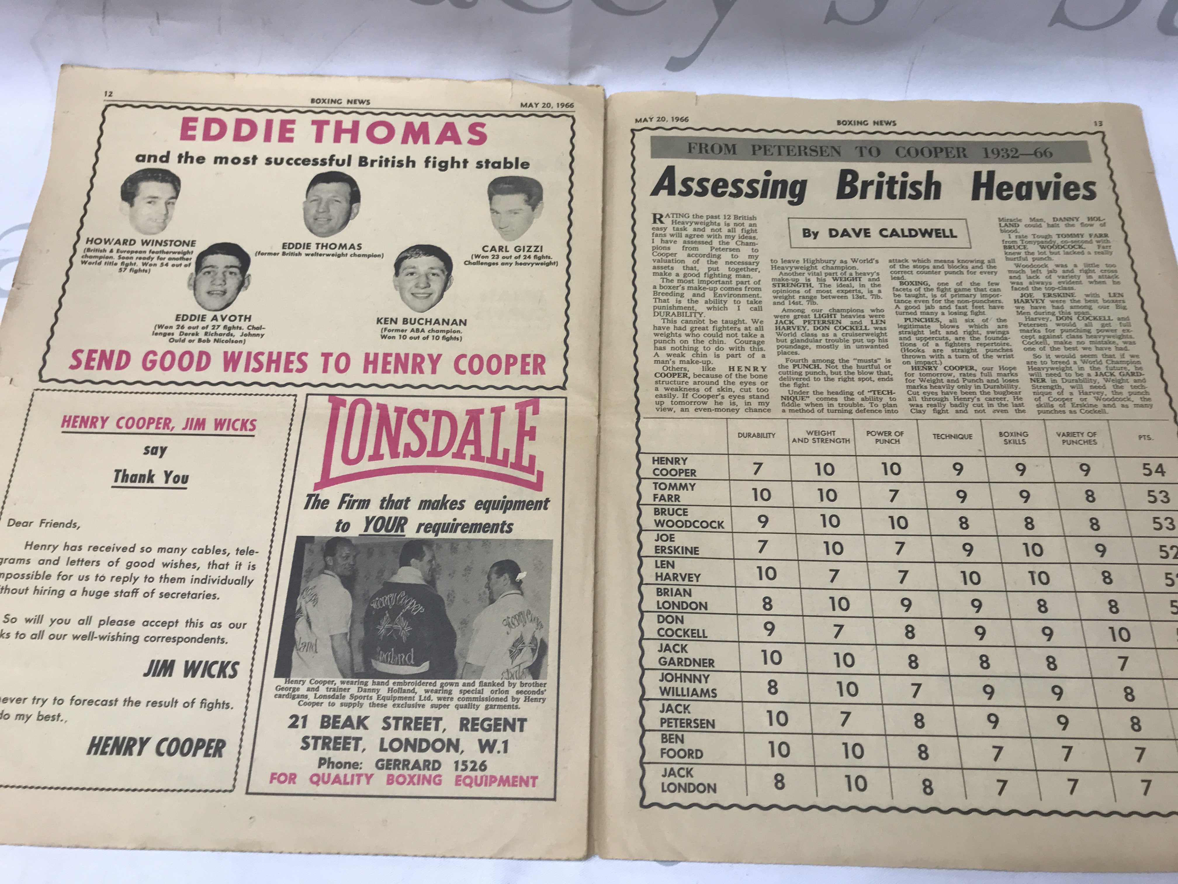 A vintage Boxing News May 20th 1966 magazine Muhammed Ali v Henry Cooper. No Reserve Postage category B