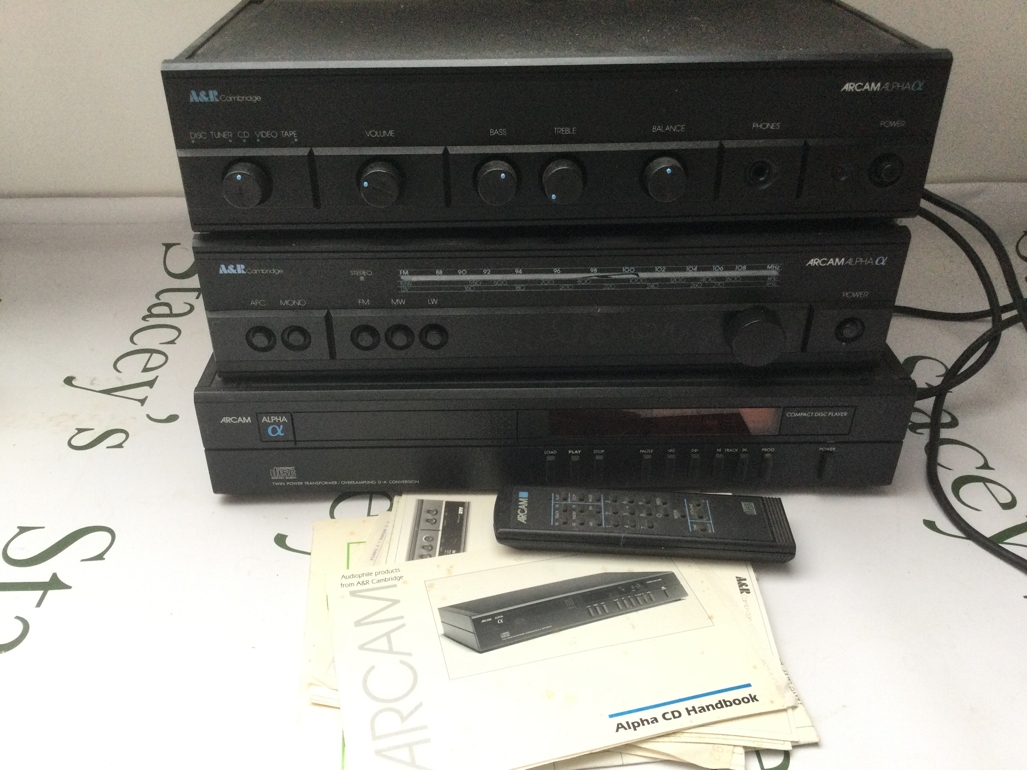 A Rega Planar 2 turntable, Arcam Alpha amp, tuner and CD separates plus a pair of Linn Index speakers and stands (6). Comes with remote control and manuals.