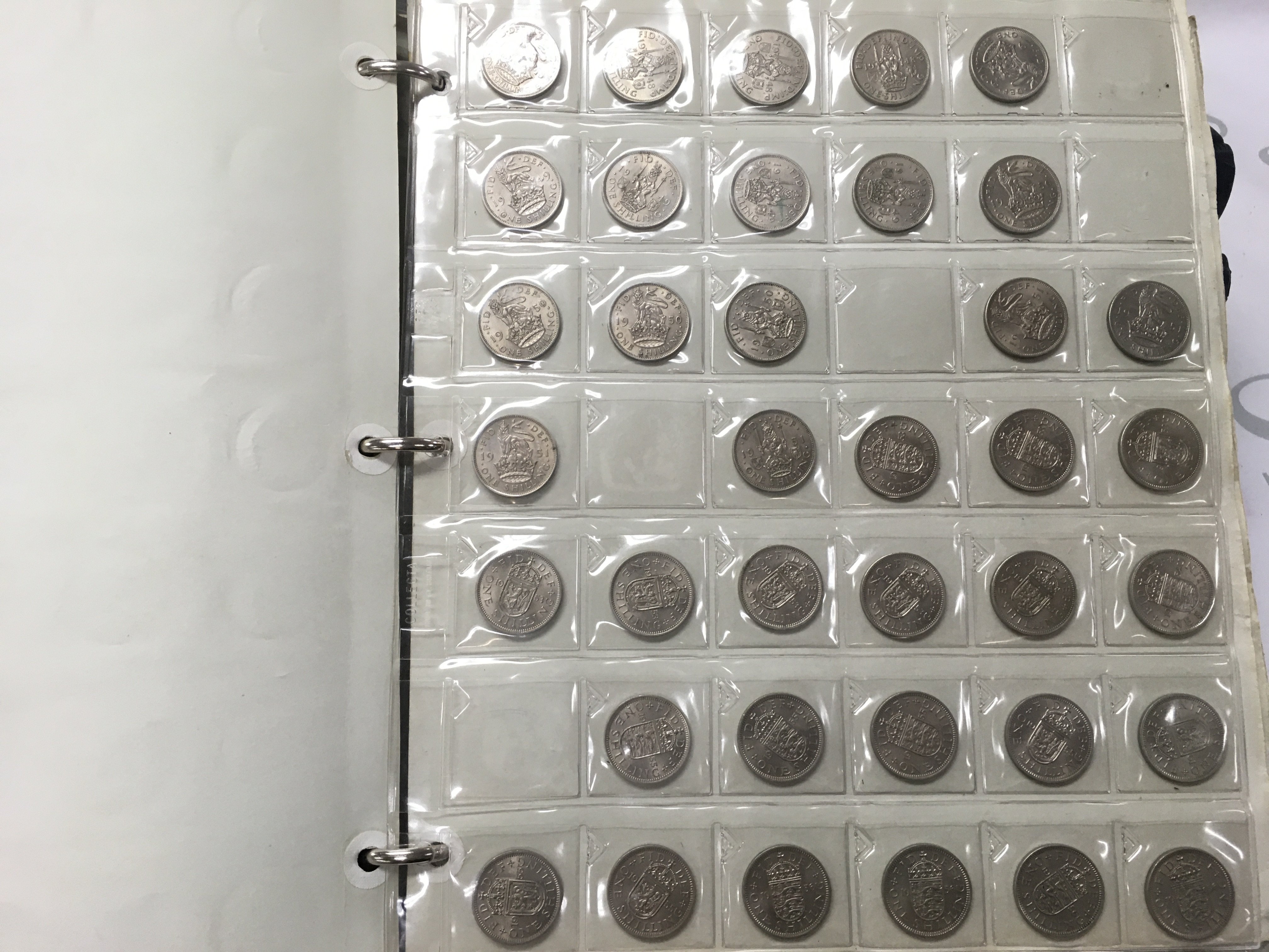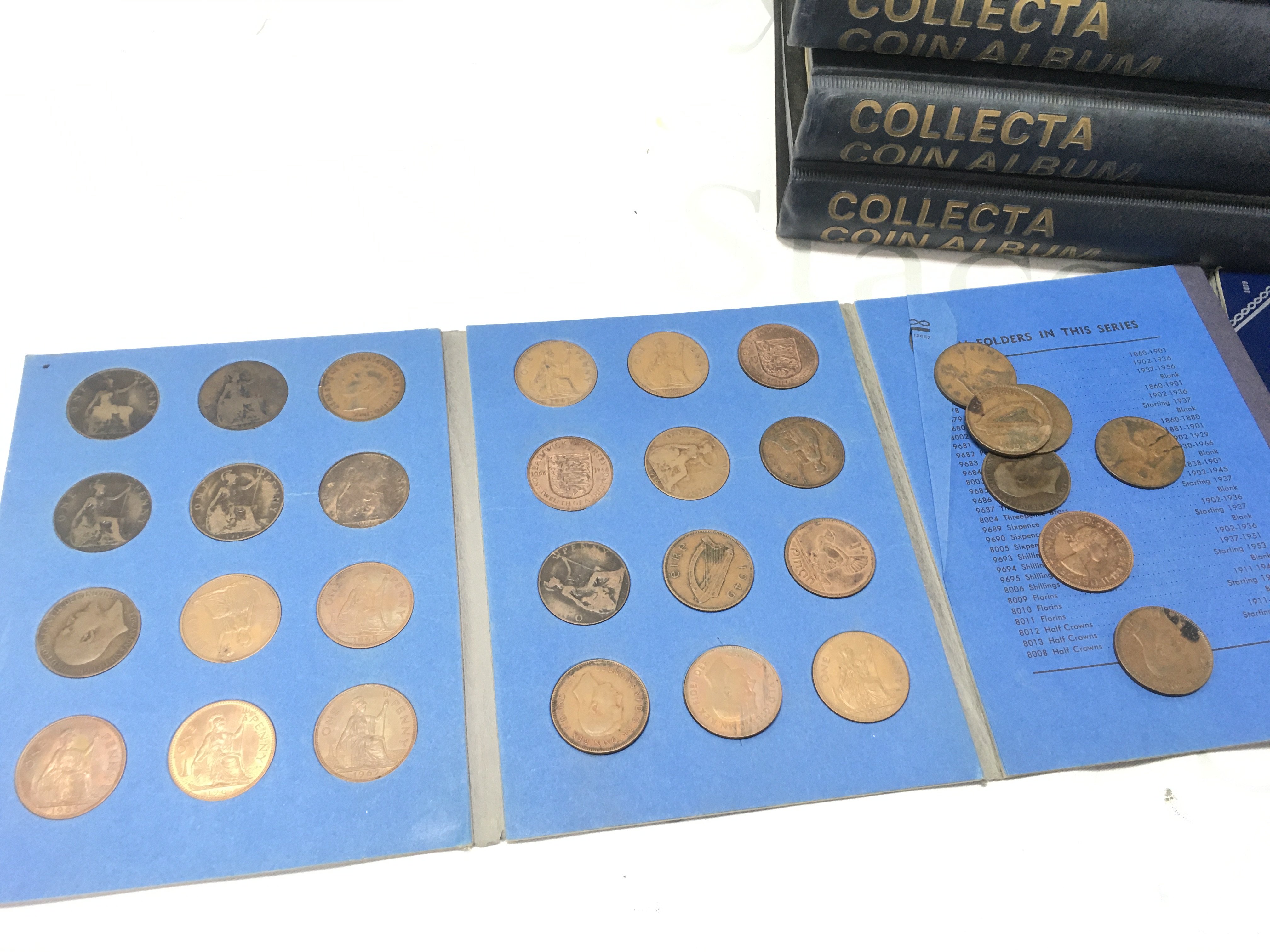 Five coin albums and smaller albums (three empty). Albums include Three Pence, one shillings, half crowns, five shillings Etc. Postage category C