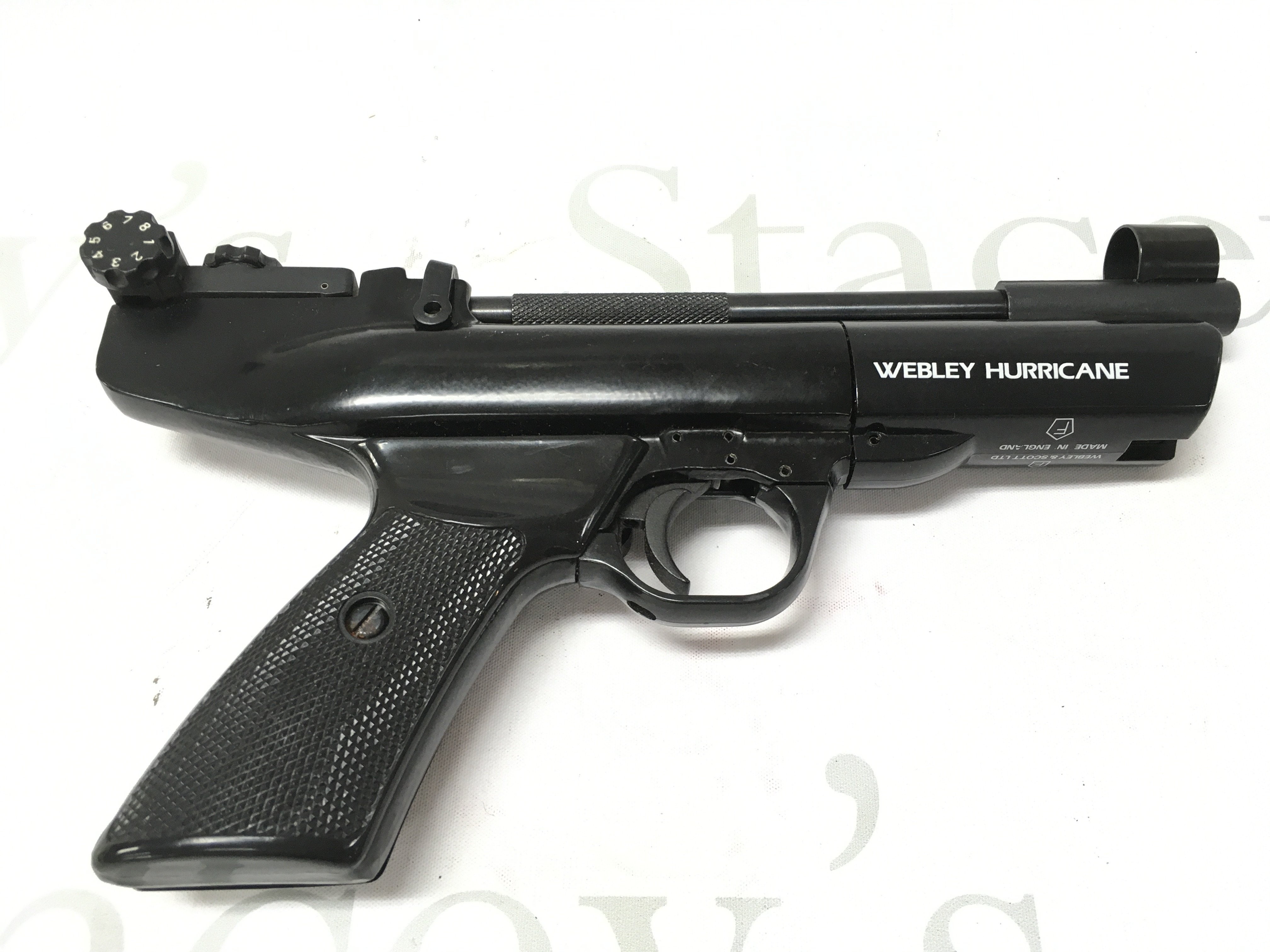 A vintage Webley Hurricane air pistol, mechanism seen functioning . This lot cannot be posted