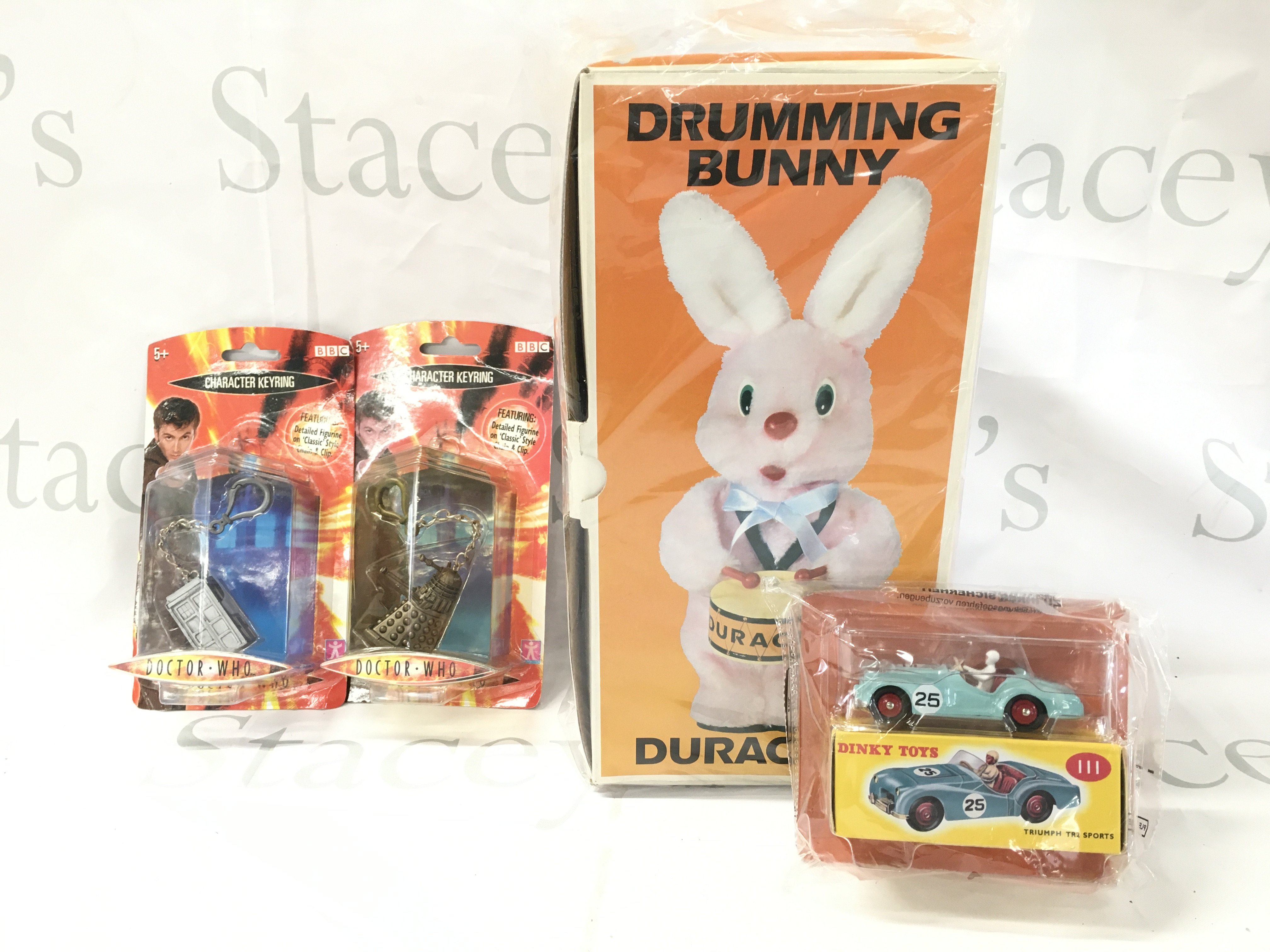 A Collection of Various Toys Including Marvel Turtles. Batman. Doctor Who And A Drumming Bunny. No Reserve.