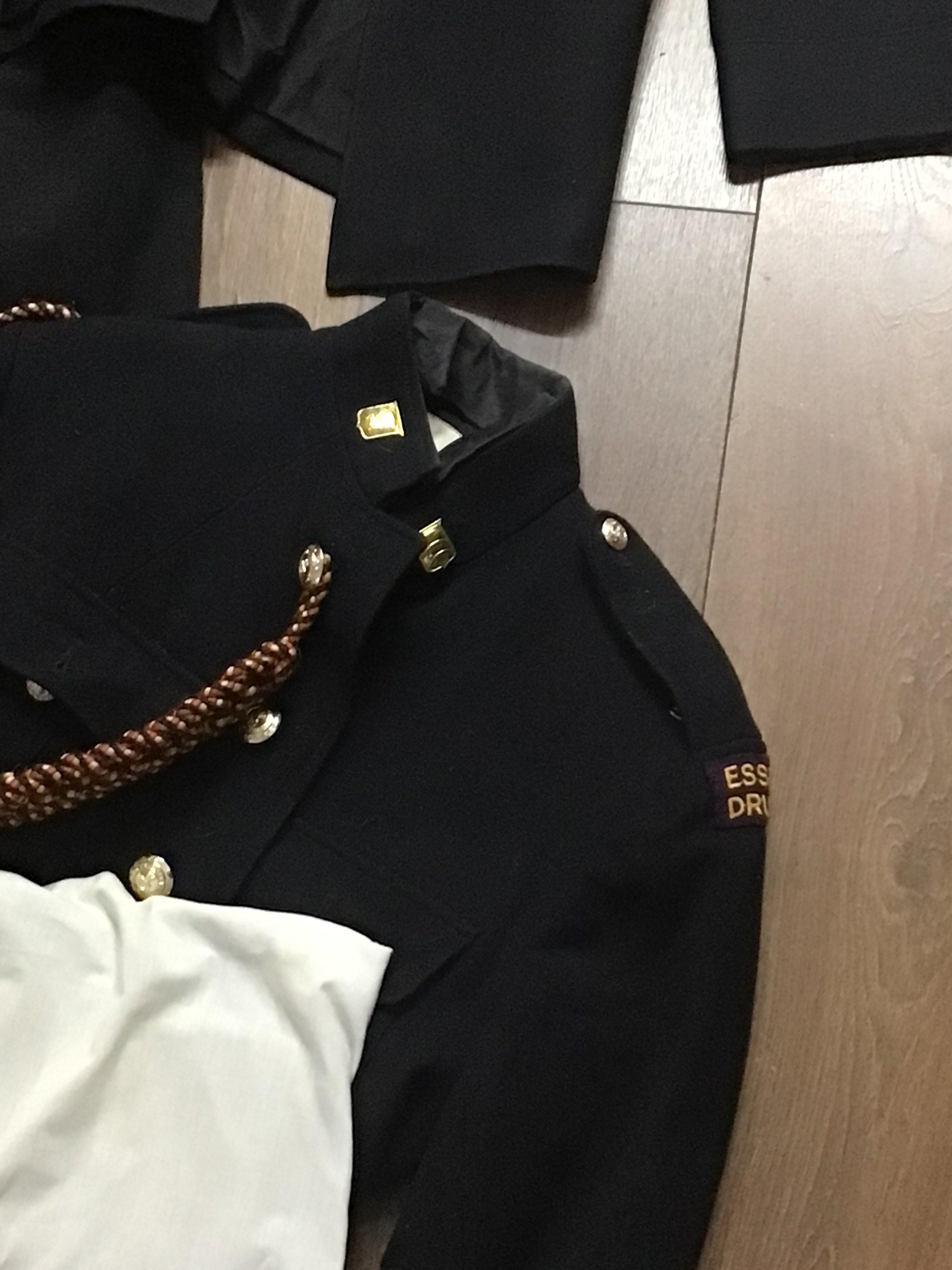 British Army and other number 1 uniforms including a bandsman and Essex Regiment soldier with trousers and a drummers webbing.