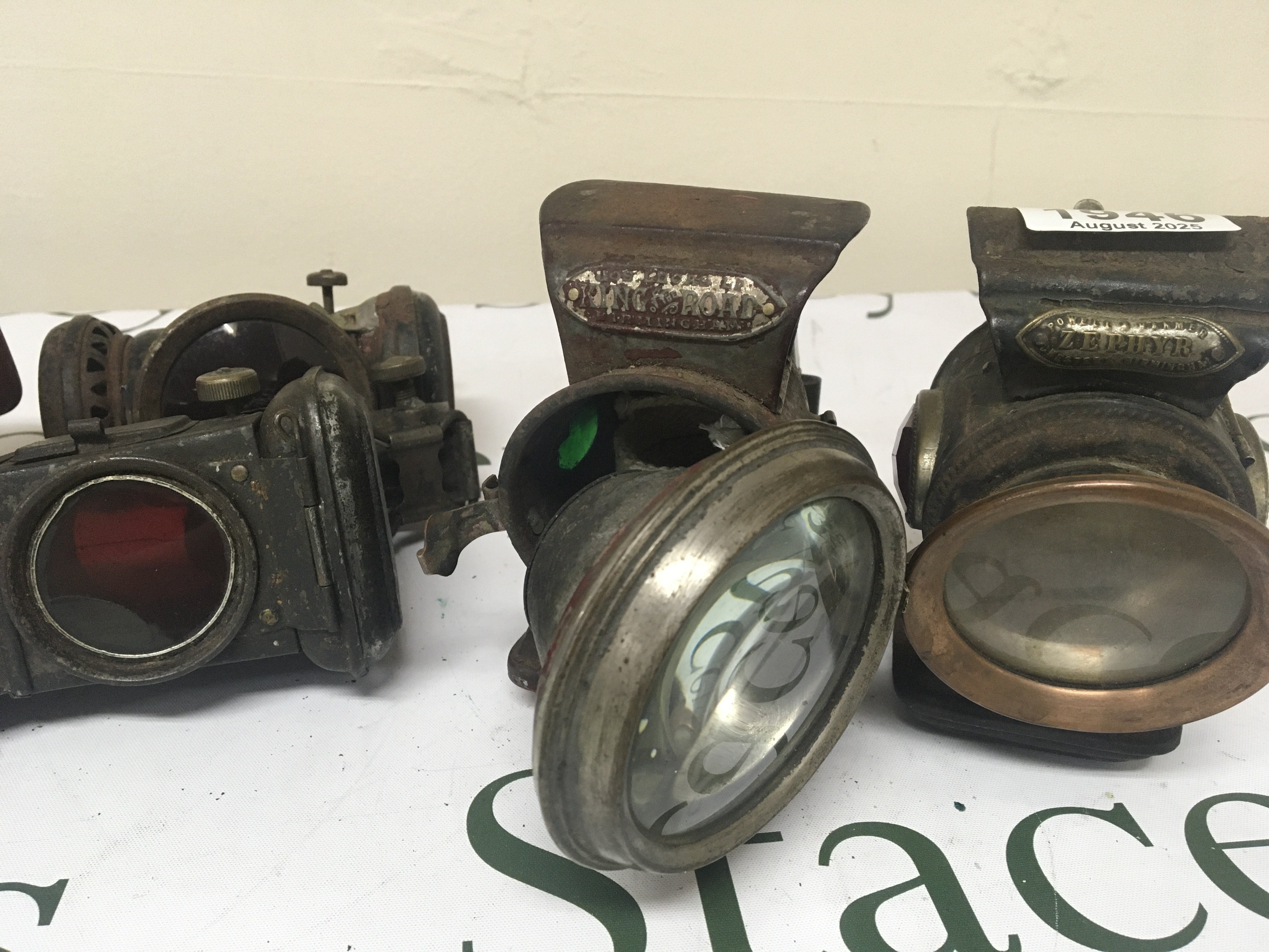 Five Vintage bike lamps makers King of the Road Birmingham Zephyr Birmingham (5)