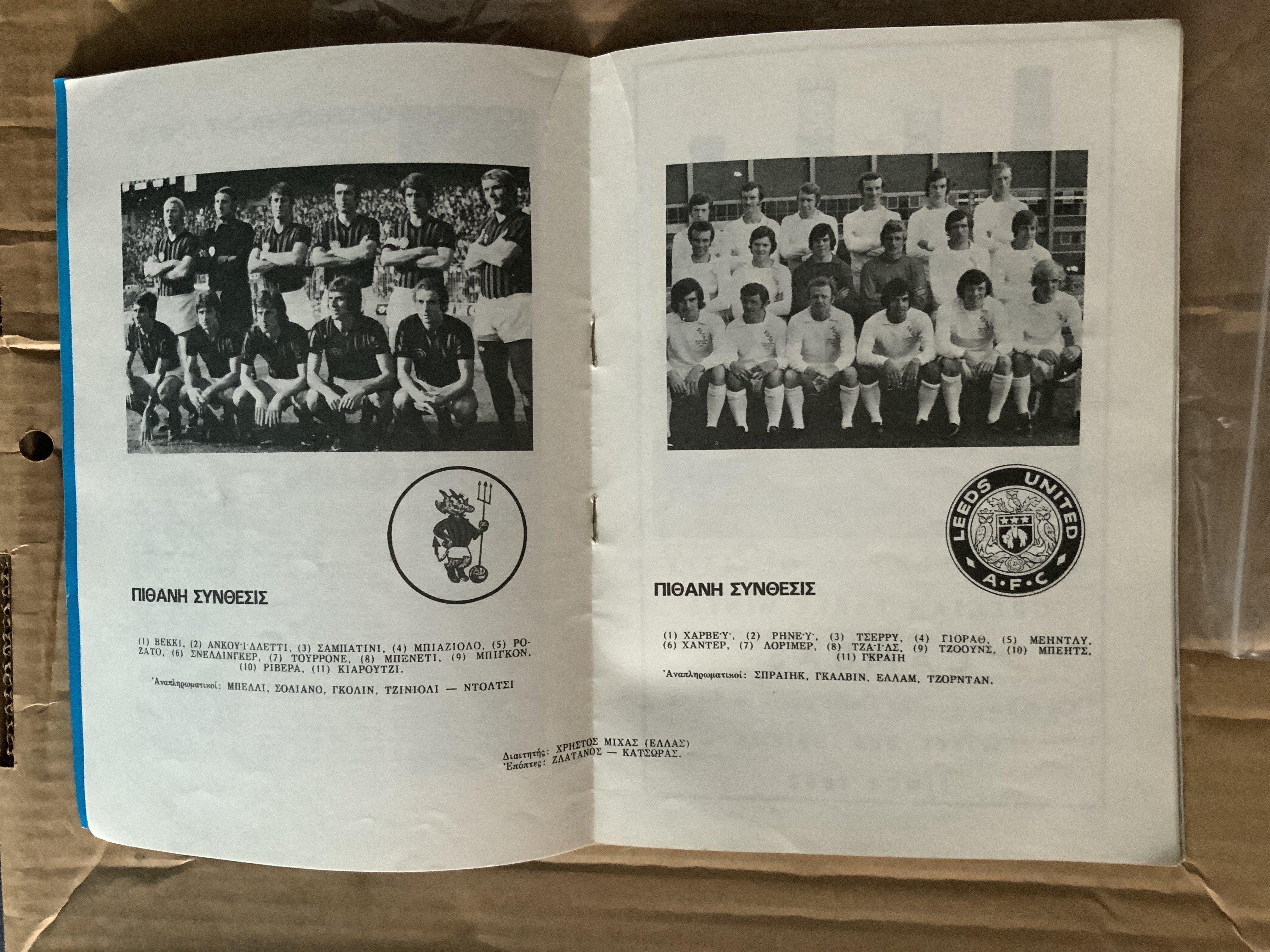 1973 European Cup Winners Cup Final Football Programme: Inter Milan v Leeds United played in Greece. Original programme in good condition with no writing.