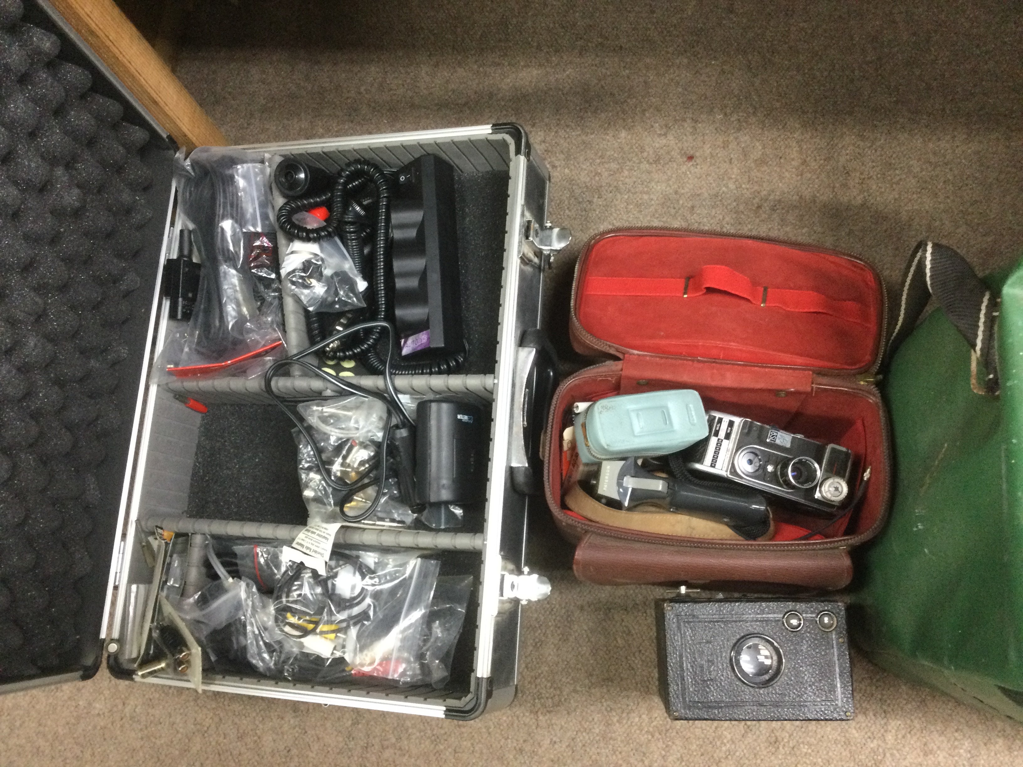 A collection of cameras and accessories including a Russian Zorki 4 35mm example (4). Shipping category D.