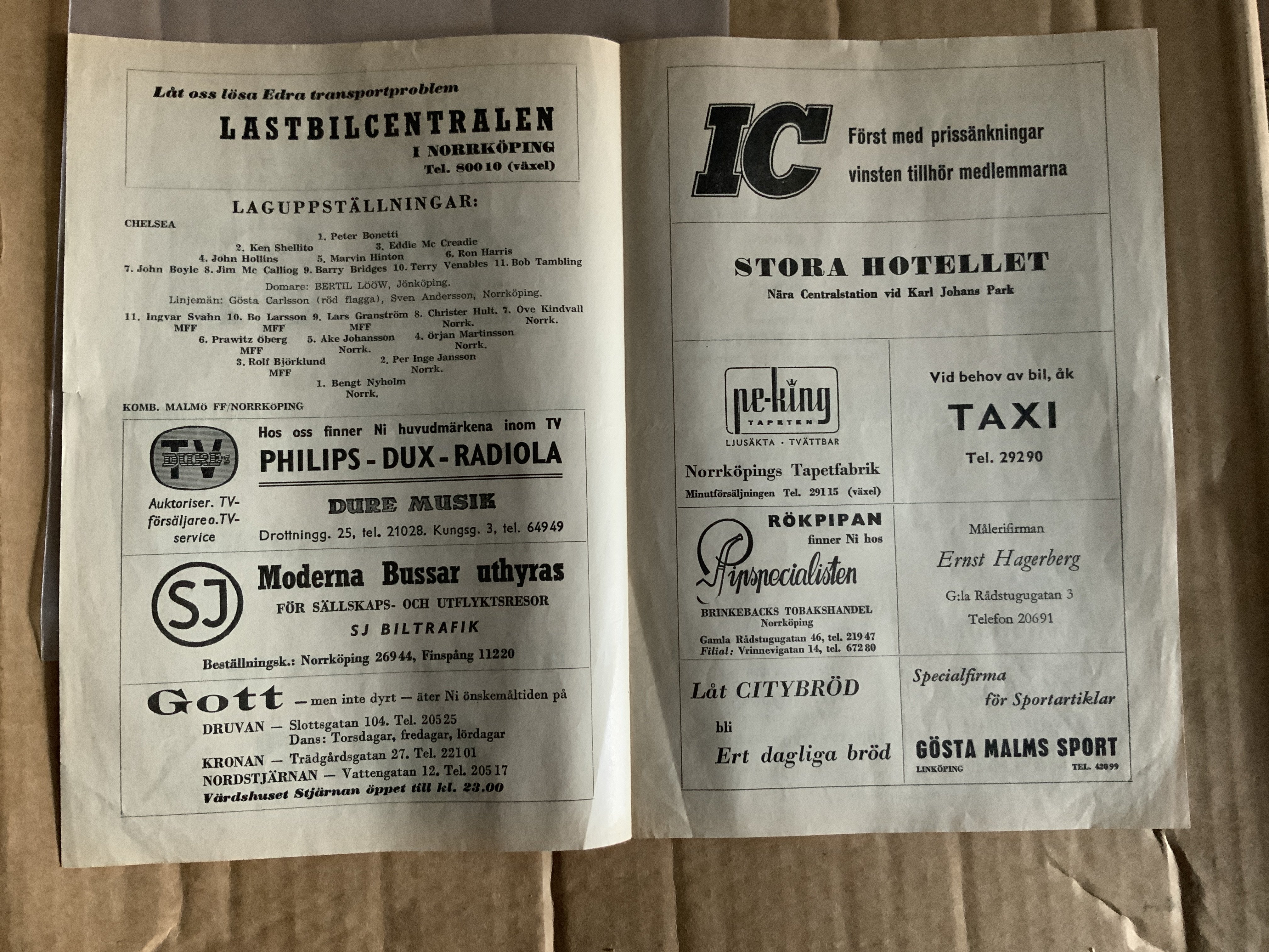 65/66 Norrkoping v Chelsea Football Programme: Excellent condition 4 pager dated 5 8 1965 with no team changes. Instructions to sell.