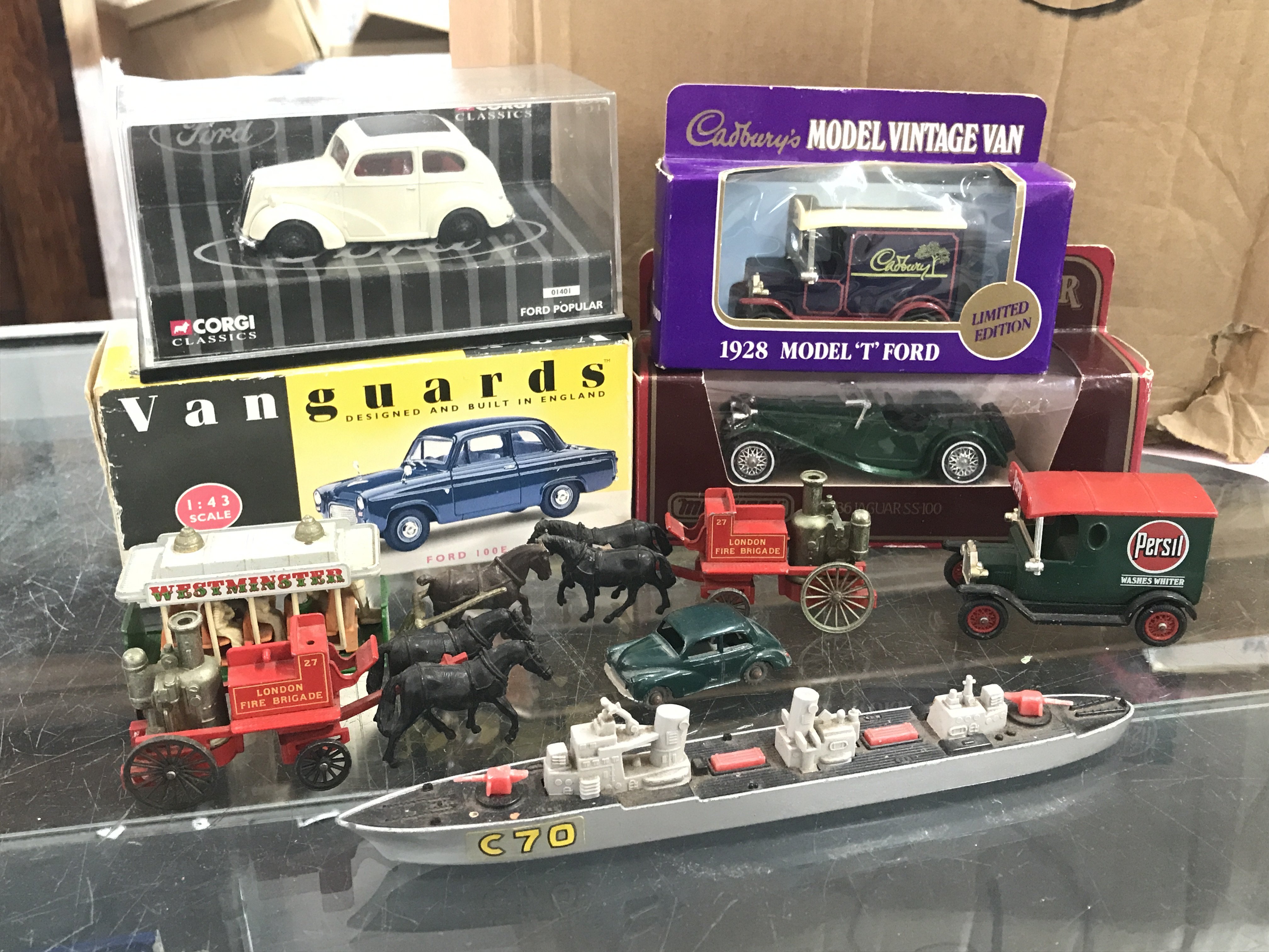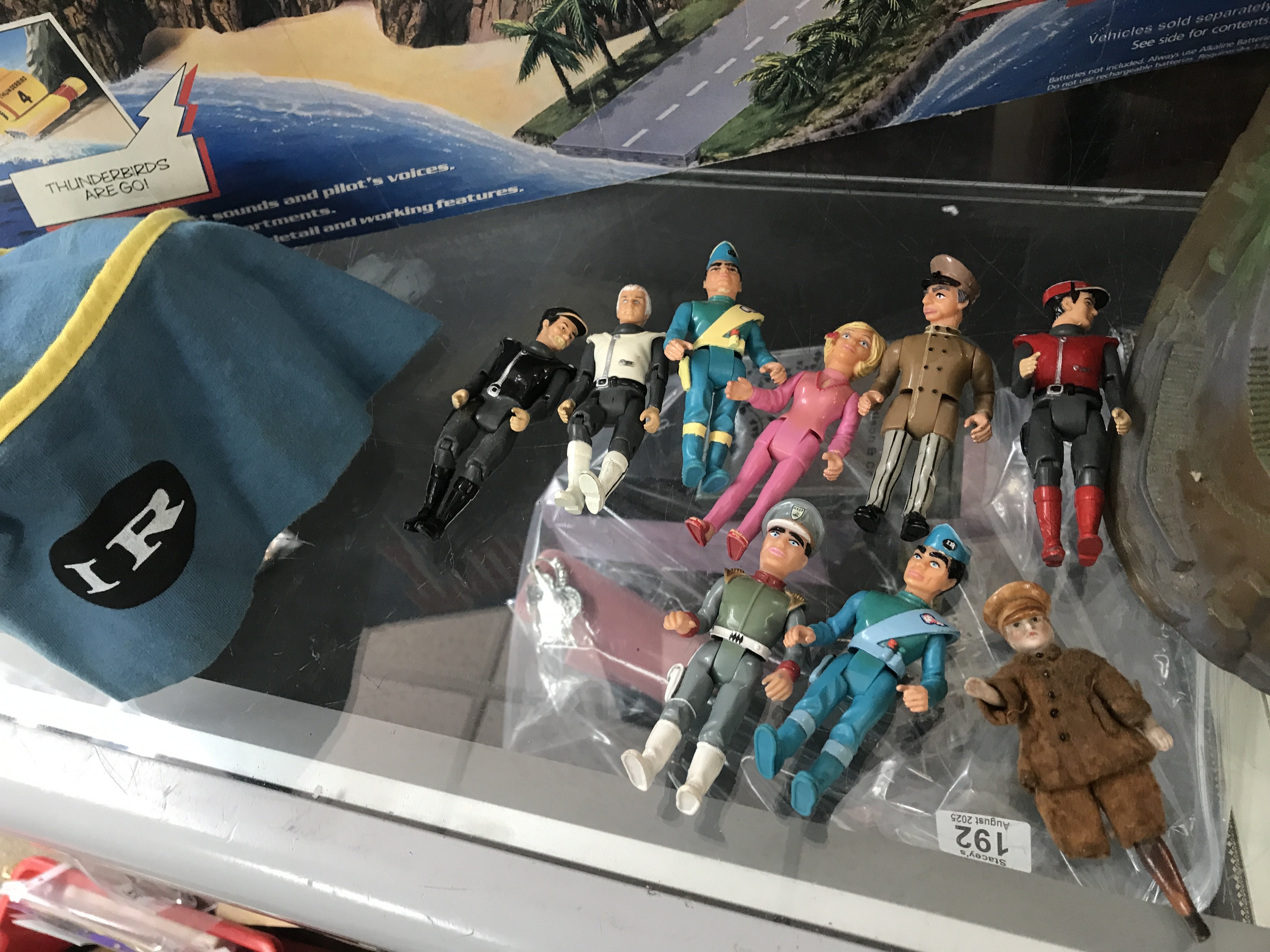 Vintage boxed Thunderbirds Tracey island play set with figures and hat, thunderbird 2 ship, corgi Ford popular, matchbox sea kings k302 corvette etc