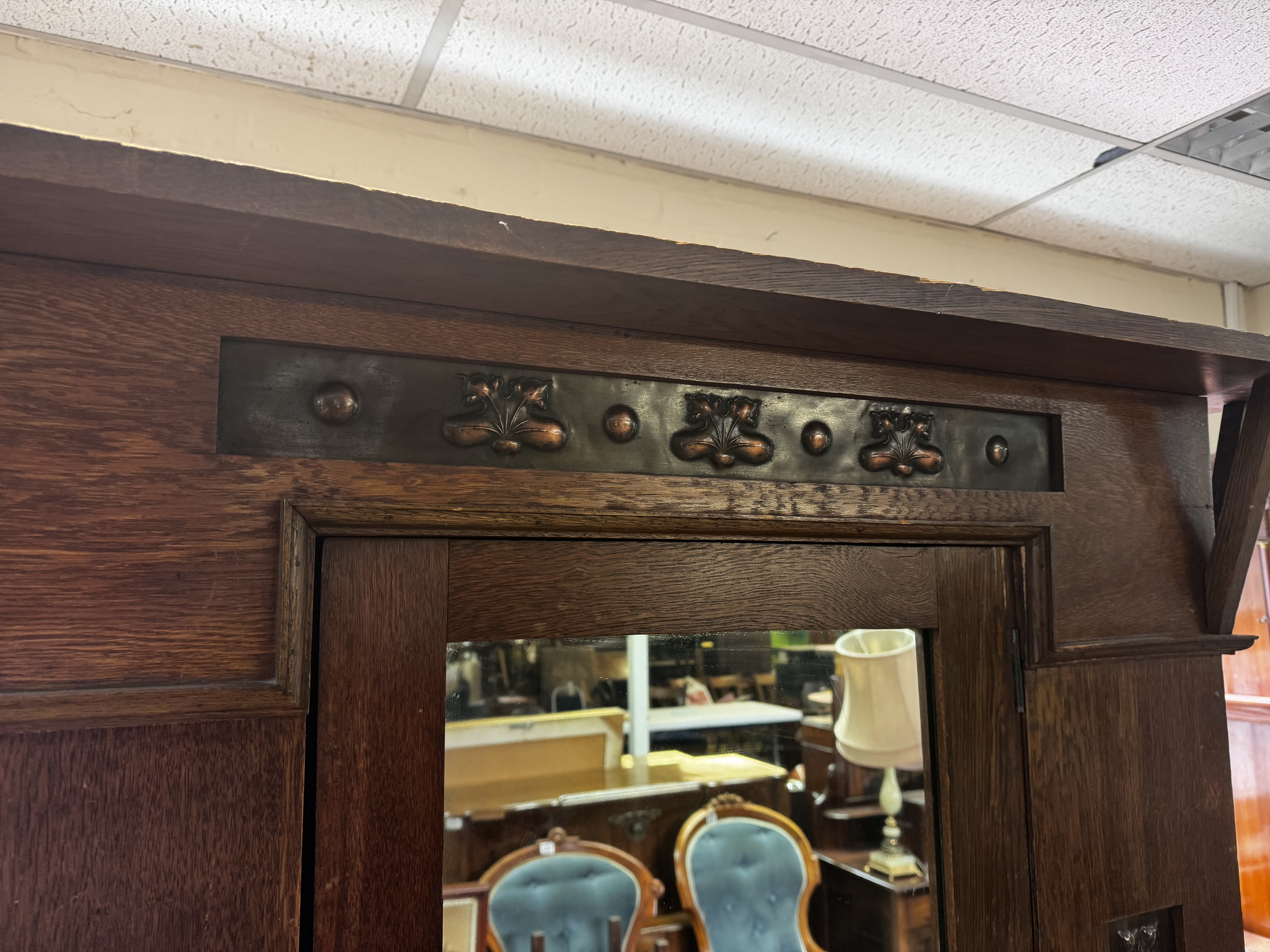 Arts & Crafts Oak Hall Robe and dating from around 1890 Inset with 3 copper panels. 194cm x 120cm x 52cm.
