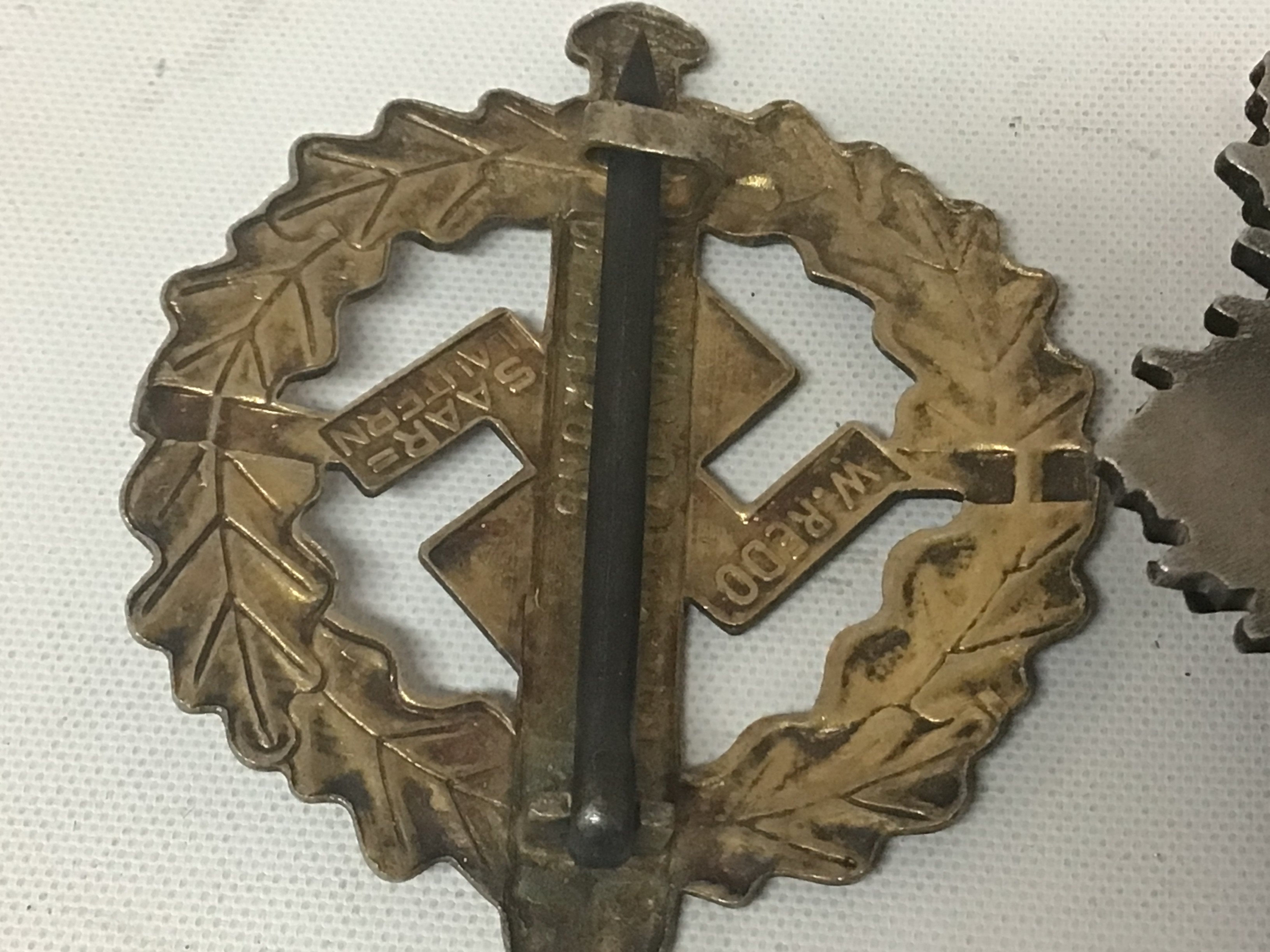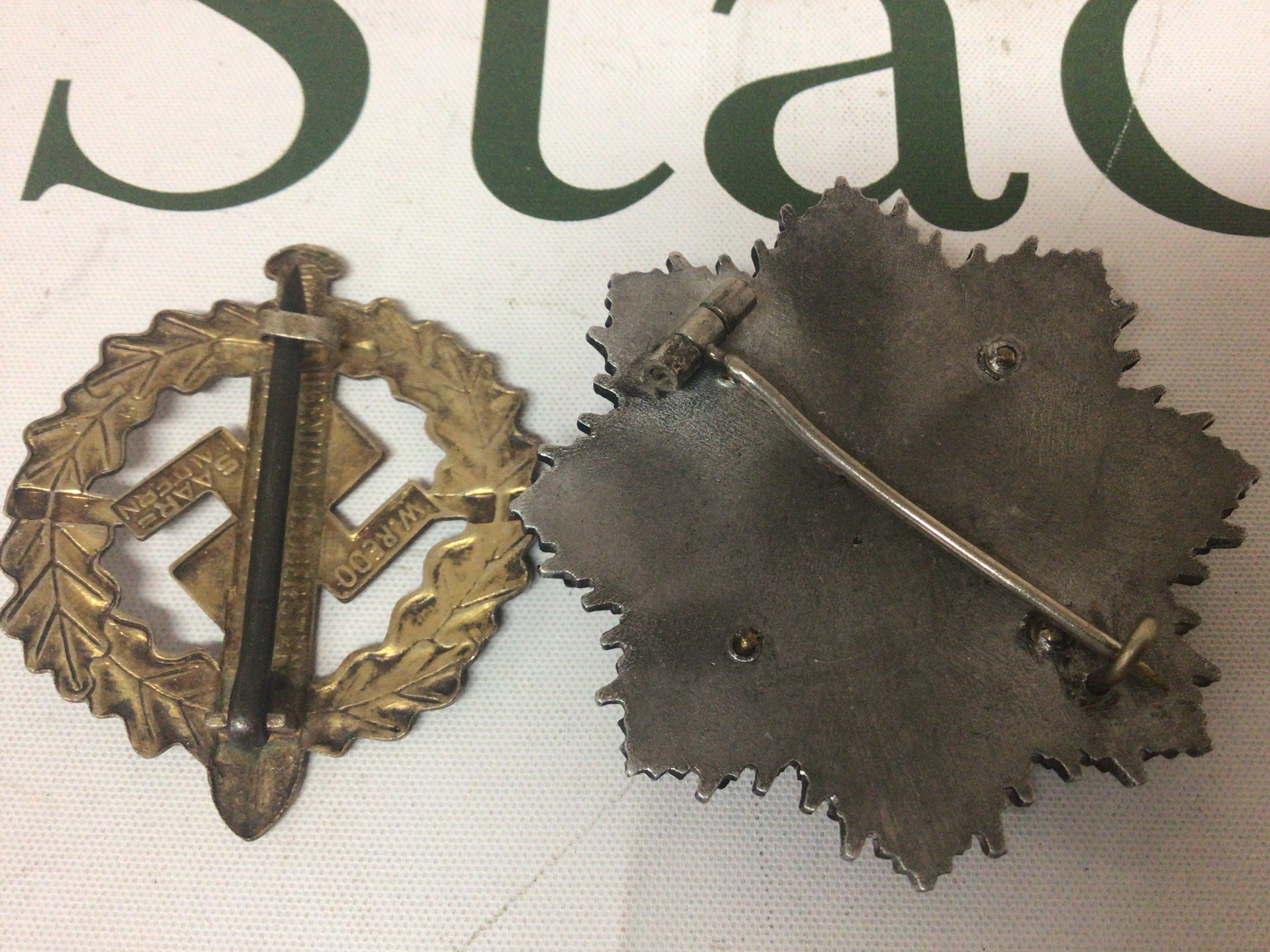 Original German Third Reich Sports badge the reverse with makers marks and a German badge given to high standing members of the German Third Reich political party. The reverse unmarked buyers must satisfy themselves possible retrospective copy. (2)
