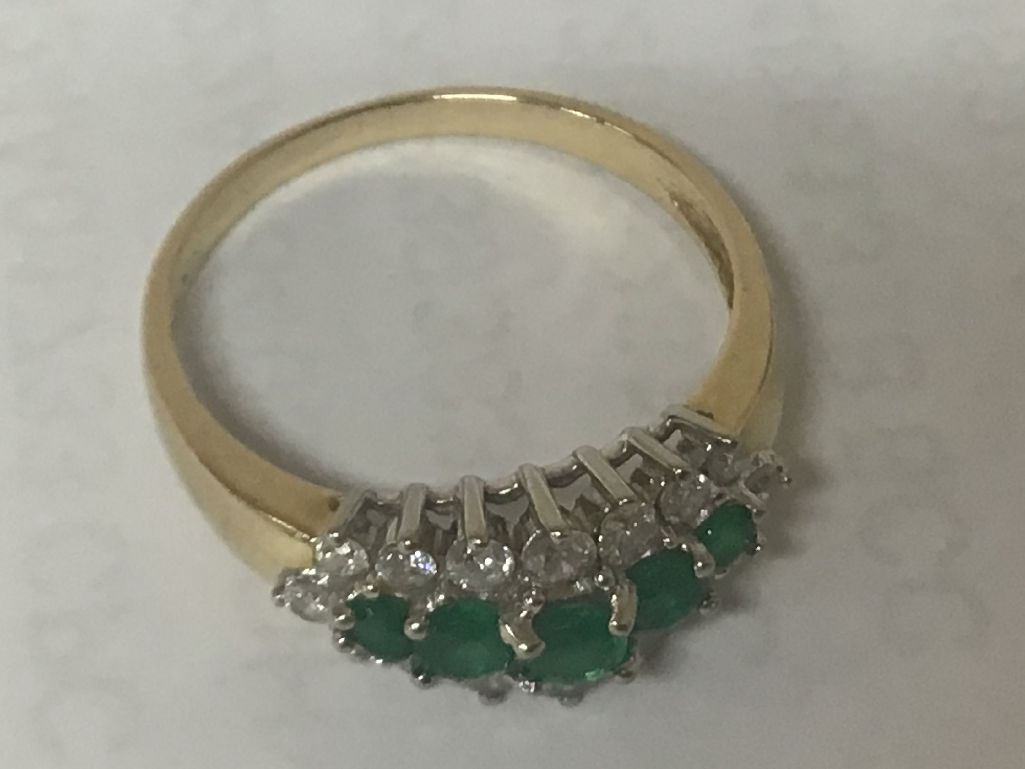 A 14carat gold ring set with emerald and small diamonds and emeralds. 2.5g approximately.