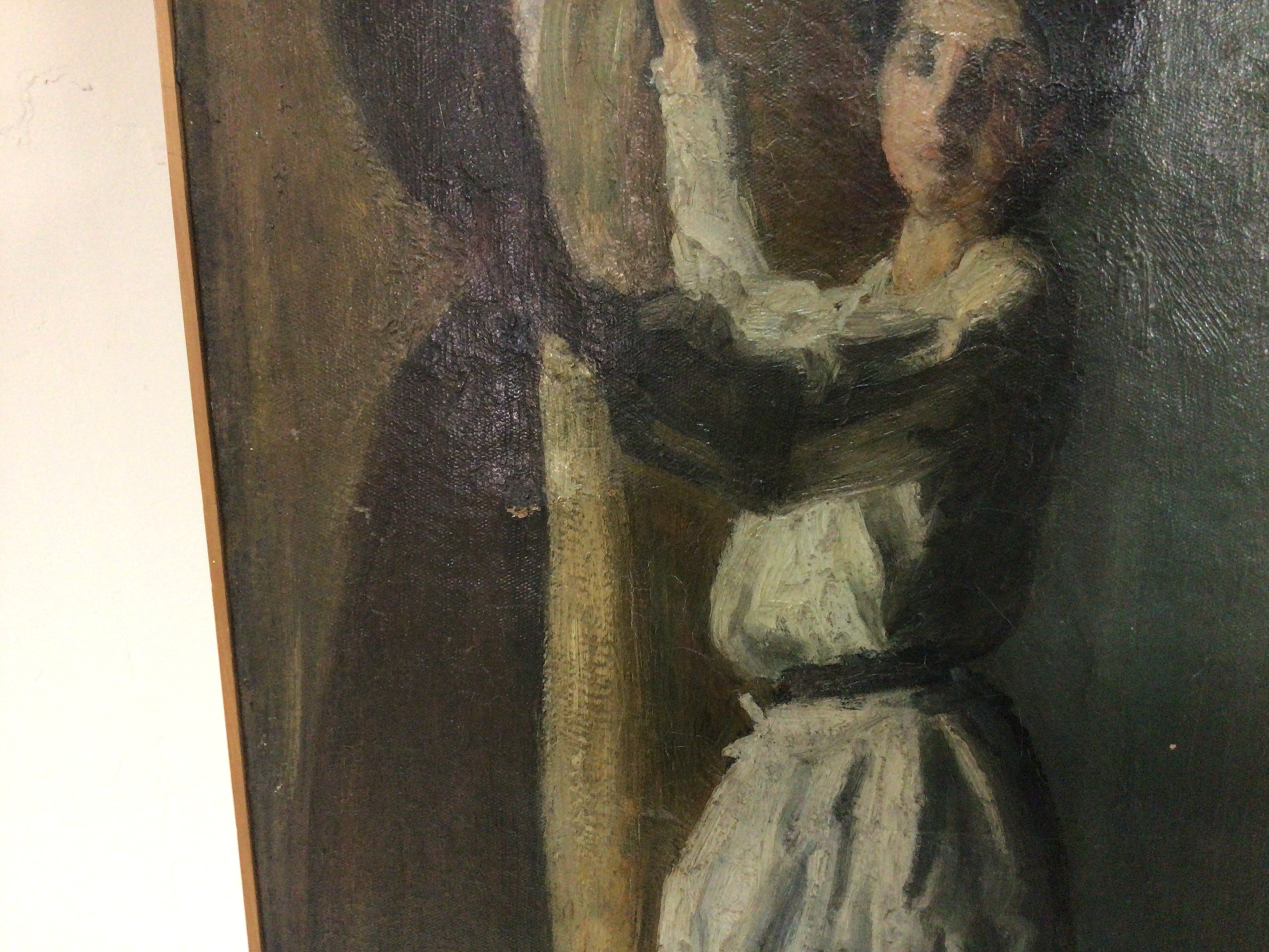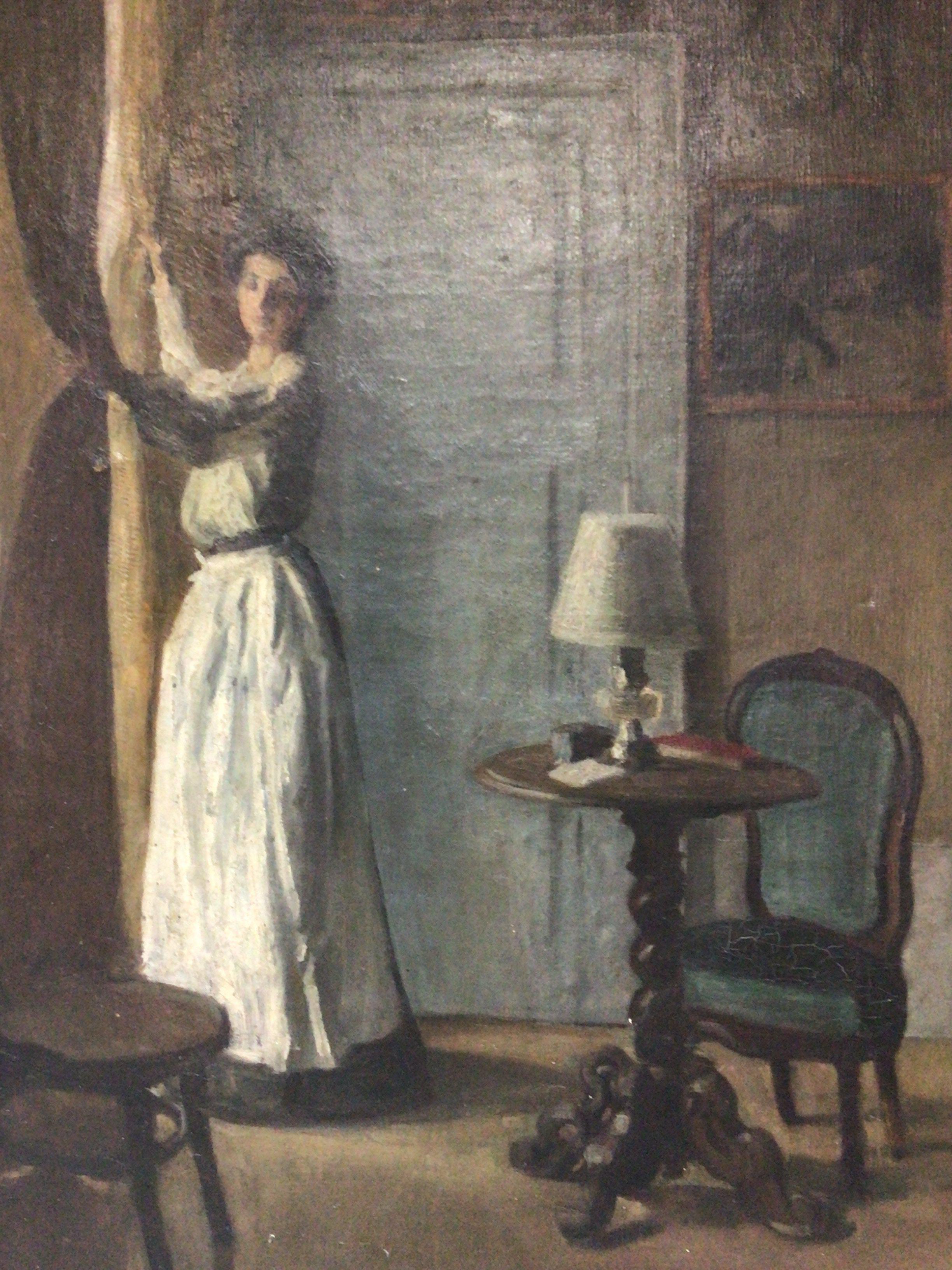 A French Impressionist oil painting a lady in an interior by a window. The interior with traditional French occasional furniture. Signed lower left Ed. Salglio. Edmund Saglio (1867-1907) 95x64cm