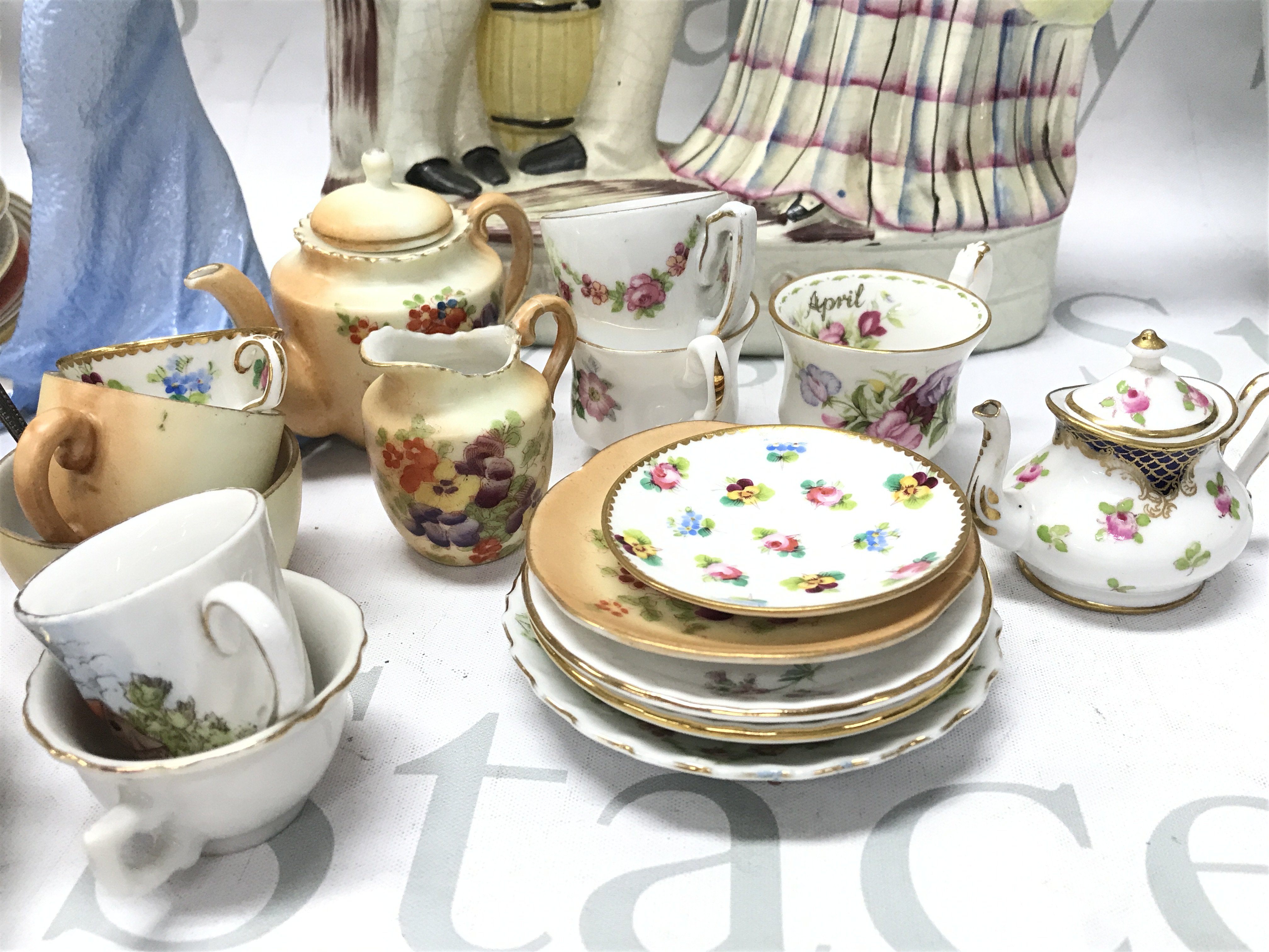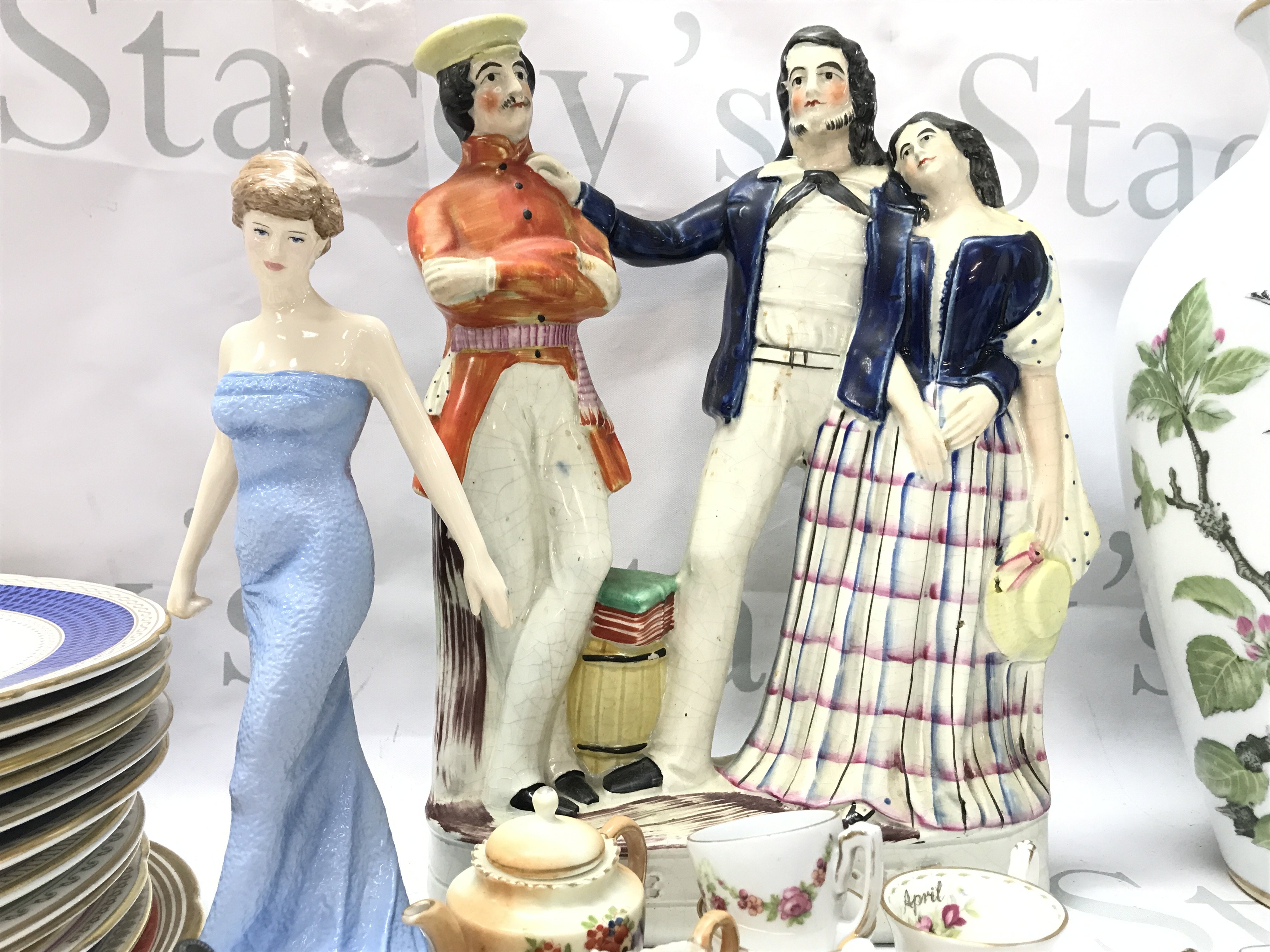 A collection of ceramics including Staffordshire The Rescue figure group, Doulton Diana figure, Royal horticultural society 1983 Chelsea flower show plates, Franklin John Wilkinson vases . This lot cannot be posted