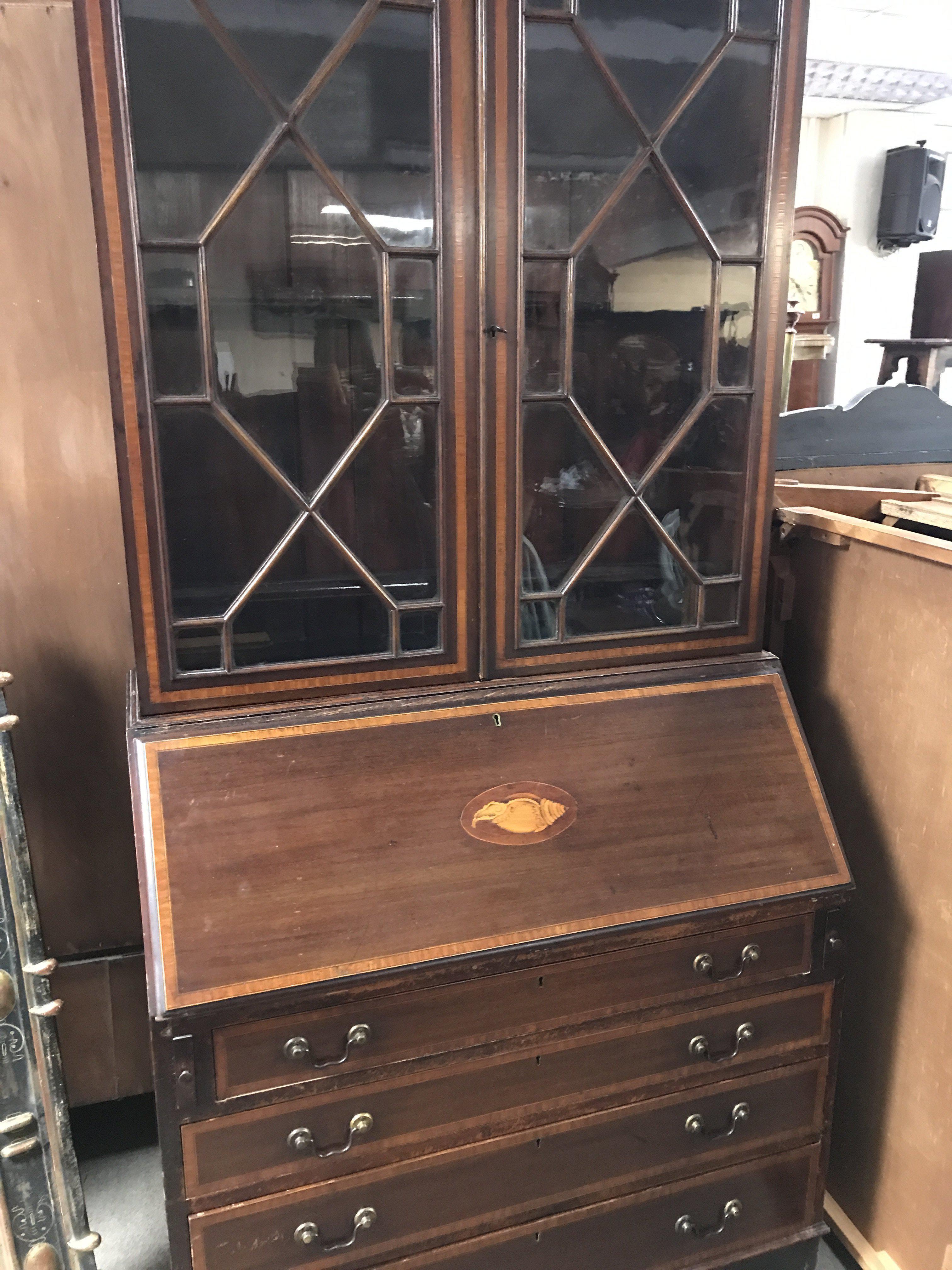 An Edwardian inlaid mahogany bookcase , 204cm tall, 92cm wide