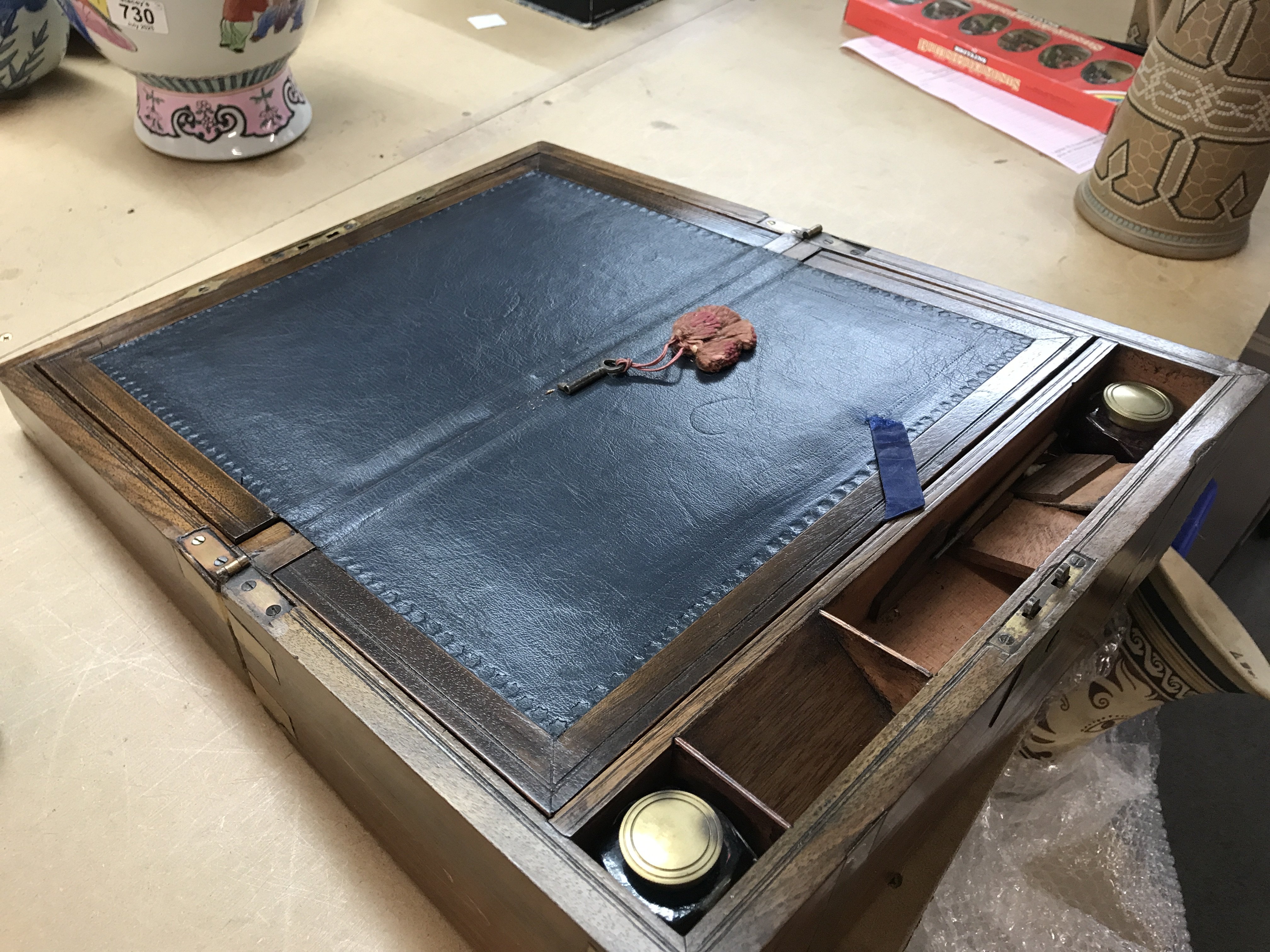 A walnut campaign type writing box, dimensions 25cm long 40cm wide 18cm tall.