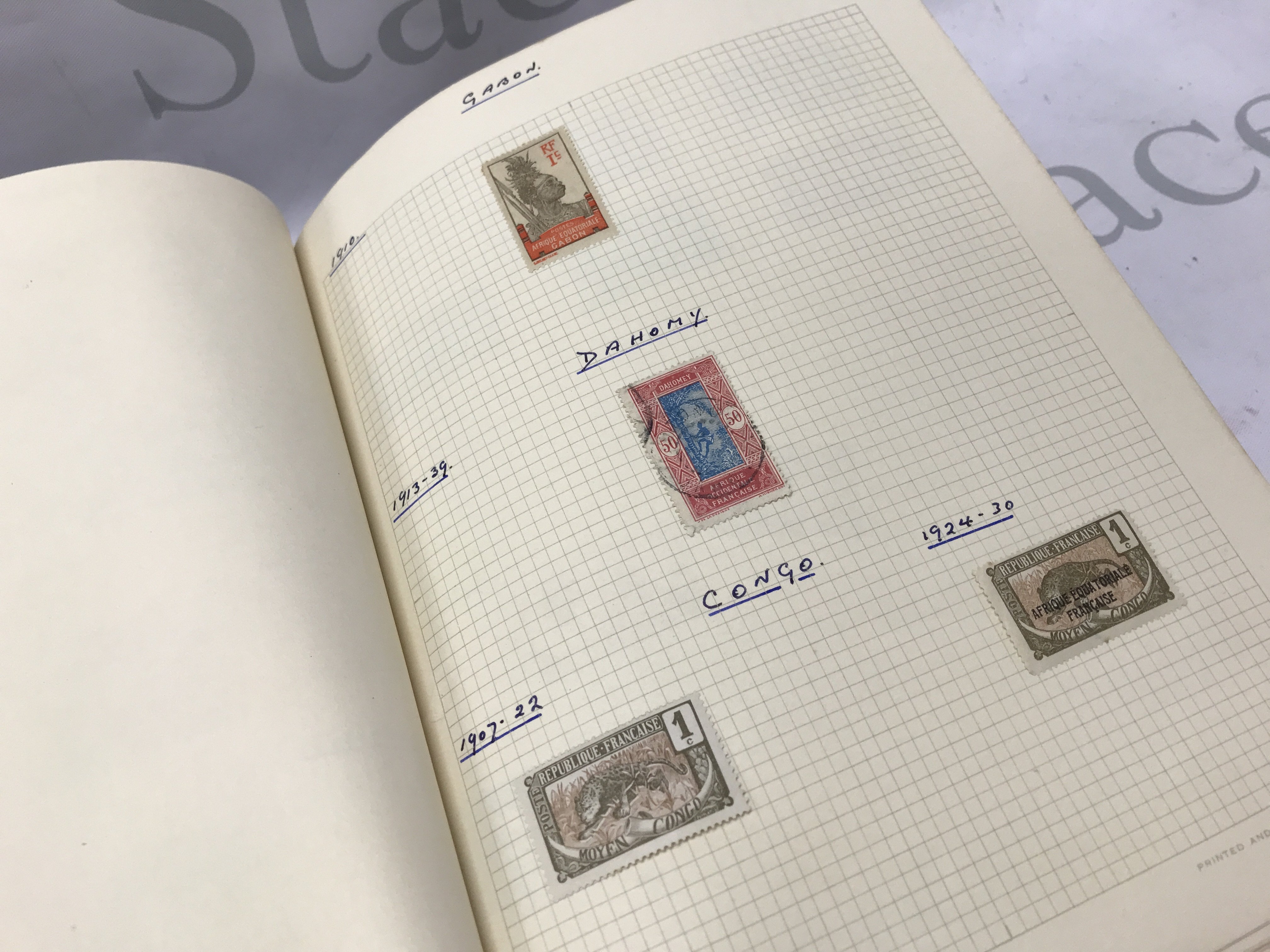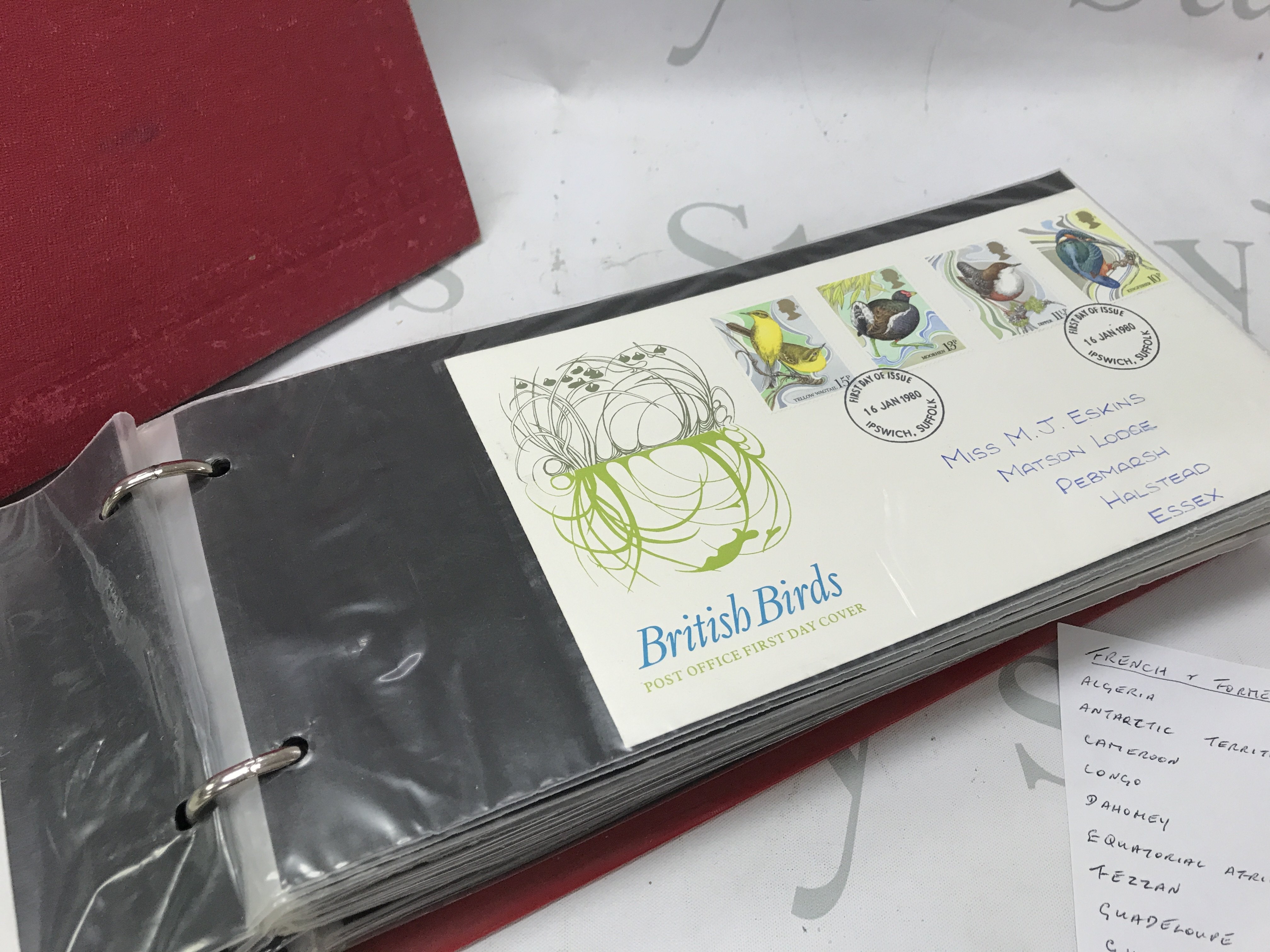Two stamp albums including used and unused stamps from French colonies, first day cover album and loose stamps